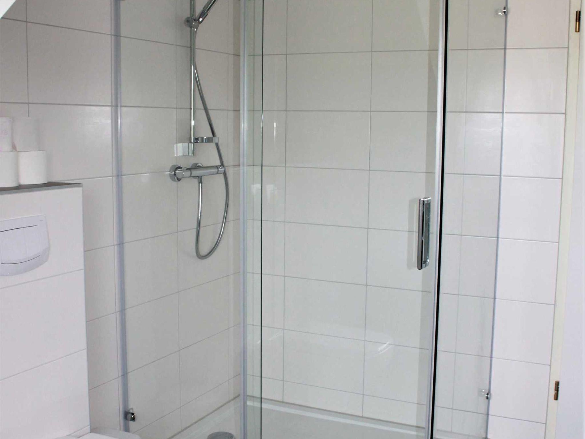 und ein Bad mit Dusche und WC. Beide Schlafzimmer sind sowohl mit