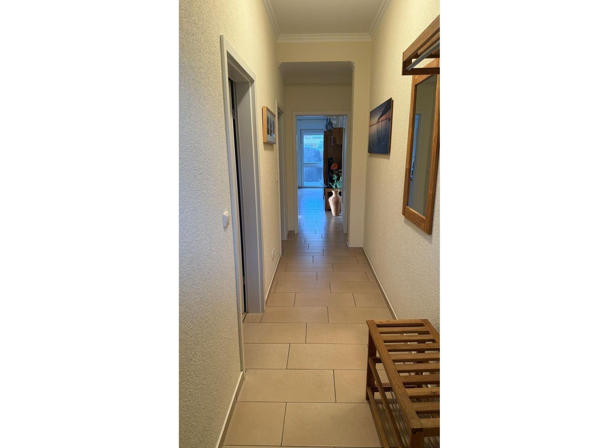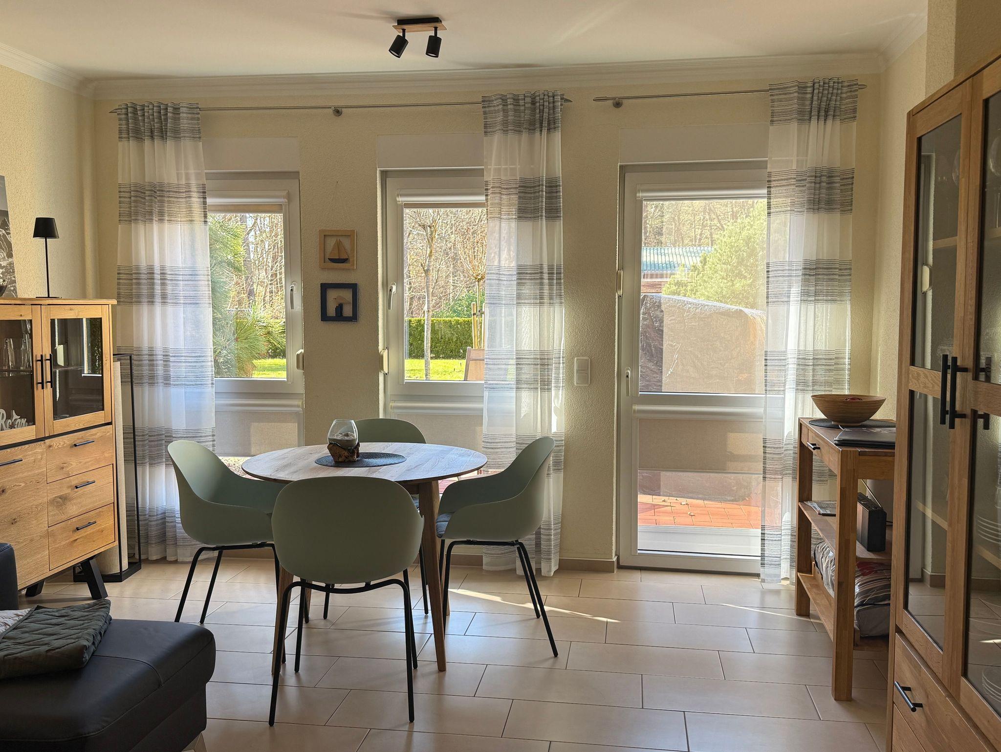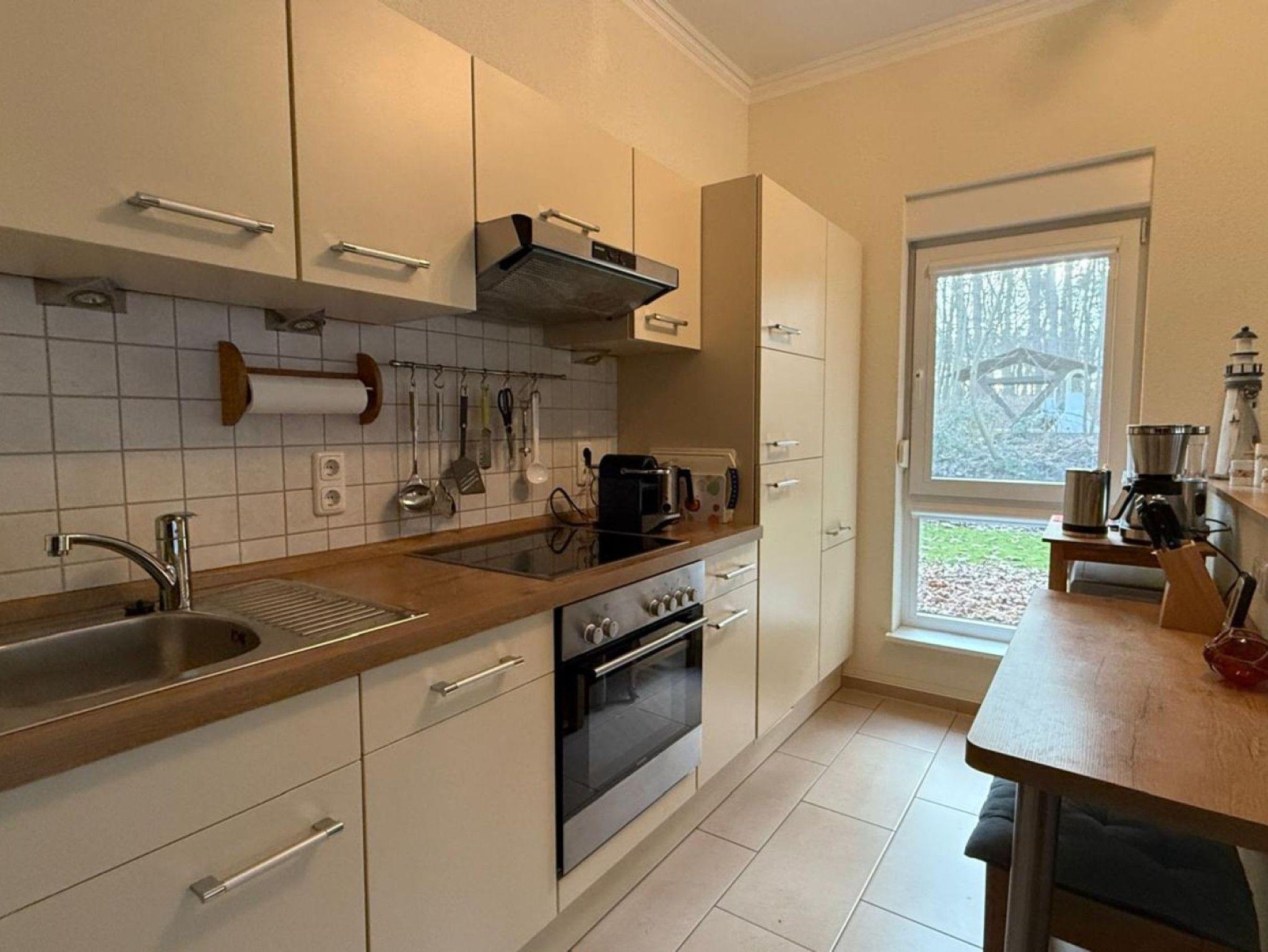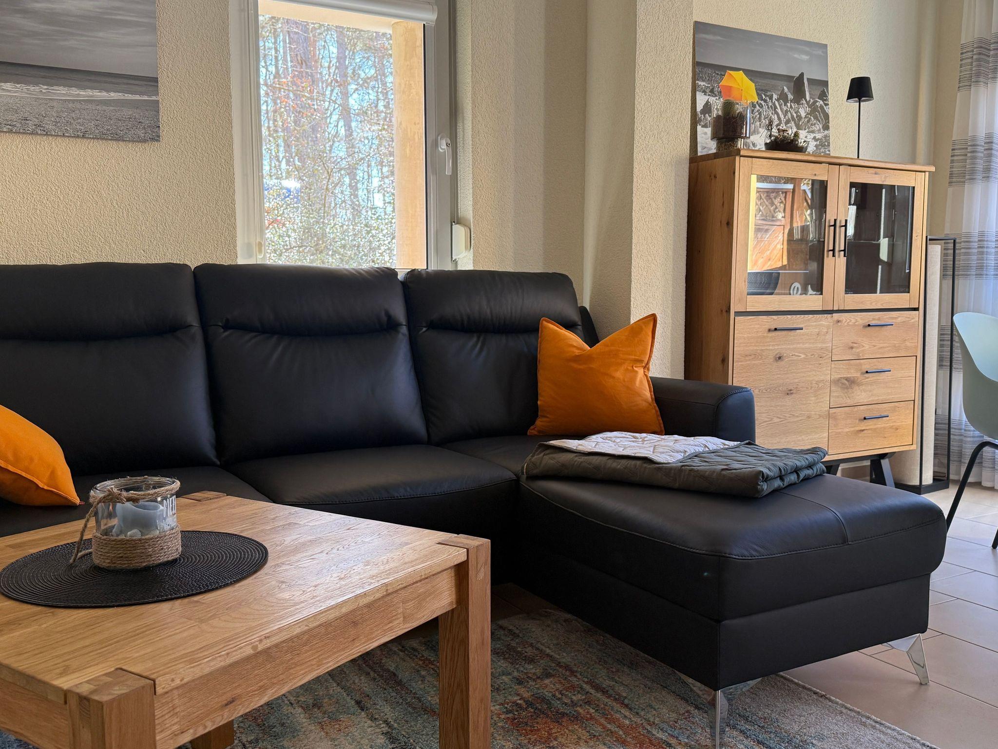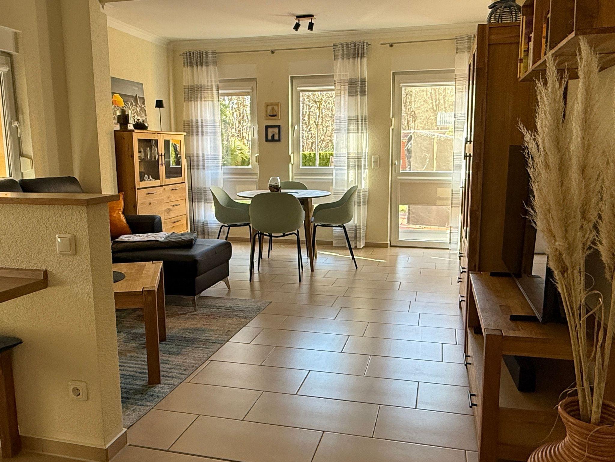 Exklusive 52 m² Erdgeschoßwohnung mit großer möblierter Terrasse, eigenem Gartenanteil von 45 m² und einem PKW-Stellplatz. Die Wohnung ist hochwertig eingerichtet mit Fußbodenheizung, 2 Smart-TVs, Einbauküche mit Ceranherd, Backofen, Kühlschrank, Tiefkühlfach, Nespresso Kaffeeautomat, Wasserkocher & Toaster von WMF, Gläser, Besteck und Geschirr.