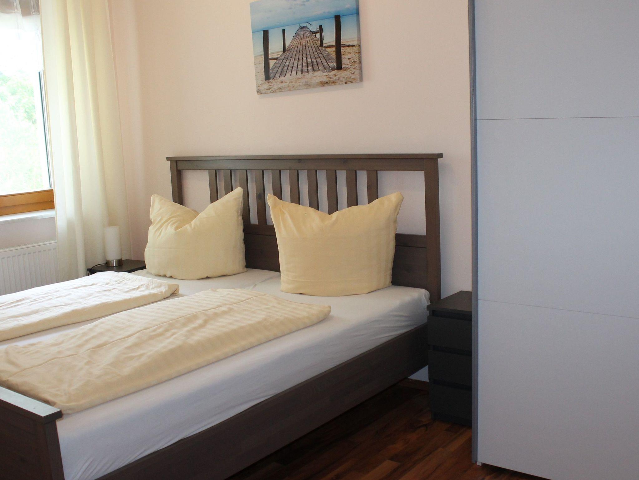 In einem Schlafzimmer steht Ihnen ein Doppelbett (180 x 200 cm) sowie ein Wandklappbett (90 x 200 cm) zur Verfügung. In einem weiteren Schlafzimmer bieten wir Ihnen ein Doppelbett (160 x 200 cm) und ein Doppelstockbett (2 x 90 x 200 cm) an.