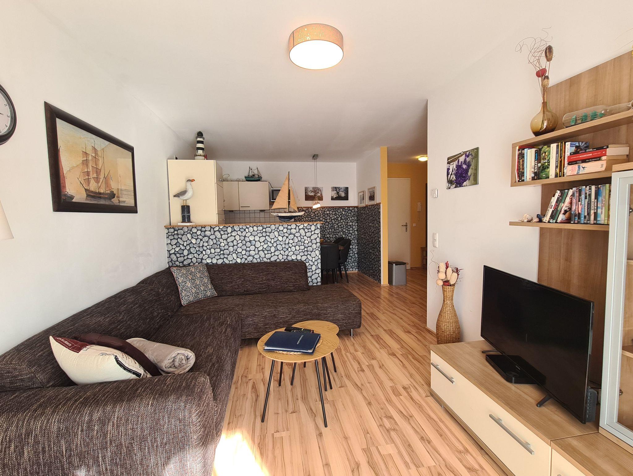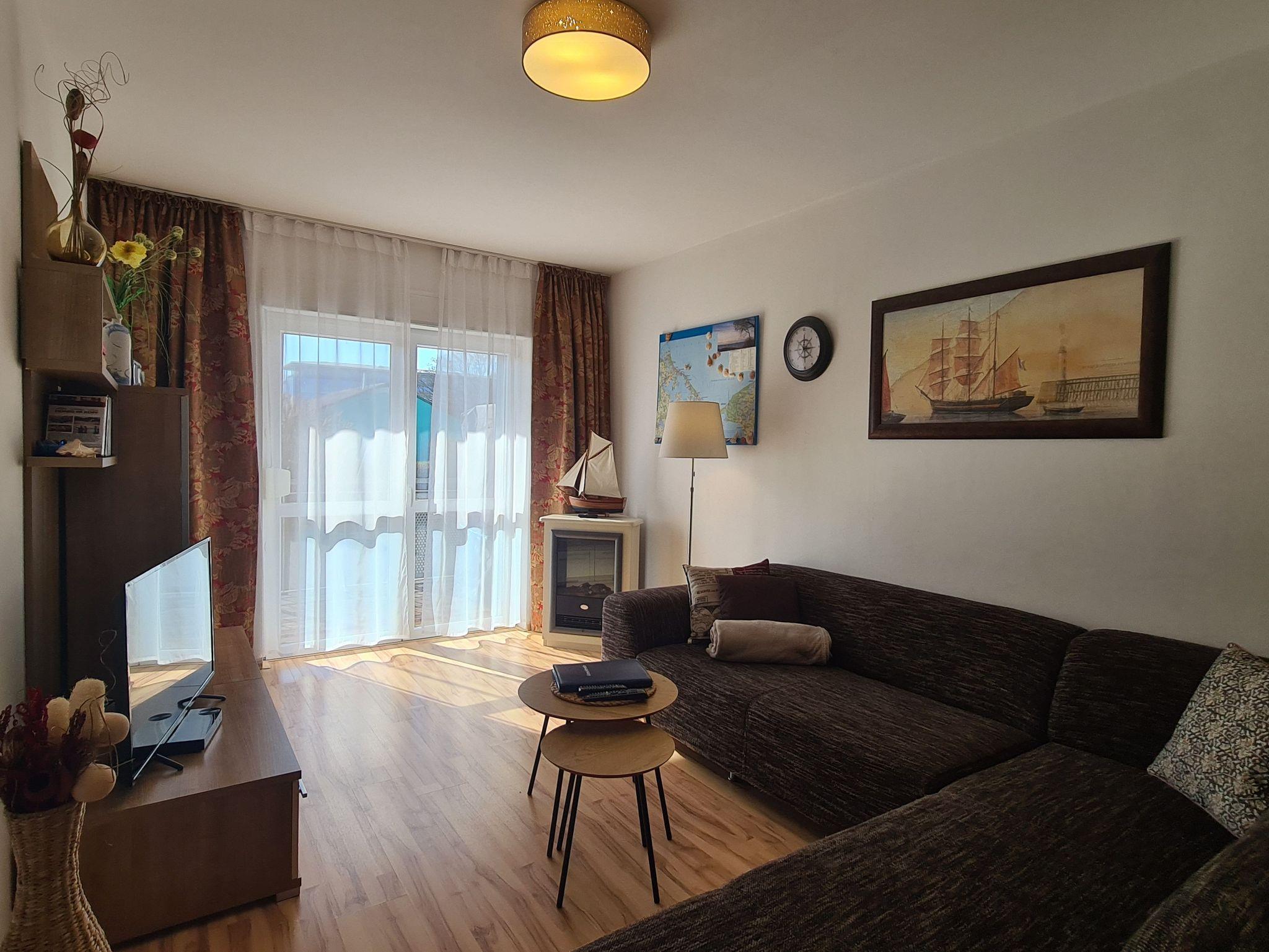 Sehr liebevoll und modern eingerichtete 3-Zimmer Ferienwohnung „Ostseeperle“ mit Elektrokamin und großem Balkon. Die Wohnung ist ausgestattet mit Infrarotsauna, Fußbodenheizung und LCD-TV mit DVB-T.