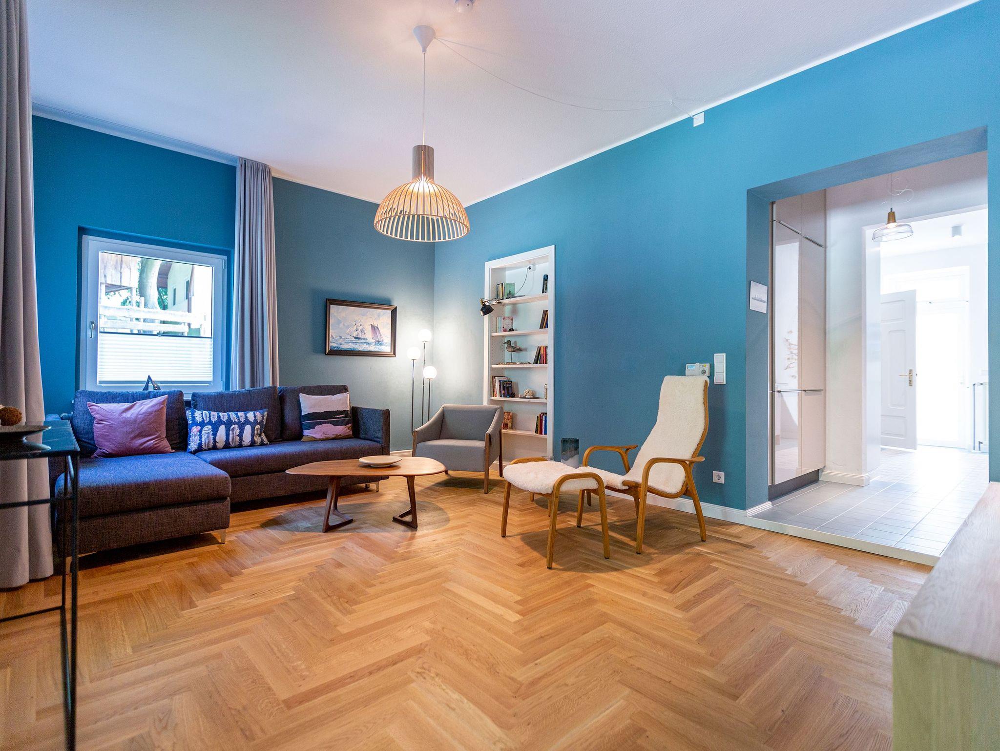 Die Ferienwohnung 2 im Erdgeschoss besticht durch ihre liebevolle Ausstattung und das durchdachte Raumkonzept. Sie umfasst einen offenen Wohnbereich mit einer komfortablen Schlafcouch, die als zusätzliche Schlafmöglichkeit dient, sowie einen Flat-TV. Die angrenzende Küchenzeile ist mit allem ausgestattet, was das Herz begehrt, von der Nesspressomaschine bis zum Backofen. Ein separater Essbereich in der Veranda bietet den perfekten Rahmen für gemeinsame Mahlzeiten oder unterhaltsame Spieleabende. Das Schlafzimmer lädt mit einem luxuriösen Boxspringdoppelbett (1,80m x 2,00m) zum Entspannen ein, während das stilvolle Badezimmer mit einer ebenerdigen Dusche, einem Waschbecken und WC ausgestattet ist. Zur Wohnung gehört zudem eine kleine, nach Norden ausgerichtete Terrasse mit Gartenmöbeln, ideal, um die frische Ostseeluft zu genießen.