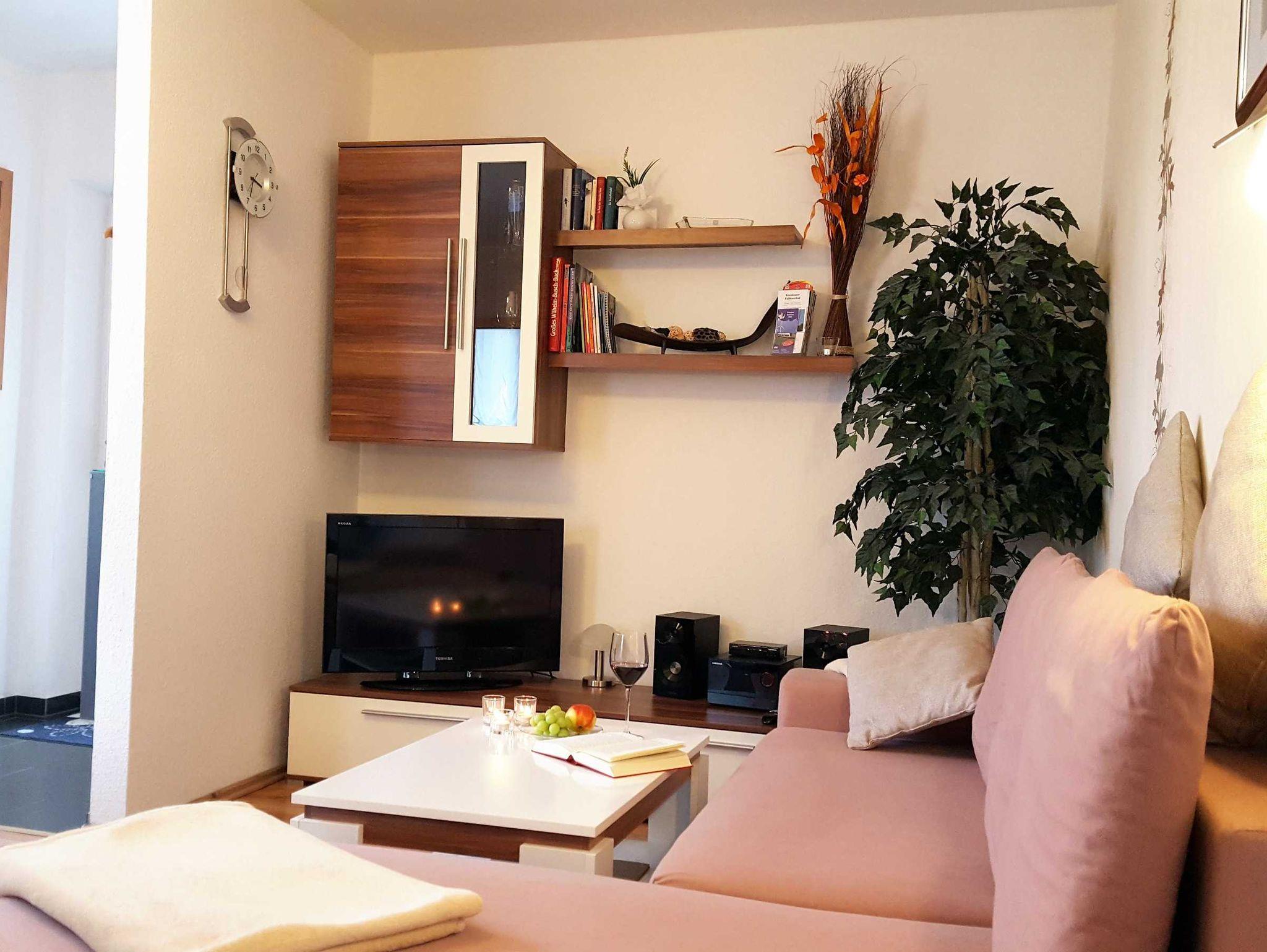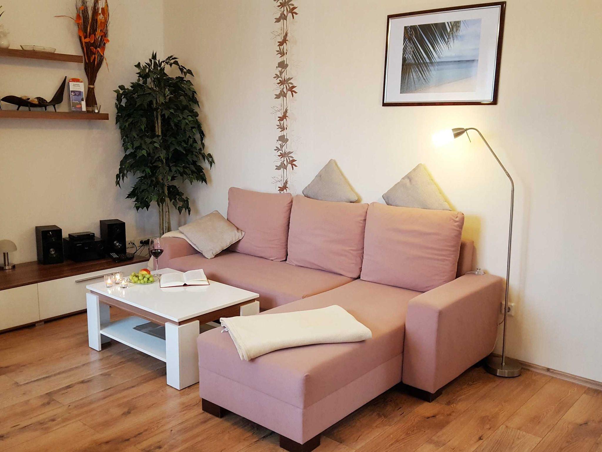 Die Nichtraucher-Wohnung verfügt über einen Balkon mit Sitzmöbeln, ein Schlafzimmer mit Doppelbett (erhöhte Liegefläche), ein Bad mit ebenerdiger Dusche und einen Wohnraum mit einer gemütlichen Ledercouch und LED-TV.