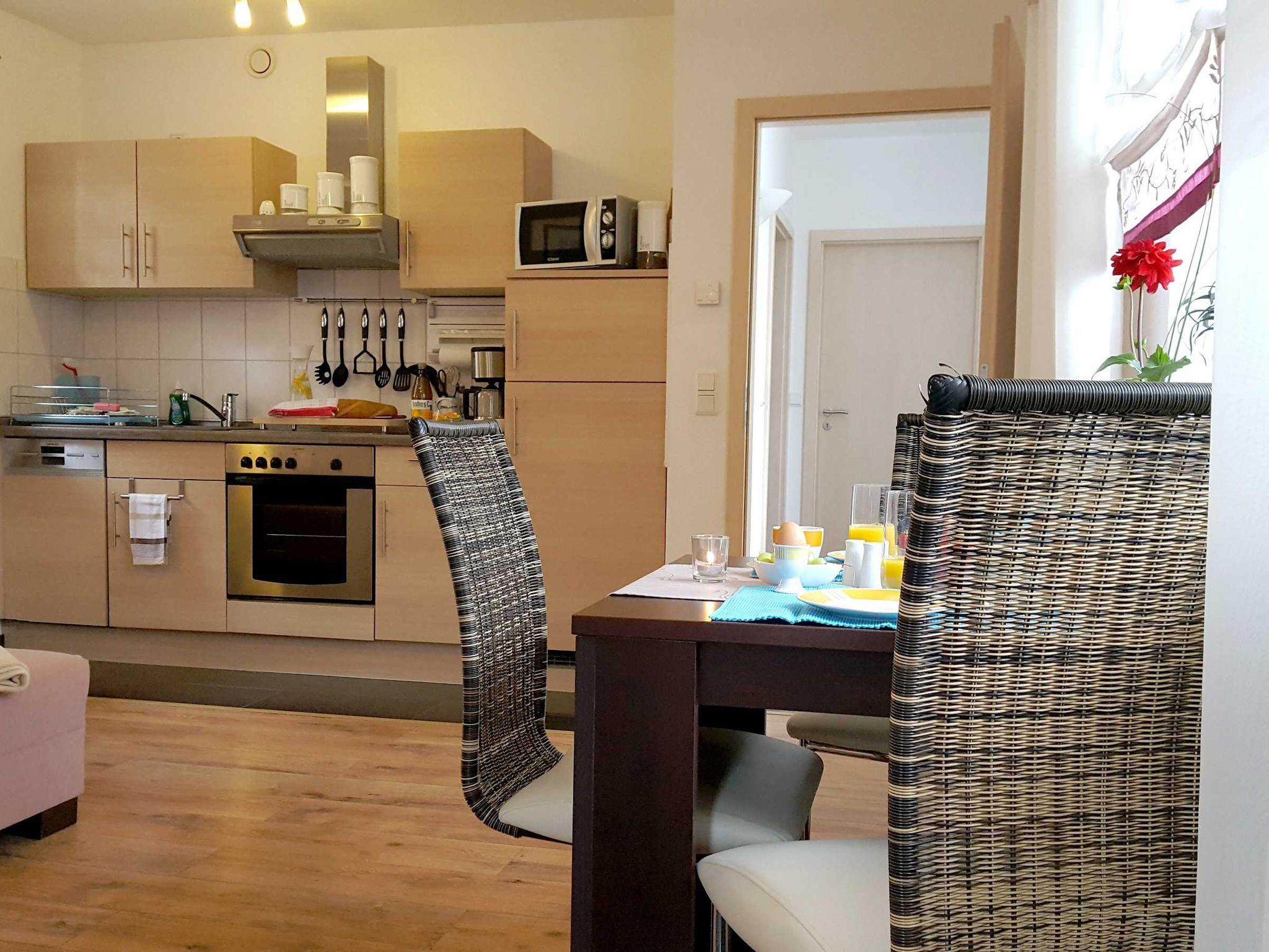 Die Schlafzimmer sind mit Boxspringbetten und reinlich Stauraum für Ihre persönlichen Sachen ausgestattet. Im Wohnzimmer erwartet Sie eine gemütliche Eck-Couch sowie ein Flachbild-TV und ein DVD-Player mit integriertem Radio. Die vollausgestattete Küche und das Bad mit ebenerdiger Dusche lassen keine Wünsche offen. Unsere Ferienwohnungen eigenen sich ideal für Senioren, Paare und kleine Familien mit einem Kind.