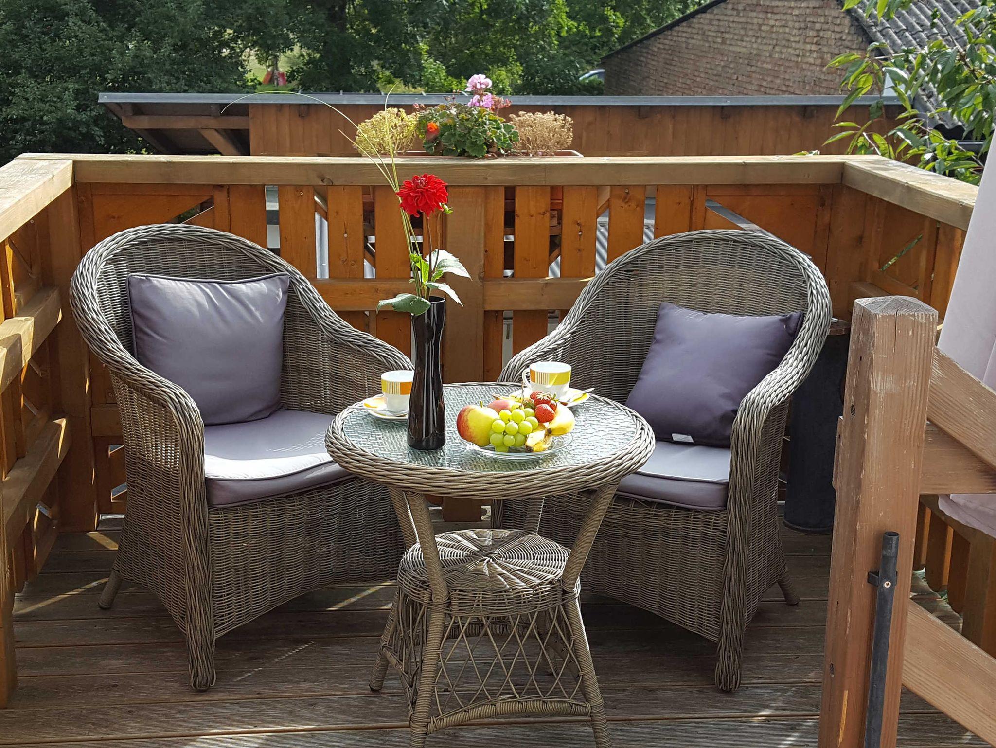 Großzügige Terrassen mit Sitzmöbeln und Grillmöglichkeit bieten unseren Gästen Raum zum Entspannen und Erholen. Das Apartment im Obergeschoss des Ferienhauses verfügt über einen kleinen Balkon mit Sitzmöbeln und Sonnenschirm. Ein PKW-Stellplatz für jede Wohnung ist auf dem Grundstück vorhanden. Haustiere sind nicht gestattet.