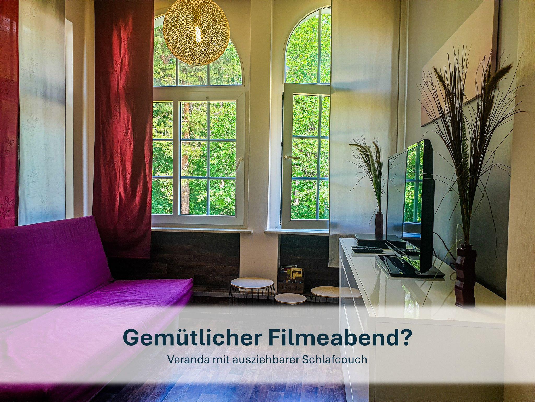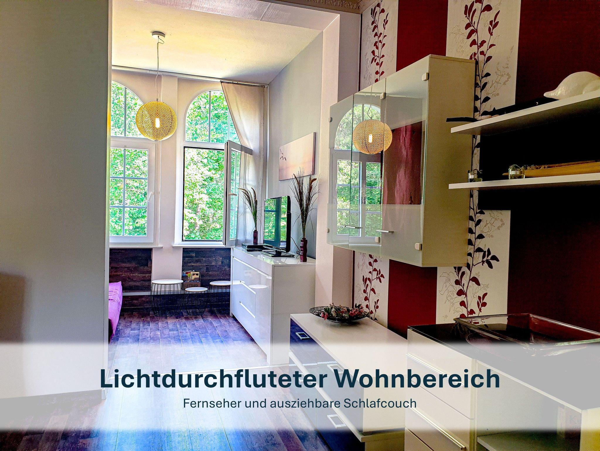 Unsere über 100 Jahre alte Villa versprüht ihren ganz eigenen Charme. Die historischen Dielen können an einigen Stellen sanft knarren - ein liebevolles Detail, das den Charakter des Hauses unterstreicht. Bad, Küche und Wohnzimmer teilen sich einen gemeinschaftlichen Flur mit der benachbarten Ferienwohnung. Im hinteren Bereich des Grundstücks lädt eine gemütliche Terrasse mit Sitzmöbeln und Grill zum Verweilen ein - perfekt für laue Sommernächte.