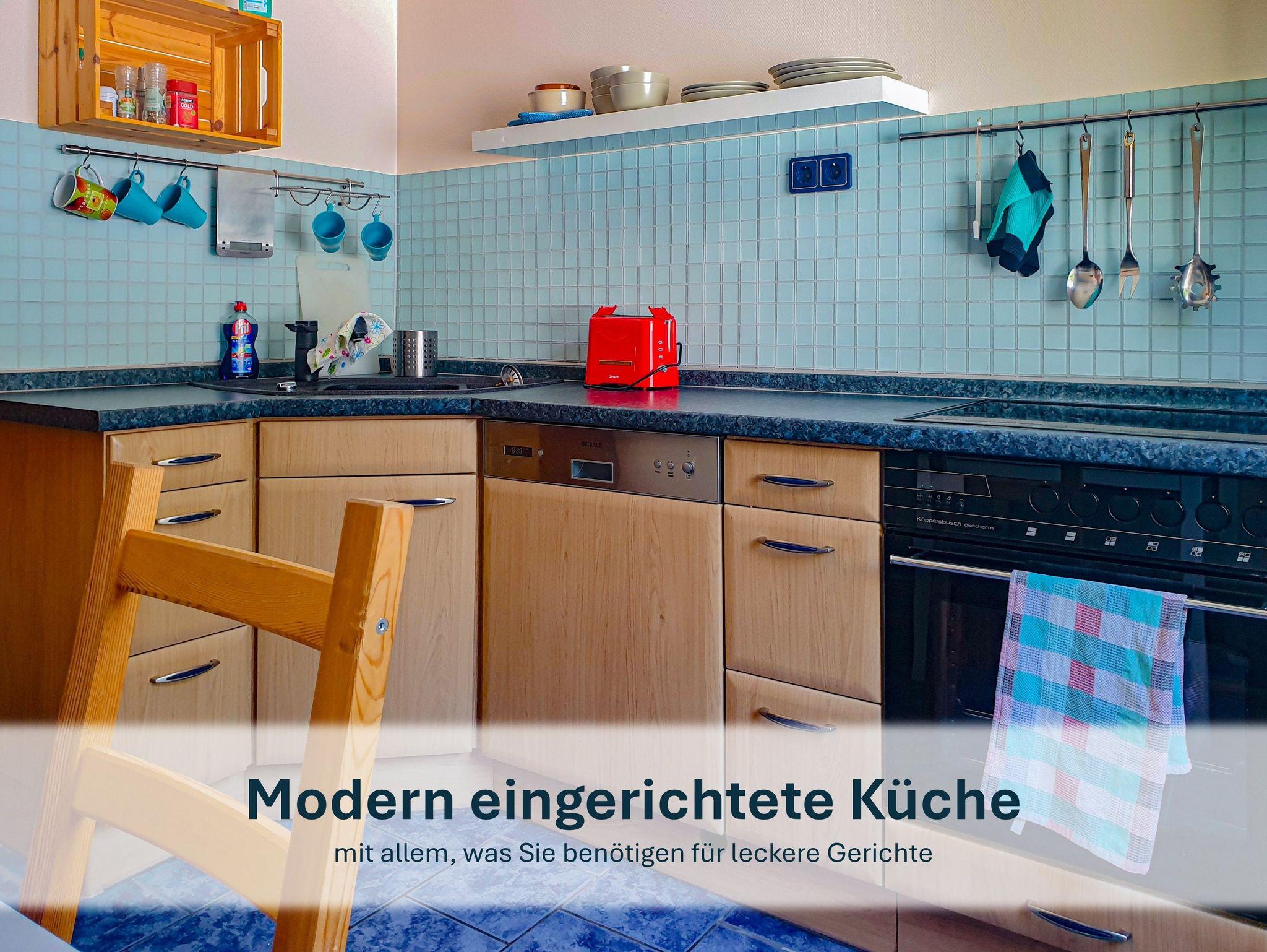 In der Wohnung finden Sie eine gut ausgestattete Küche mit Herd, Kühl-/ Gefrierkombination, Spülmaschine und reichlich Geschirr vor. Auch für Entertainment ist gesorgt: ein Flachbild-TV, ein Radio und ein DVD-Player stehen zur Verfügung.