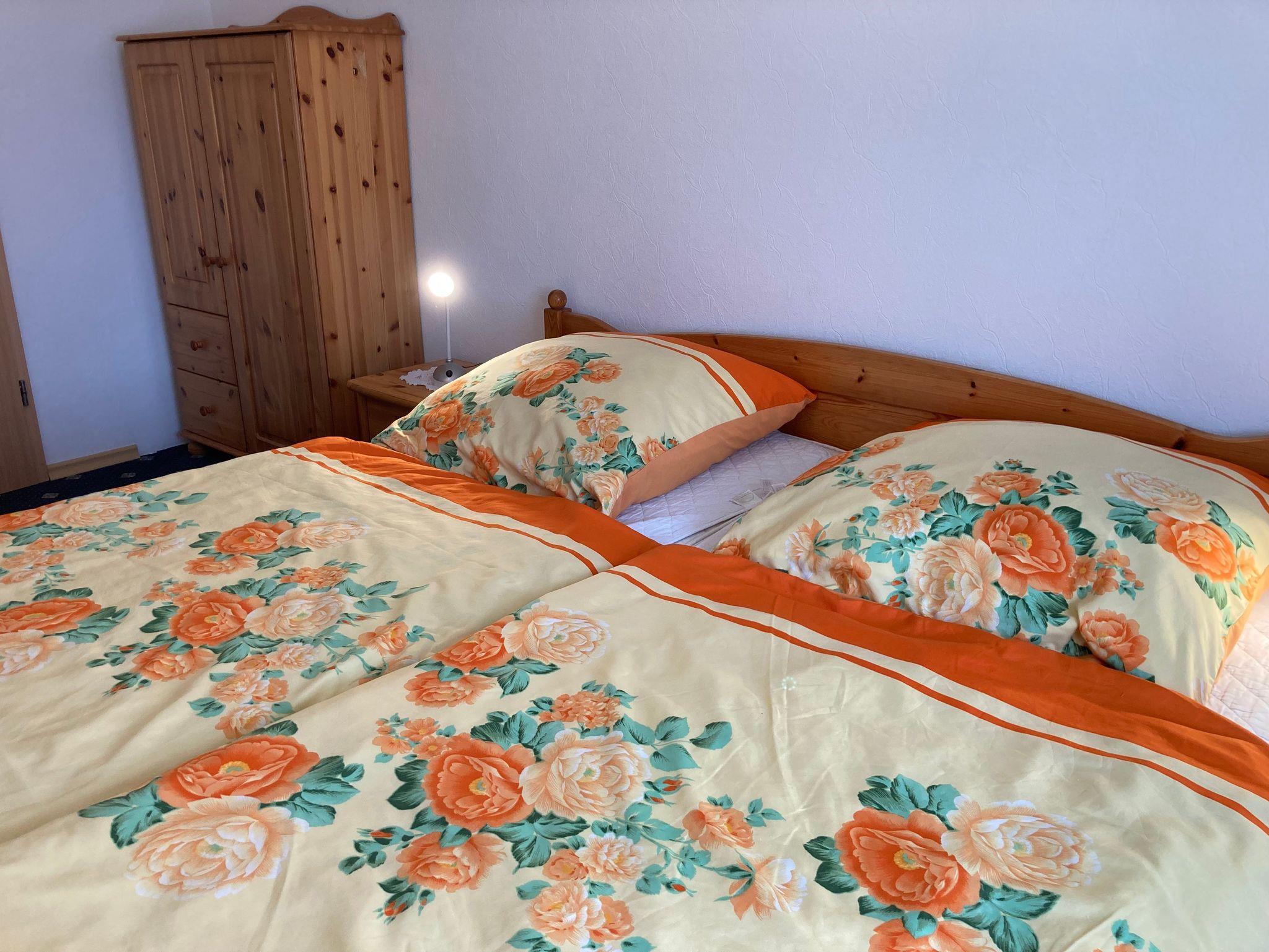 Die 3 Raum Ferienwohnung verfügt über 2 Schlafzimmer mit jeweils einem Doppelbett. Ein grosses Bad mit Dusche, WC und Handtuchtrockner runden die ansprechende Einrichtung der Ferienwohnung ab.