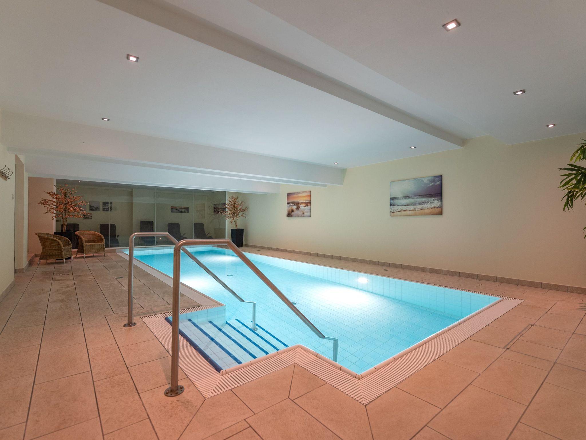 Im Haus Südwind genießen Sie ganzjährig ein vielseitiges Freizeit- und Erholungsangebot direkt vor der Tür. Der Wellnessbereich bietet Ihnen eine Trockensauna, ein Dampfbad sowie einen gemütlichen Ruheraum mit Liegen ? ideal zum Abschalten nach einem erlebnisreichen Tag. Das 4?×?10?m große Hallenschwimmbad mit Gegenstromanlagesteht Ihnen täglich von 9 bis 21 Uhr zur Verfügung. Wer es sportlich mag, kann sich im kleinen Fitnessraum auspowern ? ausgestattet mit einem Ergometer und Geräten für verschiedene Muskelgruppen.