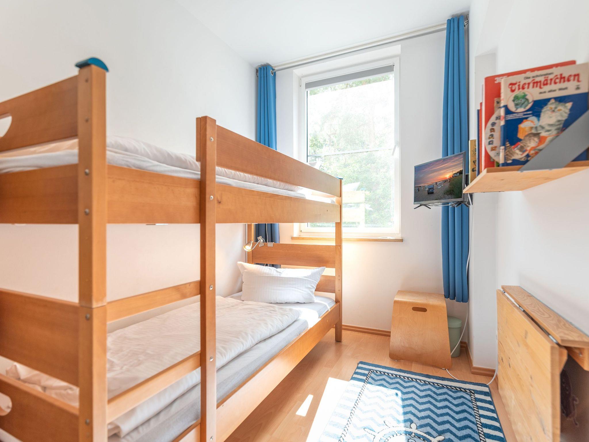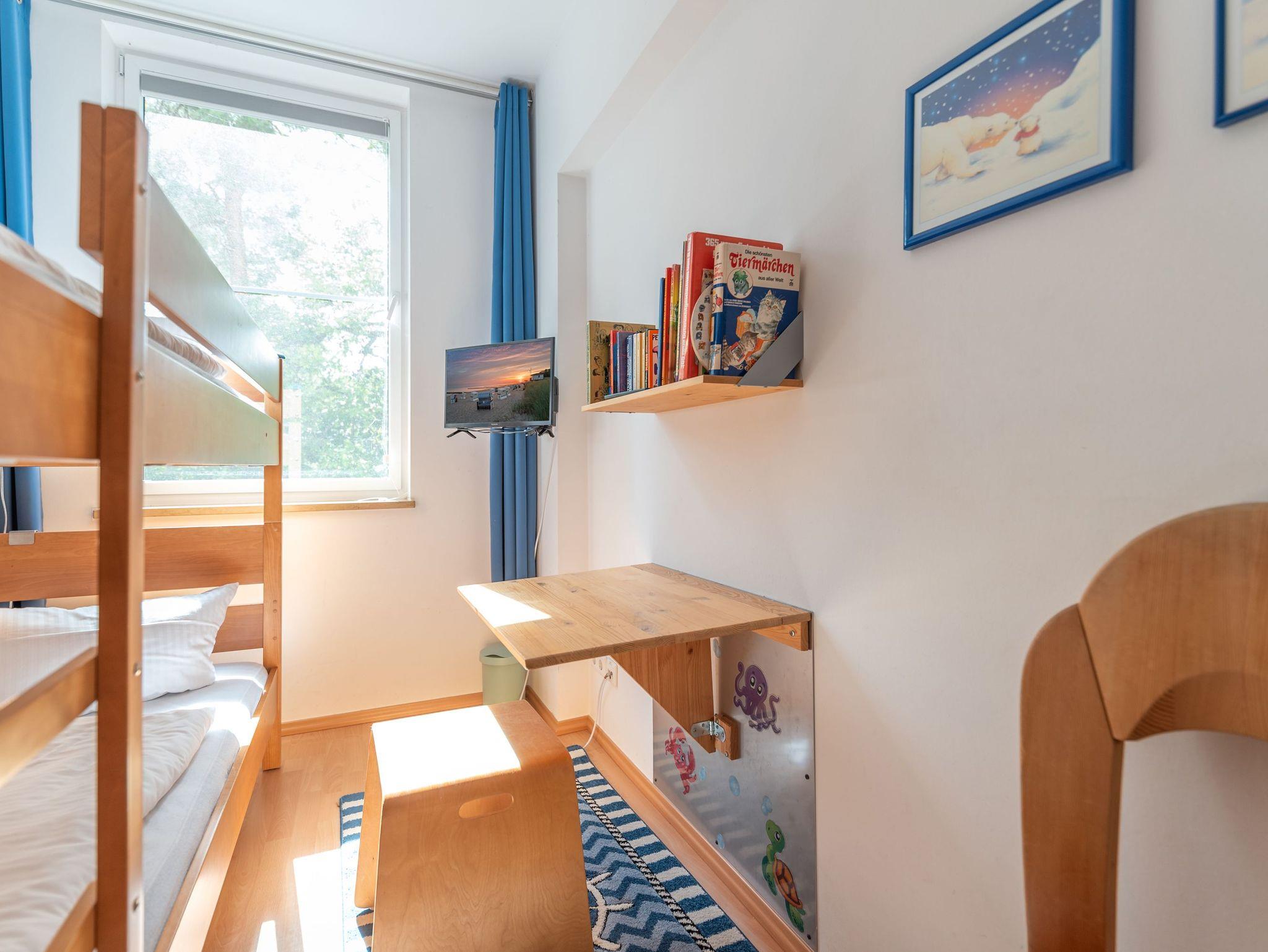 Für erholsamen Schlaf sorgen ein Schlafzimmer mit Doppelbett sowie ein Kinderzimmer mit Etagenbett. Ein Reisebett und ein Hochstuhl stehen für die kleinsten Gäste bereit. Das moderne Duschbad mit WC sowie die Fußbodenheizung in allen Räumen sorgen für zusätzlichen Komfort.