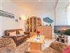 Der helle Wohn-Essbereich lädt zum Entspannen ein und ist mit TV, Radio, WLAN und Telefon ausgestattet. Die offene Küchenzeile verfügt über Backofen, Ceranfeld, Geschirrspüler, Kühlschrank mit Tiefkühlfach, Mikrowelle, Kaffeemaschine, Toaster und Wasserkocher ideal für Selbstversorger.