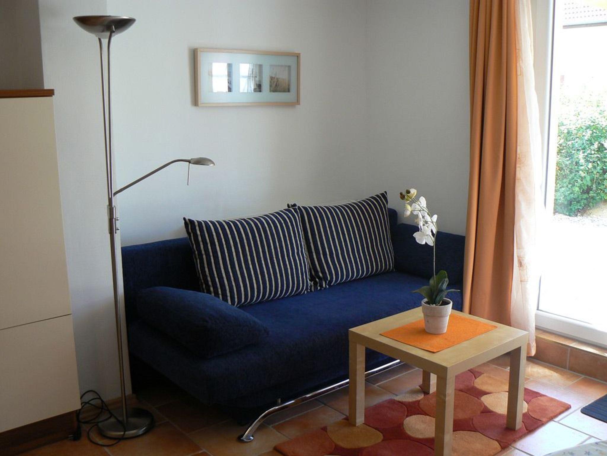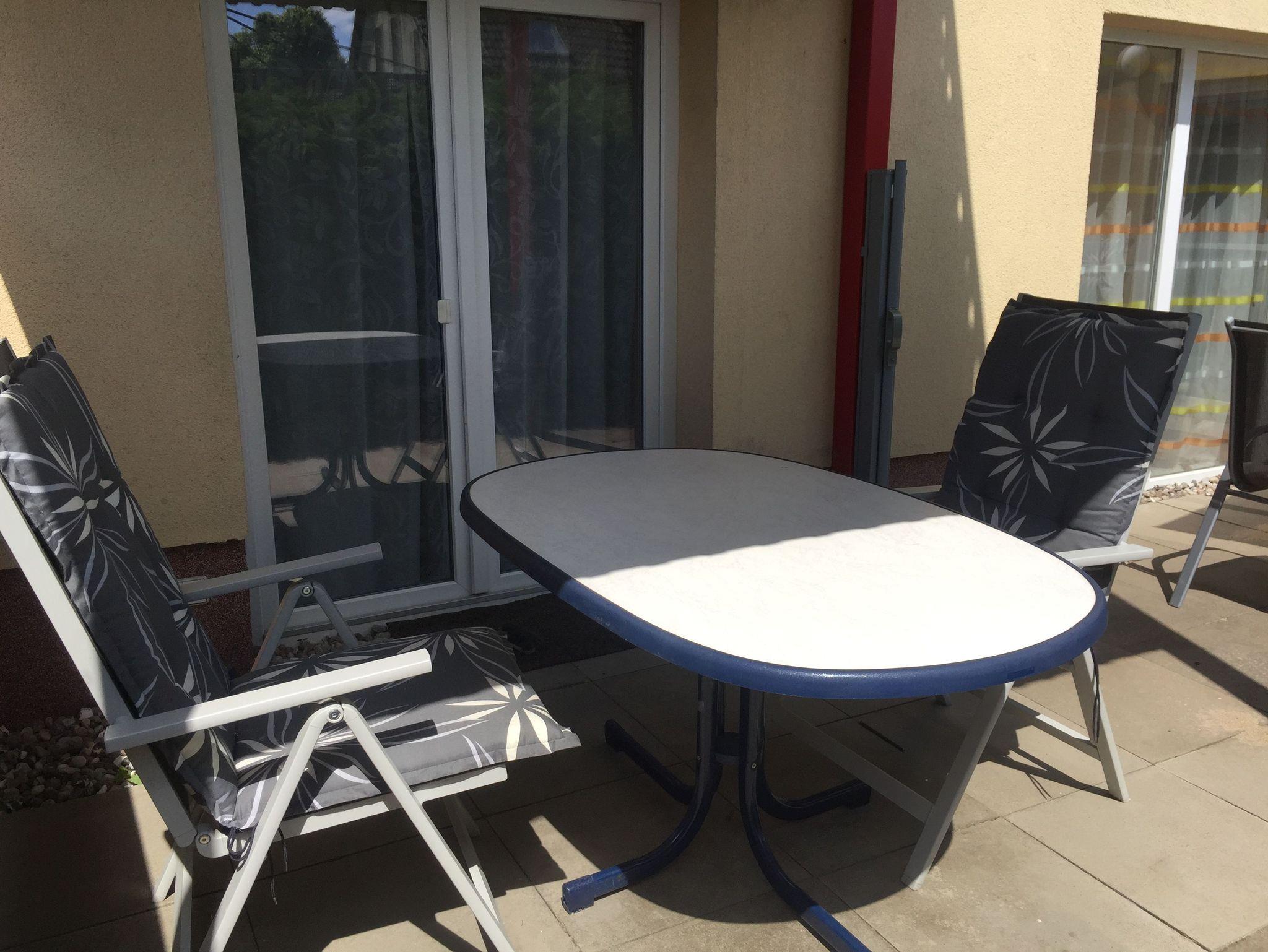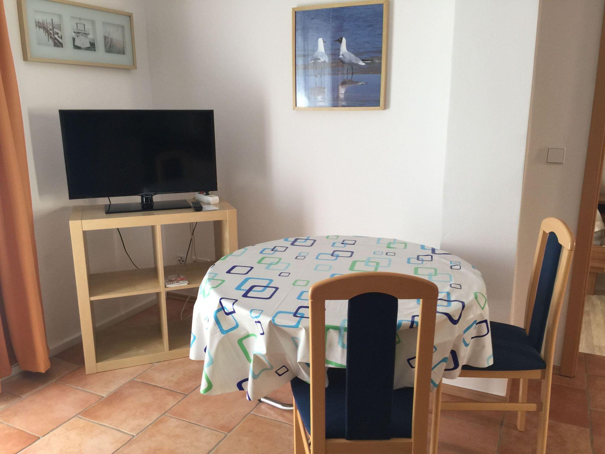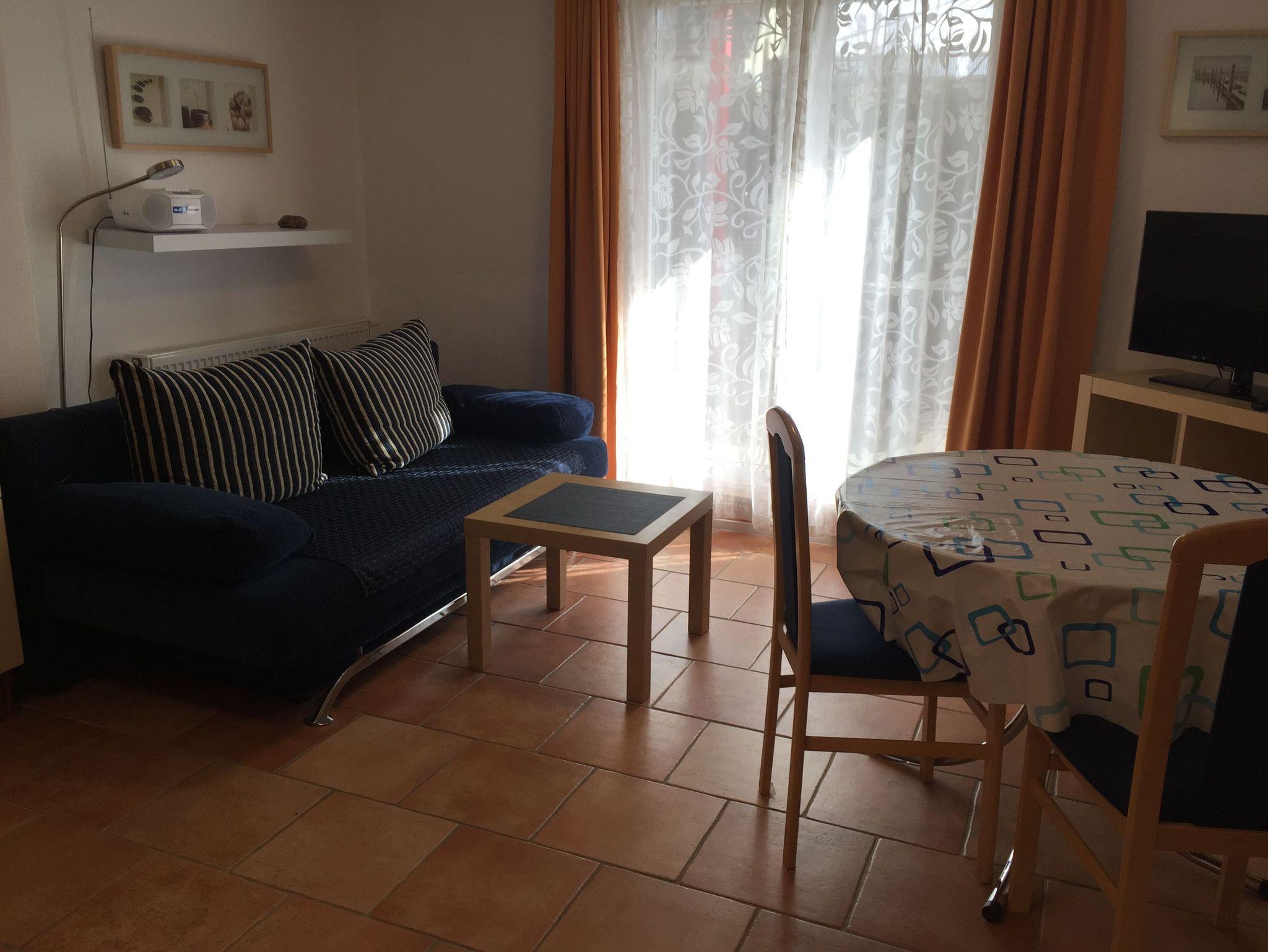 Im Wohnbereich steht Ihnen eine Sitzgruppe, eine Leselampe für gemütliche Schmöckerstunden zur Verfügung. Natürlich hat die Wohnung auch einen Fernseher. Die Wohnung besitzt einen Südbalkon, der mit Möbeln ausgestattet ist. Hier können Sie die Sonne genießen.