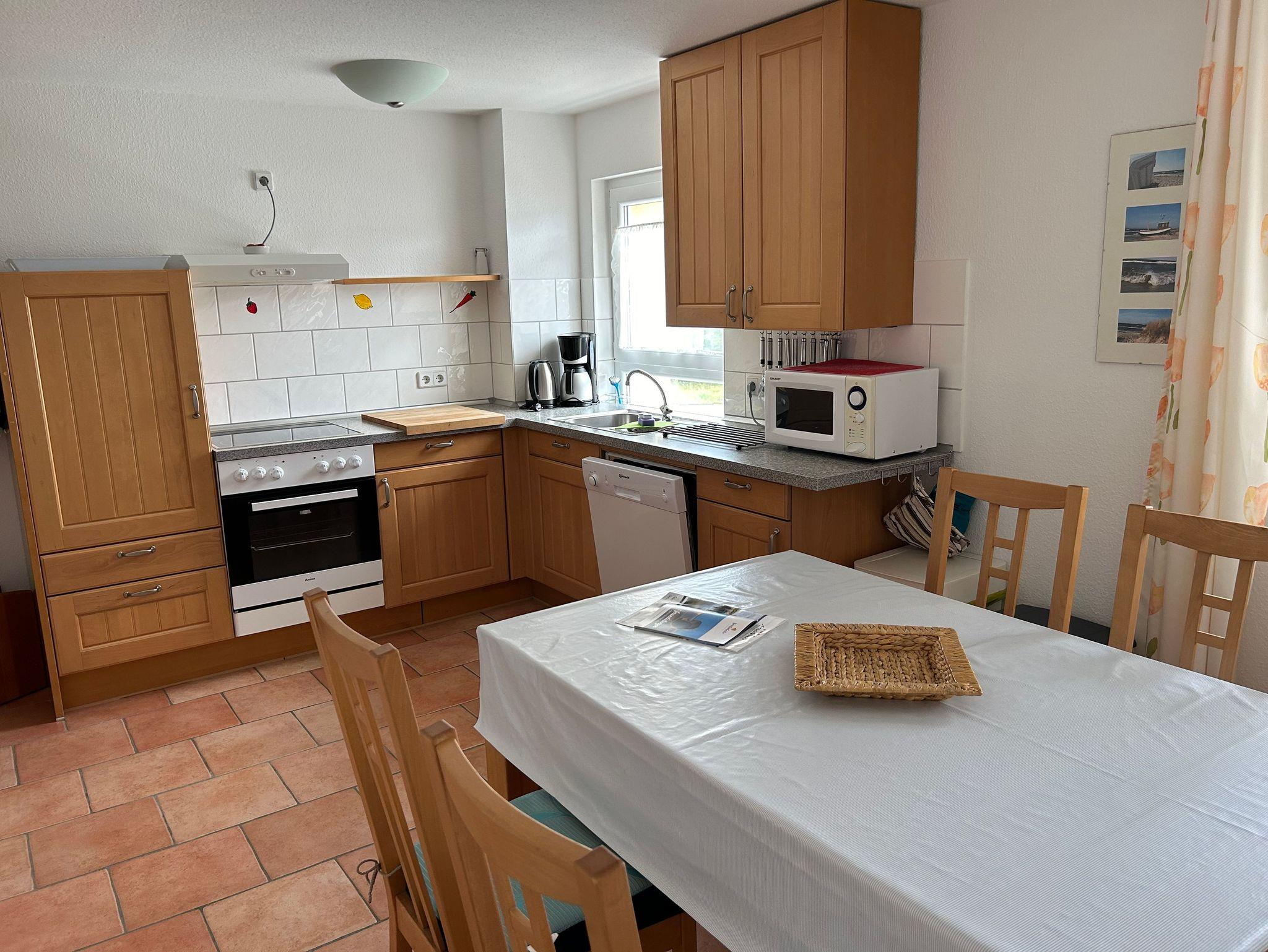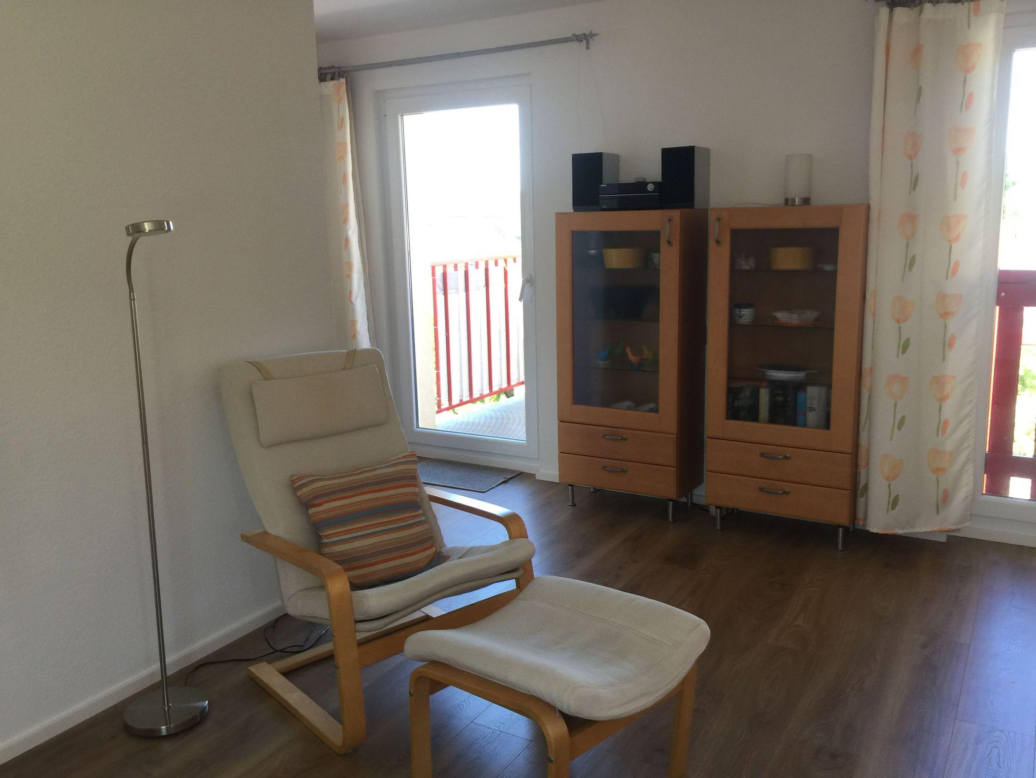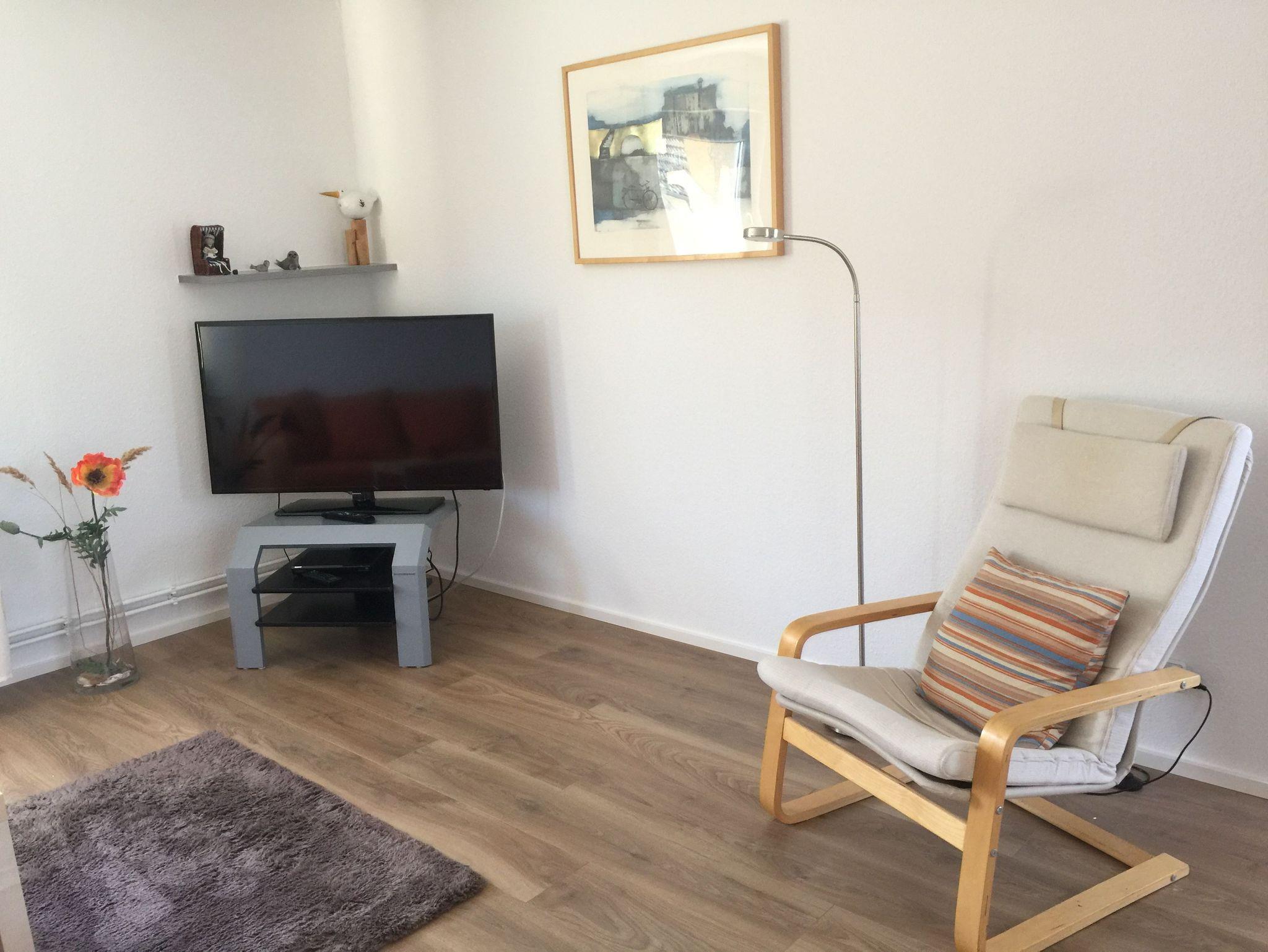 Im Wohnzimmer steht Ihnen eine ausziehbare Sitzgruppe, ein Hochlehnsessel und eine Leselampe für gemütliche Schmöckerstunden zur Verfügung. Natürlich darf ein Fernseher nicht fehlen. Im Schlafzimmer befindet sich ein Doppelbett. Es steht Ihnen eine weitere Schlafniesche(1,40 m breit ) zur Verfügung. Zur Wohnung gehört ein wunderschöner Südbalkon, welcher mit Balkonmöbeln ausgestattet ist. Hier können Sie die Sonne genießen.