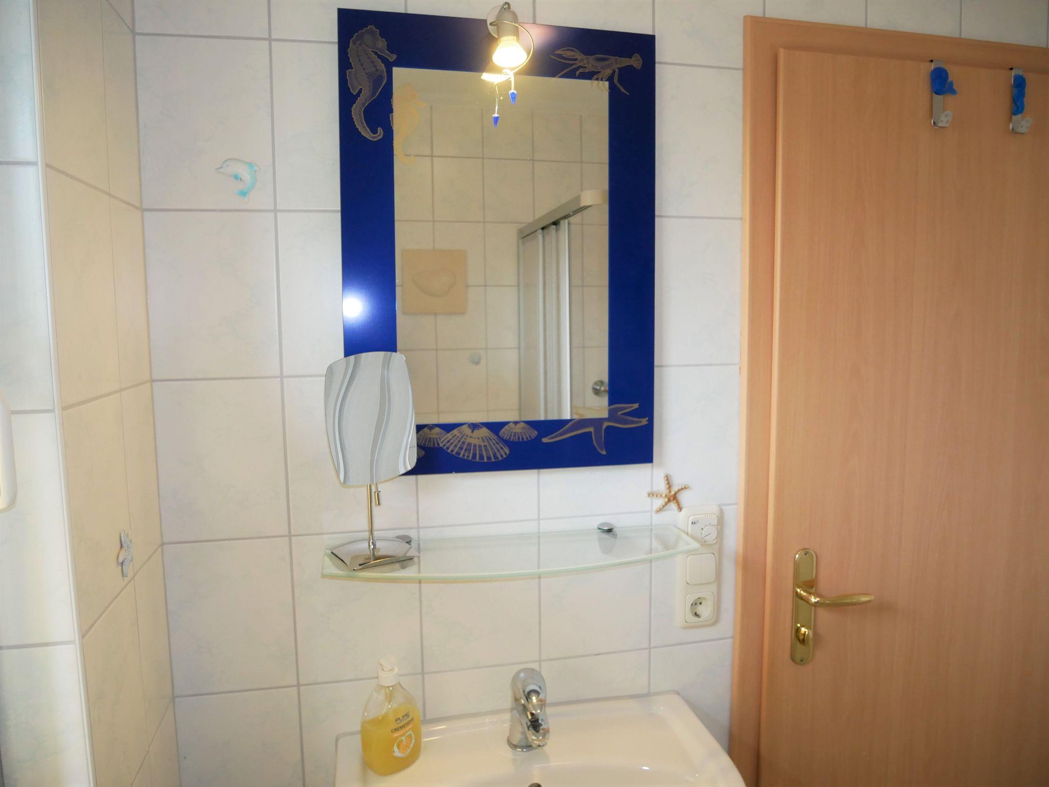 Das Badezimmer ist mit Dusche/WC ausgestattet. Vor der Ferienwohnung befindet sich eine Terrasse mit Grillkamin. WLAN steht Ihnen während des Aufenthaltes kostenfrei zur Verfügung.