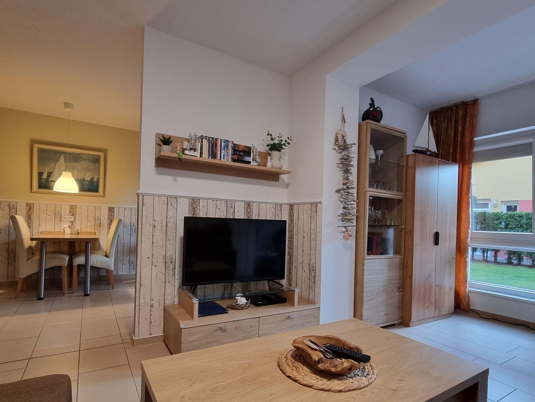 Exklusive Erdgeschoßwohnung „Wanderdüne“ mit großer Terrasse, eigener Garten von 67m² und PKW Stellplatz. Die Wohnung ist hochwertig eingerichtet mit Fußbodenheizung, Strandkorb, TV, DVD-Player, Radio, Terrassenmöbel, Einbauküche mit Ceranherd, Backofen, Kühlschrank, Tiefkühlfach, Gläser, Besteck und Geschirr. Dem Wohnzimmer schließt ein separt gestalteter Erker an.