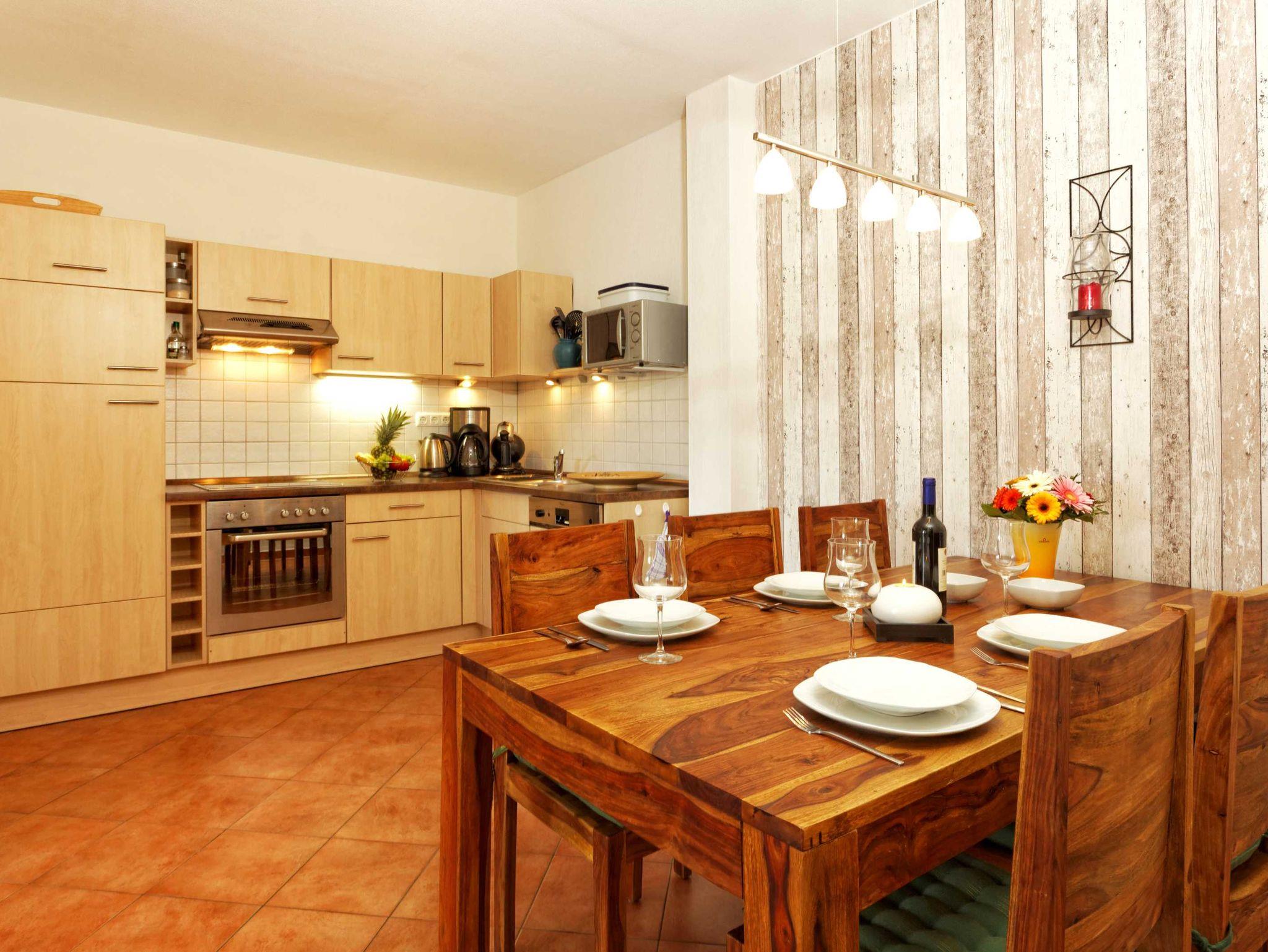 Die 3-Zimmerwohnung ist ausgestattet mit Fußbodenheizung, einer schönen Küche und LCD-TV mit HD-Sendern, DVD Recorder und WLAN.