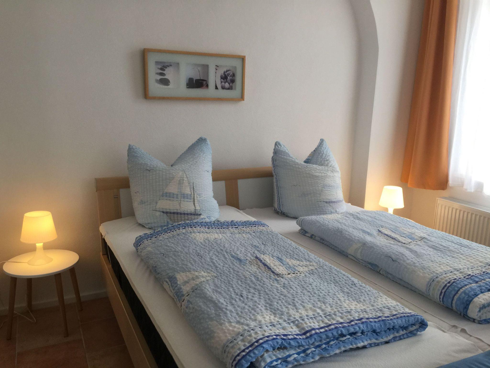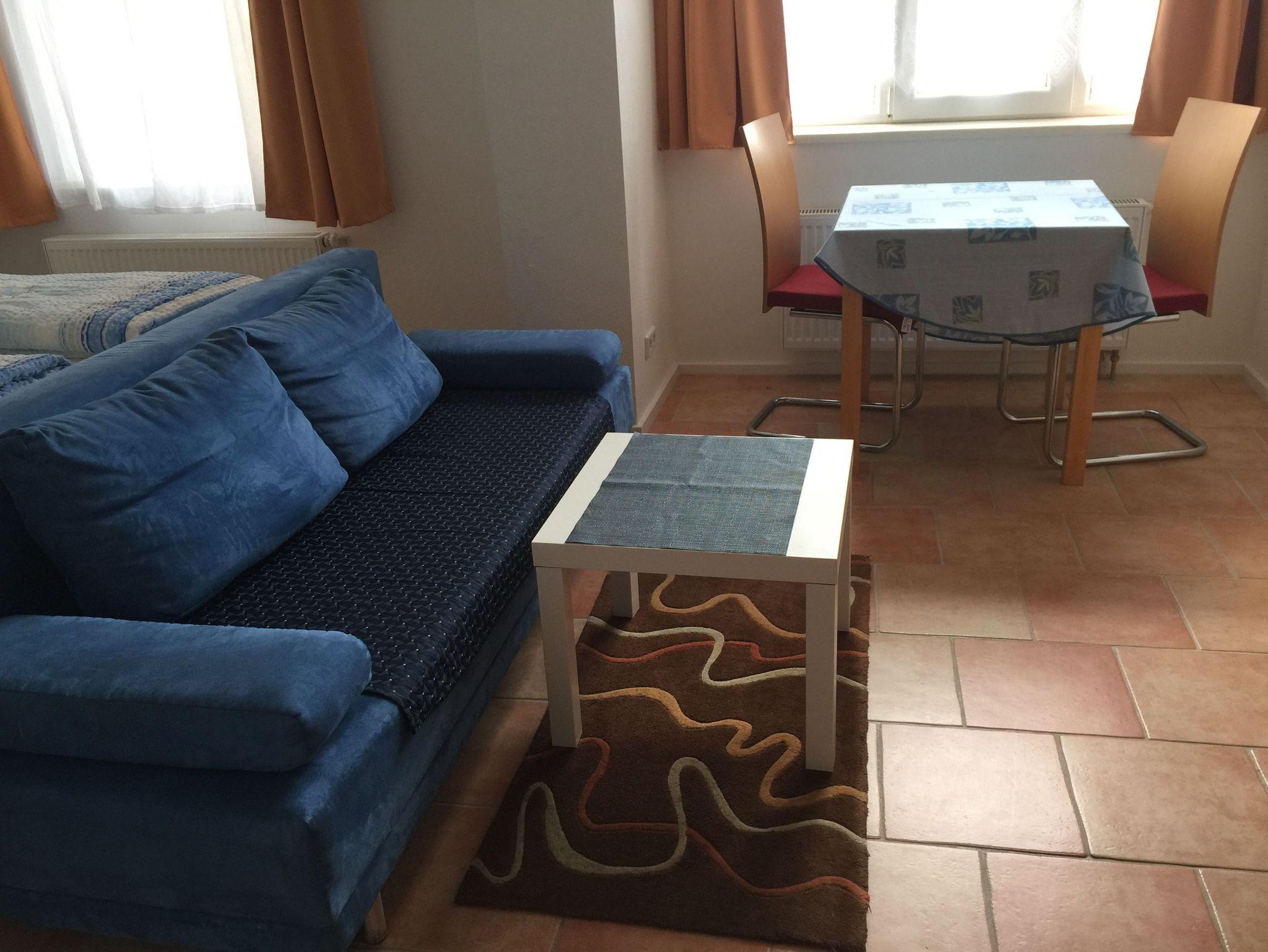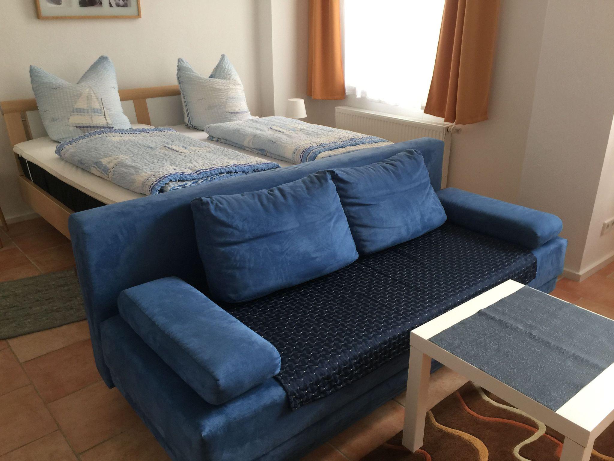 Das 1-Raum-Appartement ?Seerose? befindet sich im Erdgeschoss des Vorderbaus und besteht aus einem gemütlichen Schlafbereich sowie einem Wohn ? Essbereich mit einer modernen Küchenzeile mit Backofen, Kühlschrank mit Gefrierfach, Spülmaschine, Kaffeemaschine und Wasserkocher. Im Wohnbereich stehen Ihnen eine ausziehbare Couch und eine Leselampe für gemütliche Schmöckerstunden zur Verfügung. Sie haben die Möglichkeit die Sitzgelegenheiten im Freien vor dem Vorderbau zu nutzen. Hier können Sie im Sommer Ihr Frühstück genießen.