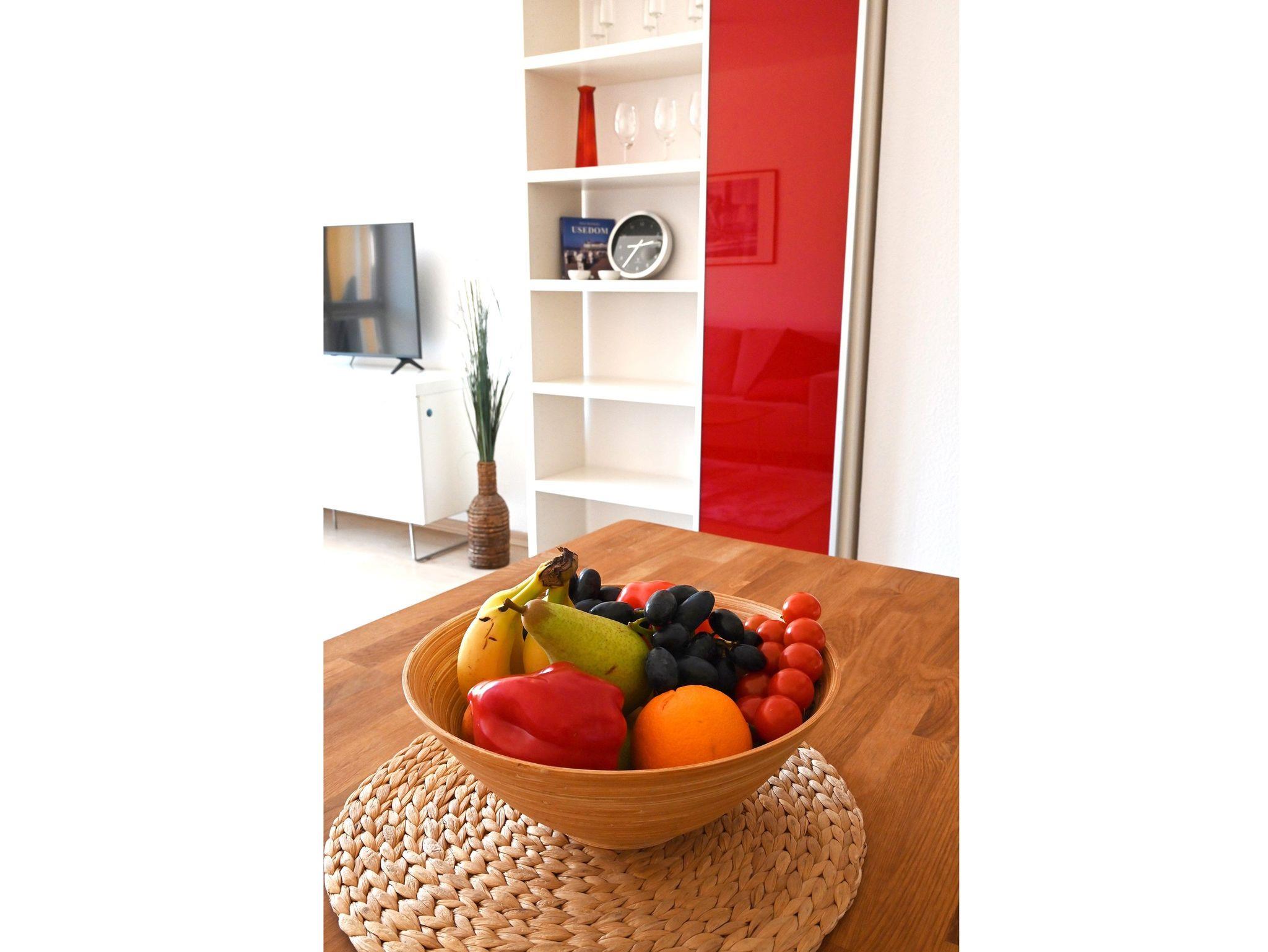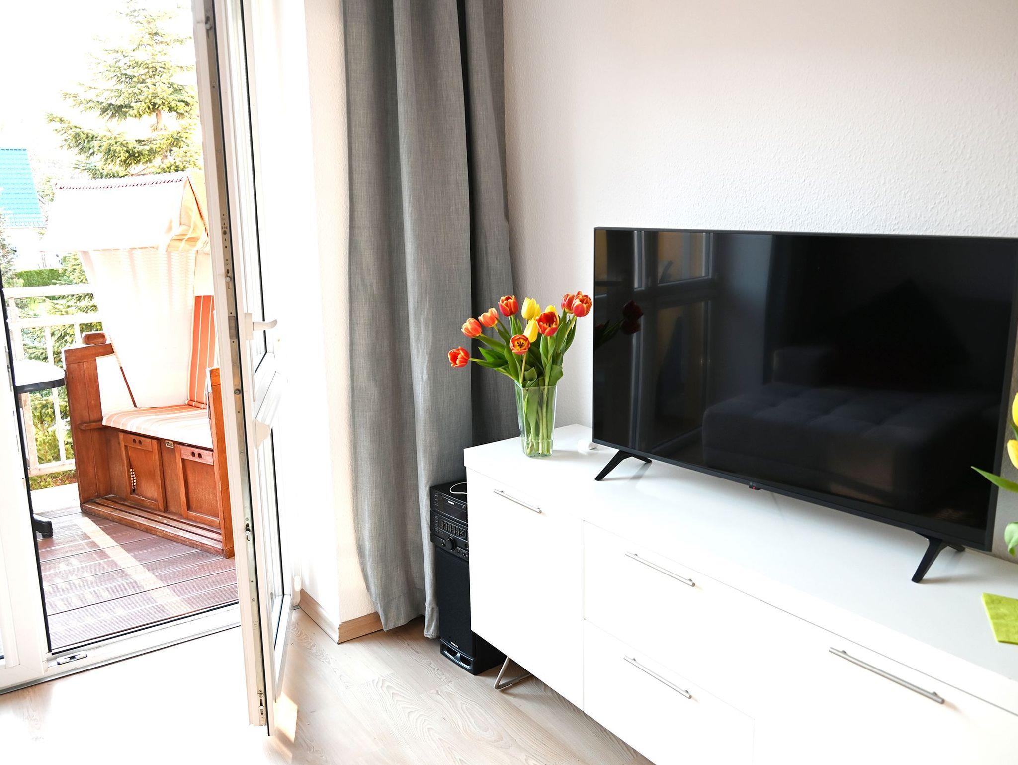 Die Ferienwohnung Am Strand liegt ruhig am Ende der Straße und erstreckt sich über 2 Etagen. Im 1.OG befinden sich das Wohnzimmer mit Flachbild TV & Radio, ein großer Balkon, ein geräumiges Bad mit Fenster, Dusche, WC und Fön. Die offene Einbauküche ist mit Cerankochfeld, Backofen, Kühlschrank, Tiefkühlfach, Mikrowelle mit Grill, ausreichend Besteck, Gläsern und Geschirr ausgestattet. In der oberen Etage befinden sich zwei Schlafzimmer und ein zweites Bad mit Dusche und WC sowie ein weiterer Balkon. In der kalten Jahreszeit sorgt die Fußbodenheizung für behagliche Wärme.
