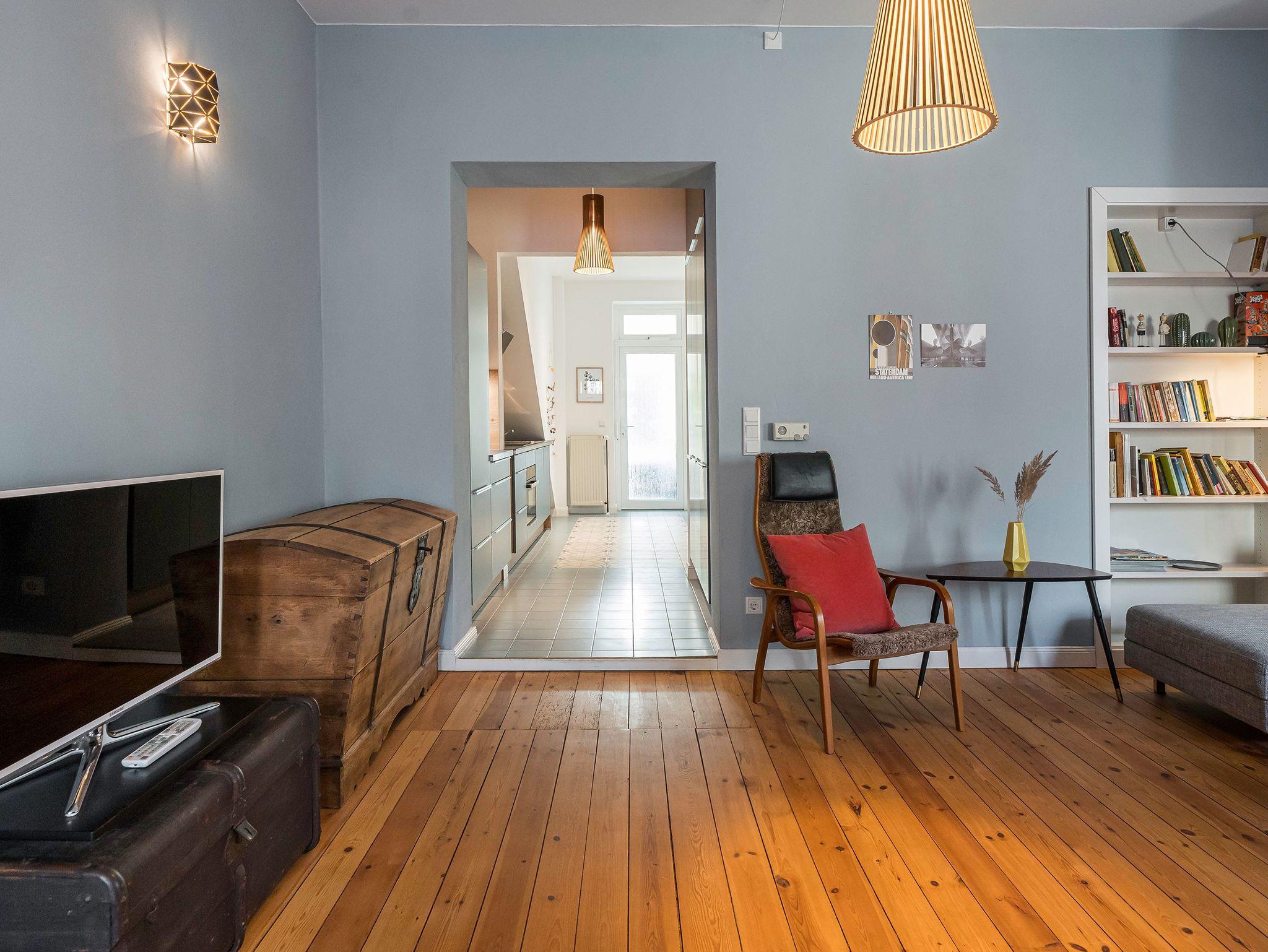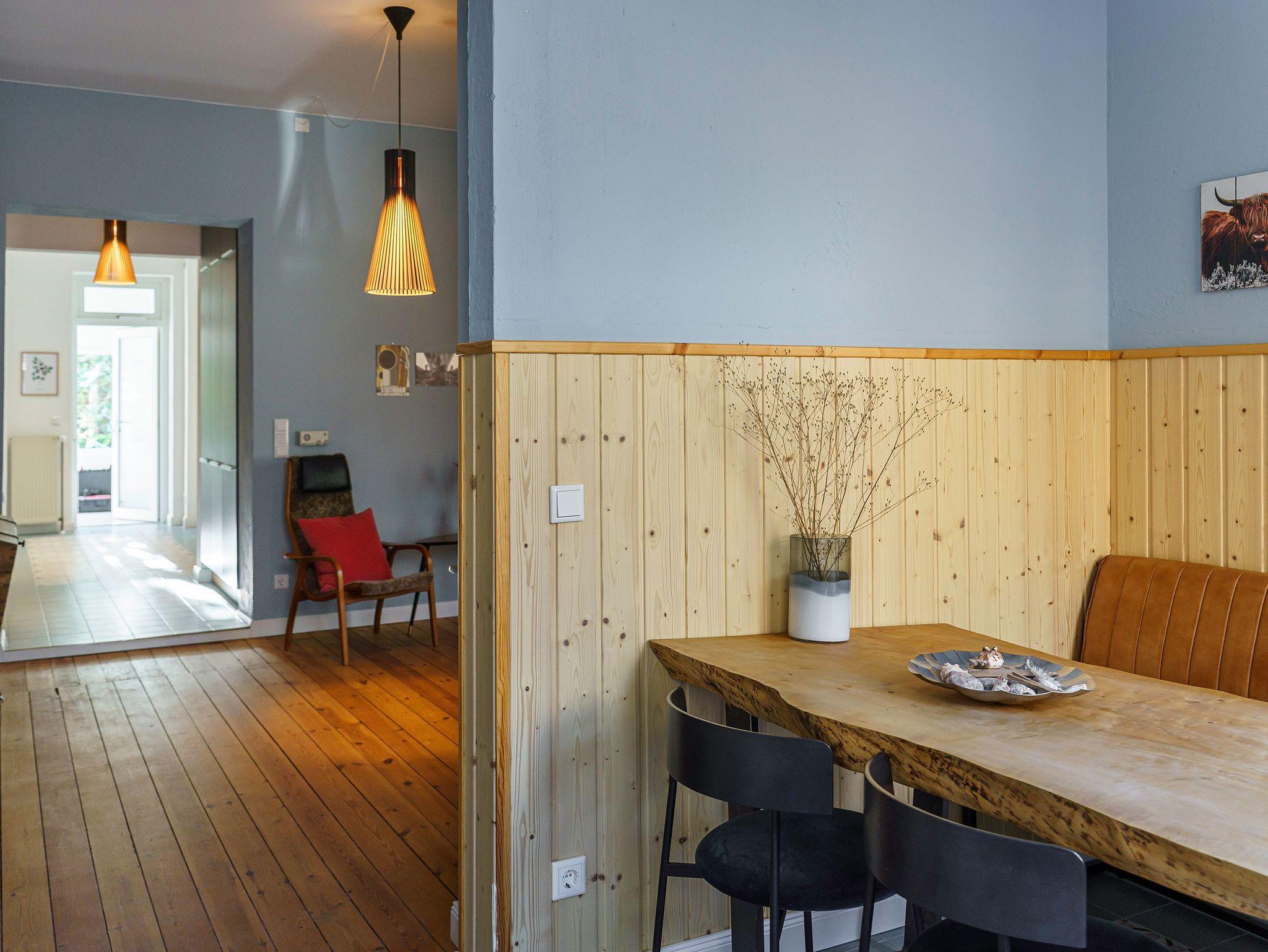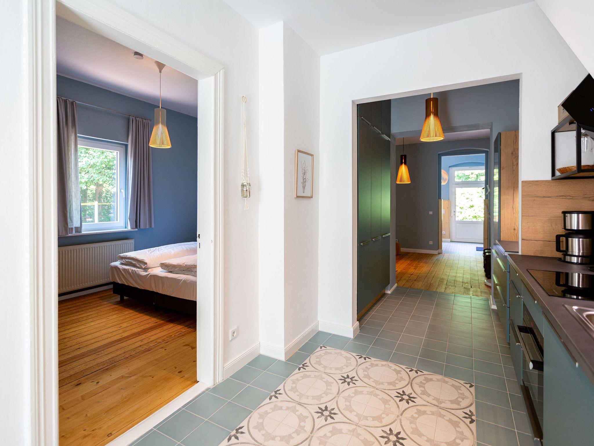 Die Ferienwohnung 1 im Erdgeschoss ist besonders attraktiv für Tierliebhaber, da hier Hunde willkommen sind. Sie bietet einen offenen Wohnbereich mit einer zusätzlichen Schlafmöglichkeit auf einer Schlafcouch und einem Flat-TV. Die Küchenzeile ist mit allem Nötigen ausgestattet, von der Nespressomaschine bis zum Backofen. Der Essplatz in der Veranda lädt zu gemeinsamen Mahlzeiten ein. Das Schlafzimmer verfügt über ein Boxspringbett (1,80m x 2,00m), und das moderne Badezimmer ist mit einer ebenerdigen Dusche ausgestattet. Eine kleine, nach Norden gerichtete Terrasse mit Gartenmöbeln bietet Raum für Entspannung im Freien.
