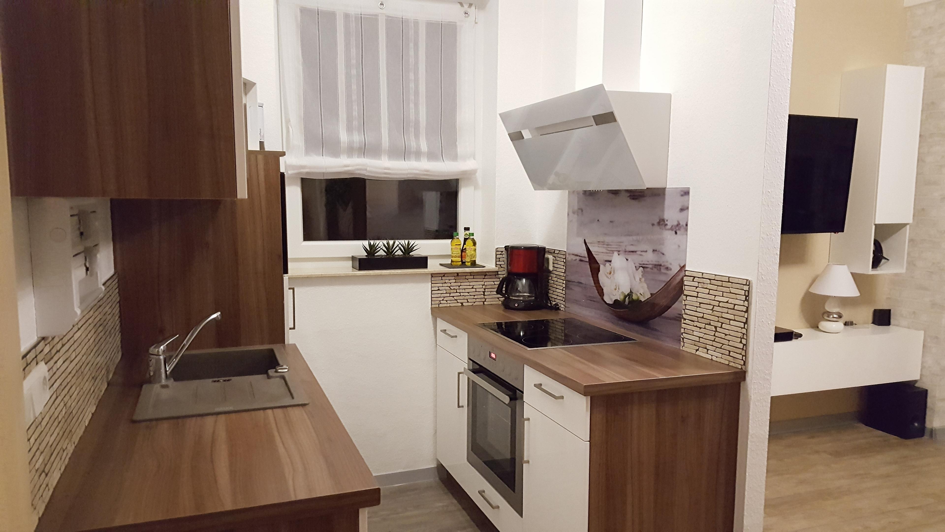 Die vollausgestattete Küche lässt keine Wünsche offen. Sie ist mit einem Geschirrspüler, Herd mit Ceranfeld, Kühlschrank und allen wichtigen Küchenutensilien ausgestattet. Zusätzlich finden Sie Kaffee, Zucker, Salz, Mehl, Öle und verschiedene Gewürze, sodass Sie sich problemlos selbst verpflegen können.