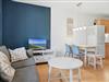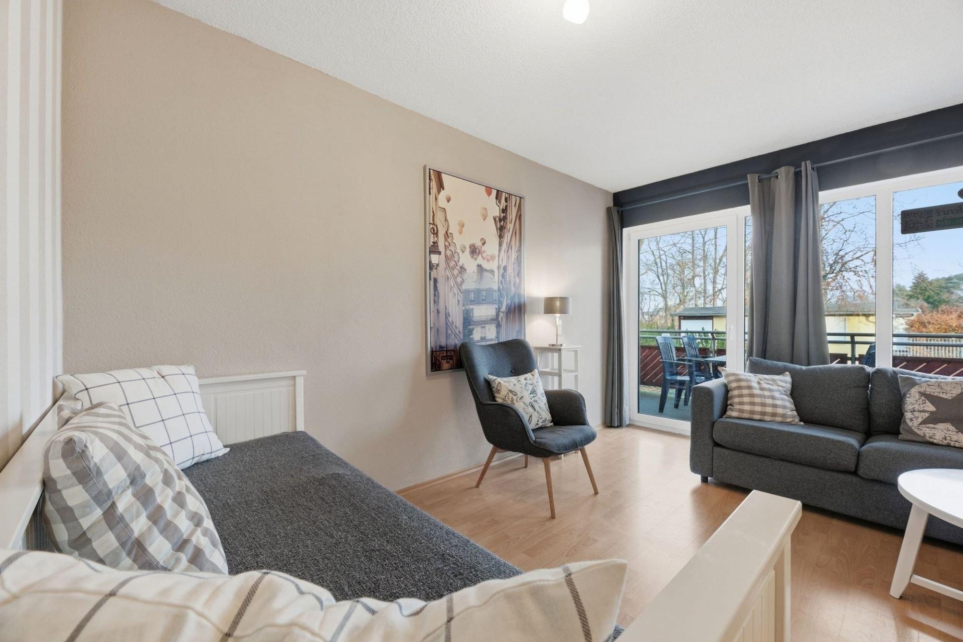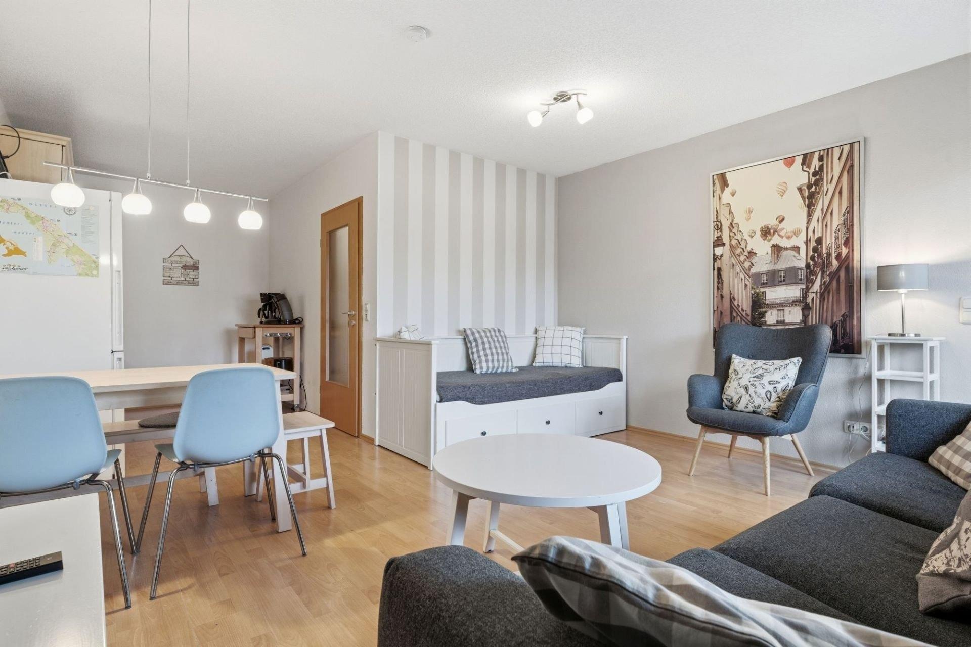 Im geräumigen Wohnzimmer (mit einem ausziehbaren Hemnes-Bett 200 x 180 cm) und im Essbereich sind ausreichend Sitzgelegenheiten vorhanden, um das in der voll ausgestatteten Küchenzeile (Backofen, Kochfelder, Spülmaschine, Spüle, Mikrowelle, Toaster, Mixer, Kaffeemaschine) zubereitete Essen zu sich zu nehmen. Auf dem großzügig geschnittenen Balkon haben Sie ausreichend Platz, um es sich am Tisch mit vier Stühlen gemütlich zu machen. Eine entspannte Atmosphäre gepaart mit moderner Technik, WLAN, Digital-TV und Radio runden Ihren Aufenthalt in der Ferienwohnung Henri ab.