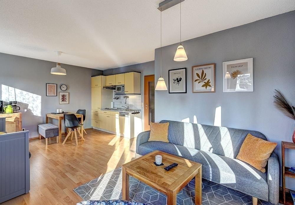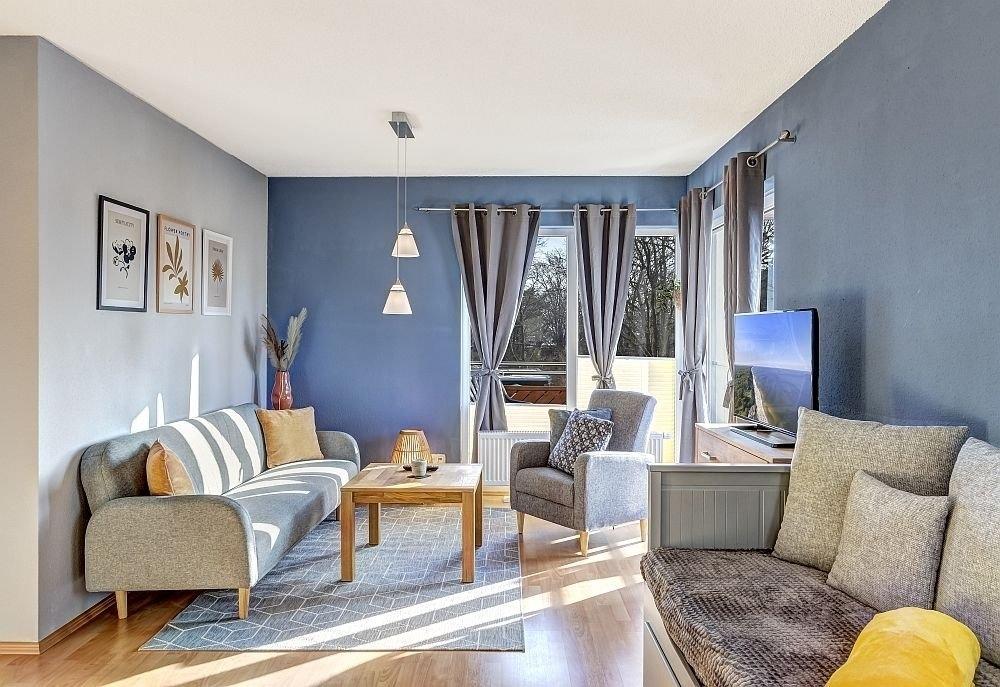 Im großen Wohnzimmer (mit einem ausziehbaren Hemnes-Bett 200 x 180 cm) und im Essbereich sind ausreichend Sitzgelegenheiten vorhanden, um, um das in der voll ausgestatteten Küchenzeile (Backofen, Kochfelder, Spülmaschine, Spüle, Mikrowelle, Toaster, Mixer, Kaffeemaschine) zubereitete Essen zu sich zu nehmen. Auf dem großzügig geschnittenen Balkon haben Sie ausreichend Platz, um es sich am Tisch mit vier Stühlen gemütlich zu machen. Eine entspannte Atmosphäre gepaart mit moderner Technik, WLAN und Digital-TV runden Ihren Aufenthalt in der Ferienwohnung Hannenüter ab.