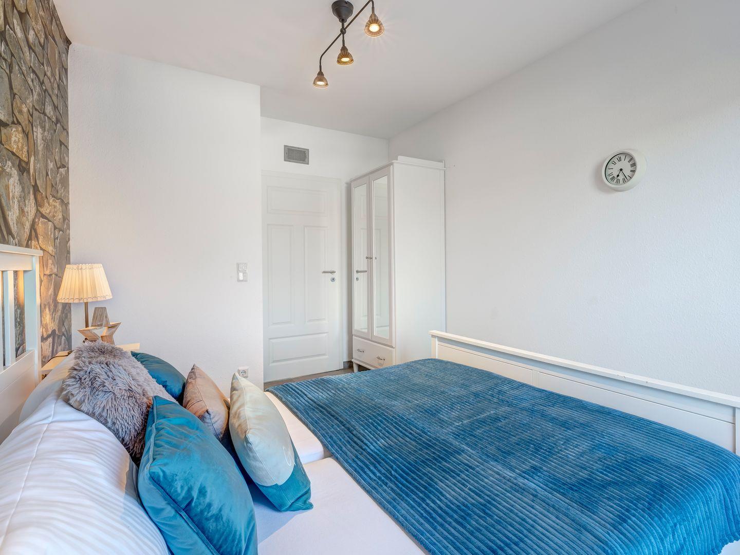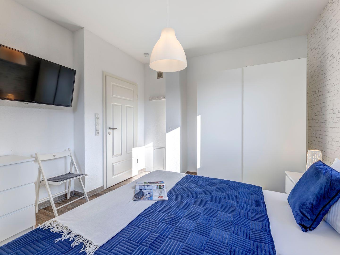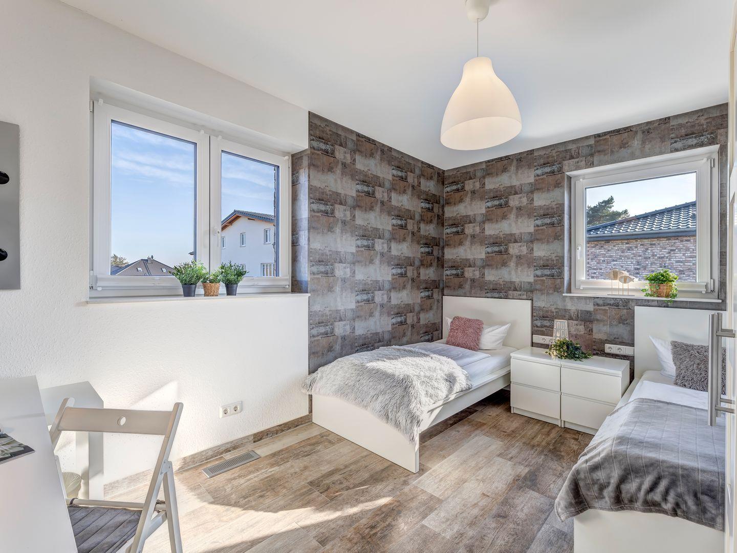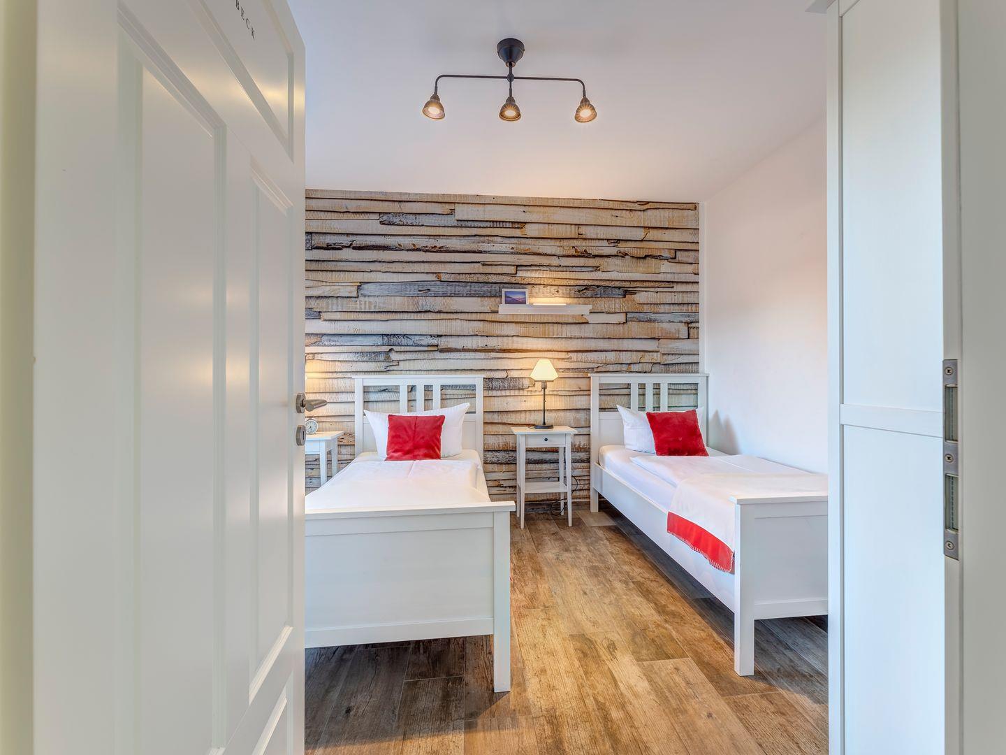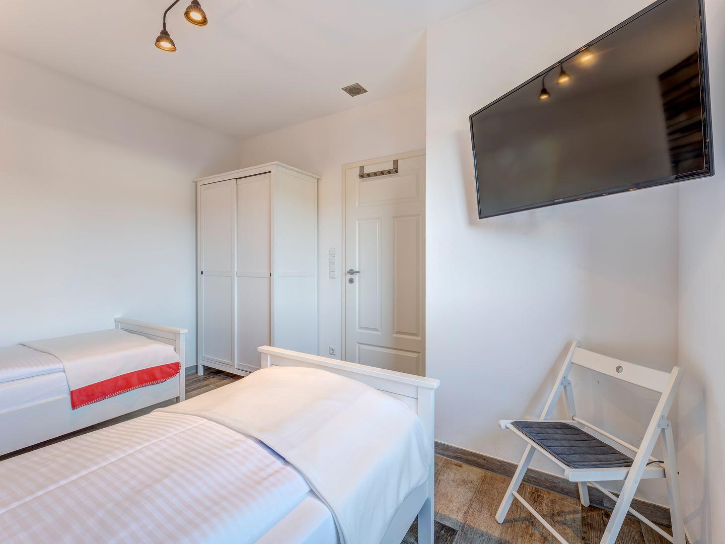 Jedes Zimmer bietet entweder ein Doppelbett oder zwei Einzelbetten, sodass Platz für bis zu 8 Erwachsene besteht.