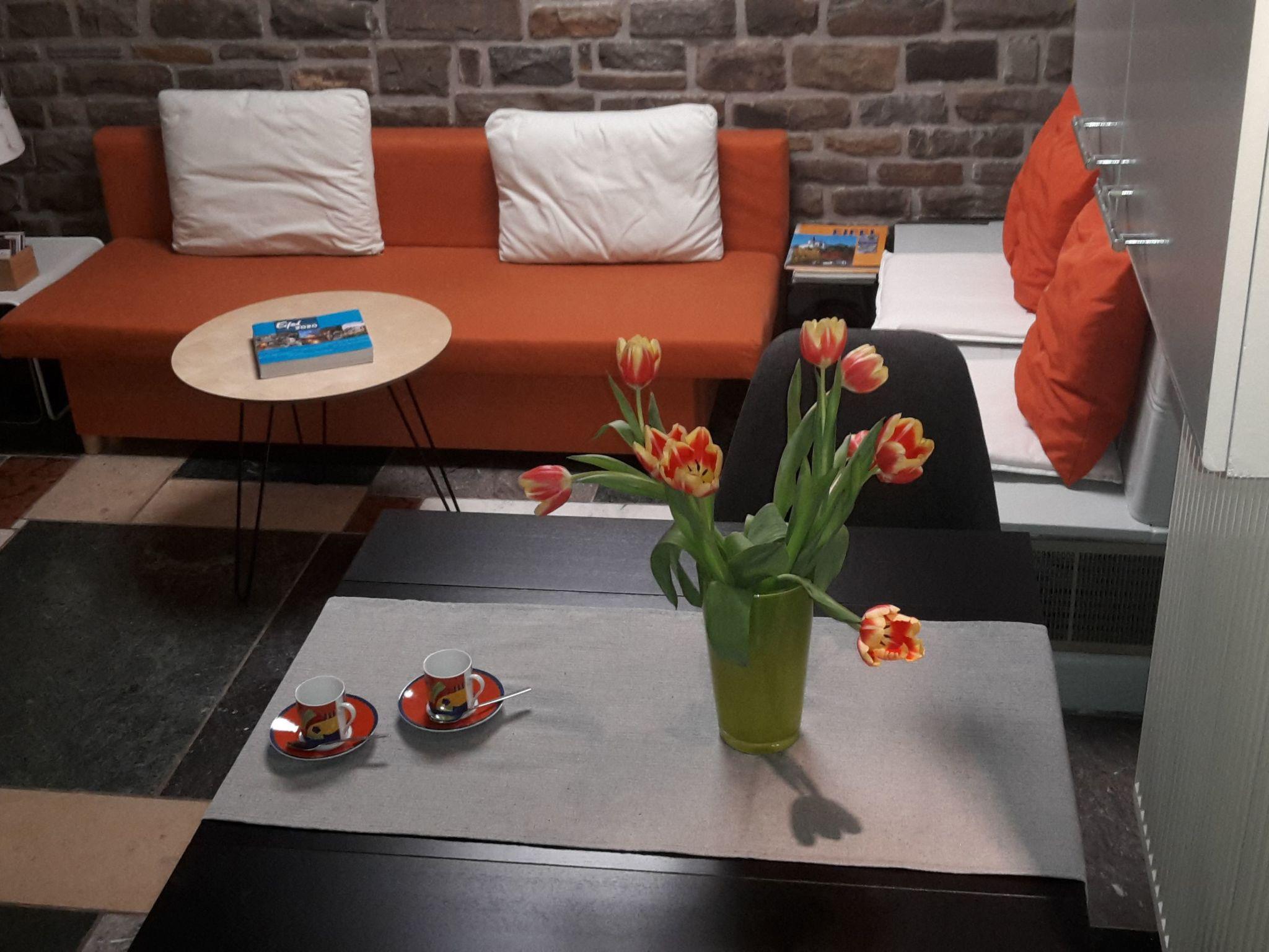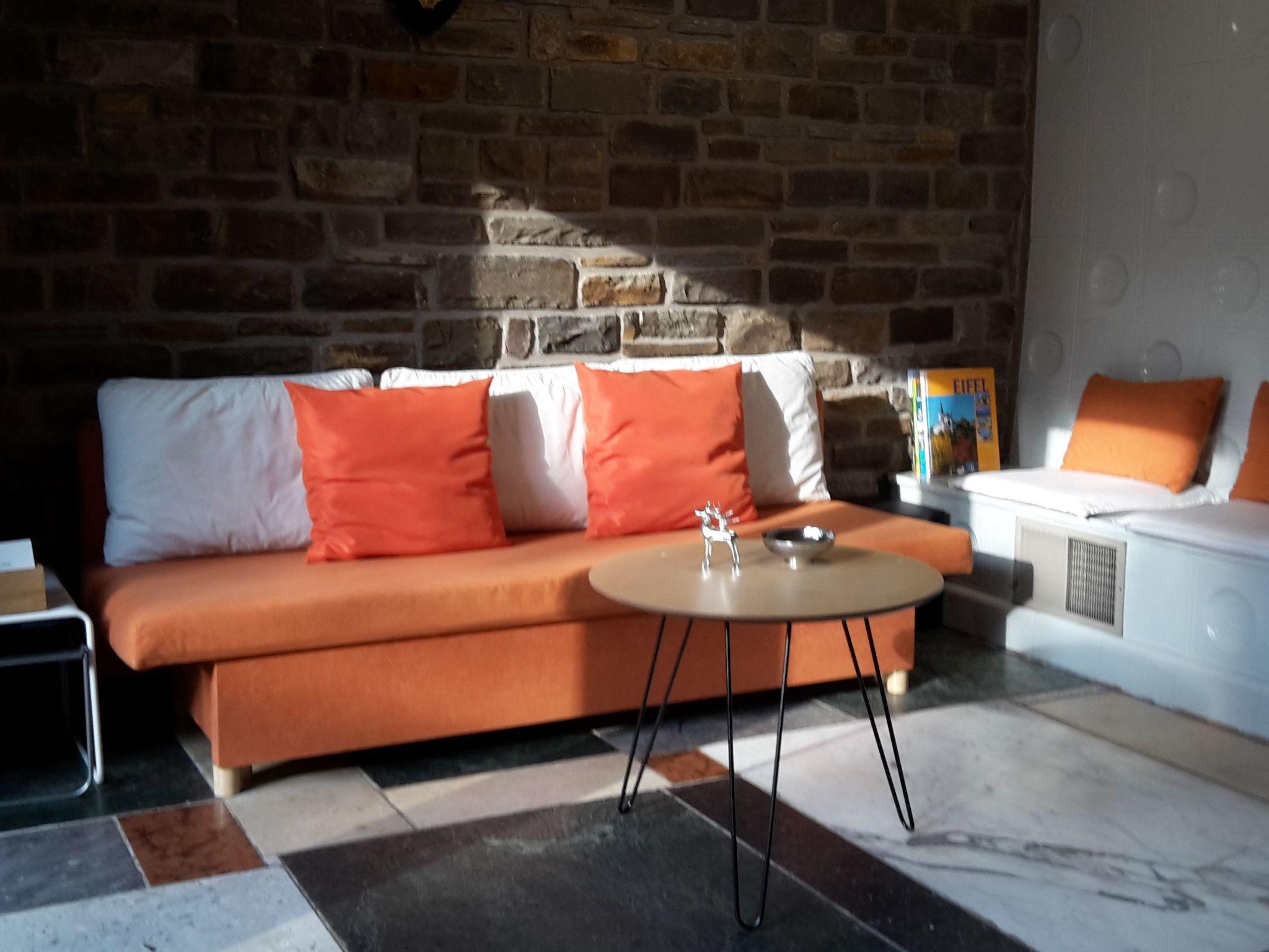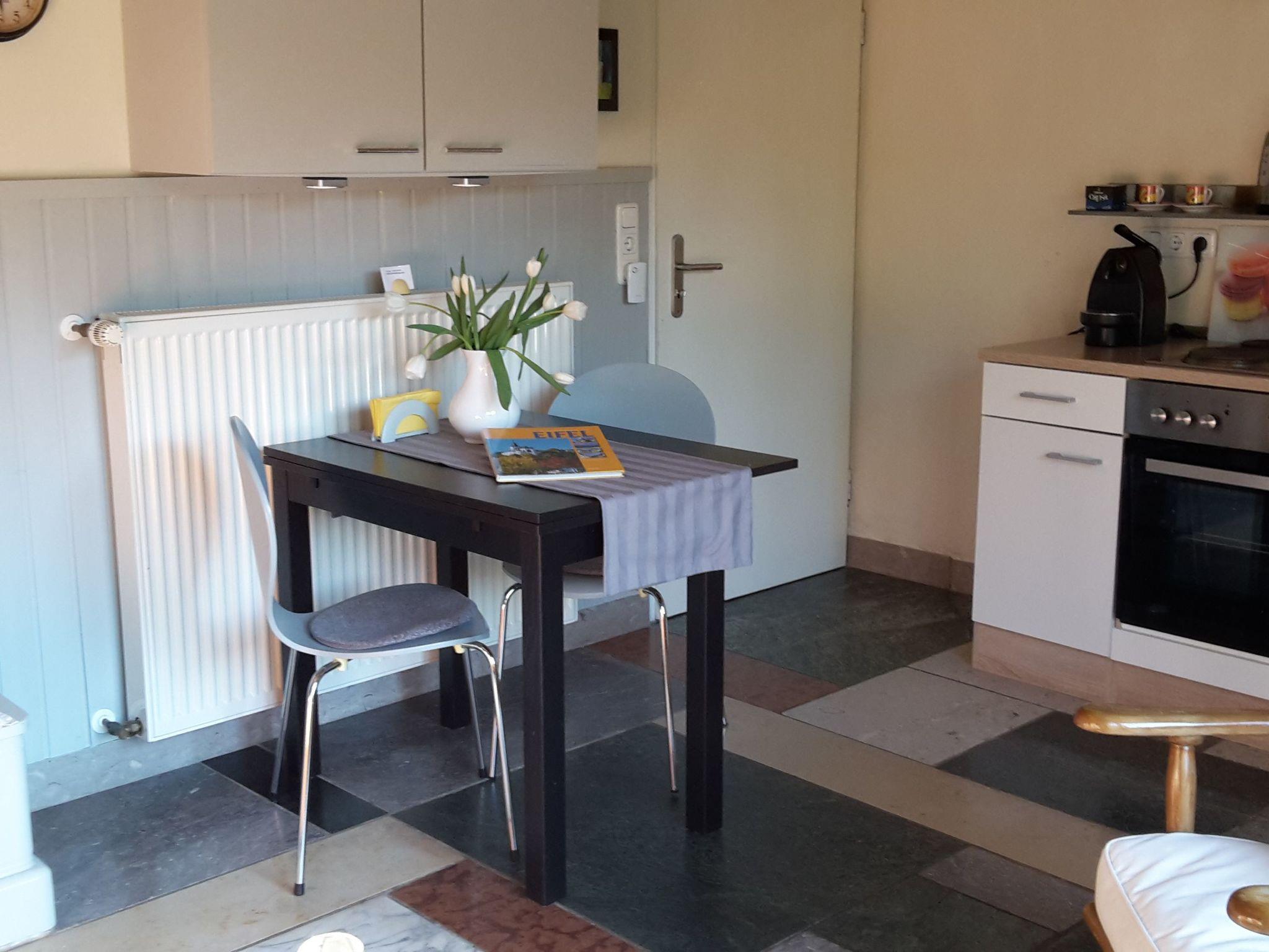 EIFEL REFUGIUM, 2 bed apartmentWelcome to the Kylltal, on the edge of the volcanic Eifel.In free-standing holiday house EIFEL REFUGIUM with its fantastic hillside is the apartment "TERRACE".The house stands on the high banks of the Kyll and is surrounded by an old idyllic garden. In 2015 it has been renovated indoors loving and design-oriented.Just to relax and comfort offering, the apartment "TERRACE" is for 2 people.It is 44 square meters and well equipped with everything that makes life pleasant. Coming over a garden path or the stairs, you enter the apartment through the patio doors. The kitchen has a modern, well-equipped kitchenette with oven and 4 hotplates and refrigerator with freezer. A seating area with sofa bed, fireplace bench and table perfect for leisurely eating and relaxing. A flat-screen TV on the wall where applicable, for entertainment.The bright bedroom with nice ambience has a 180x200 large bed with quality mattresses. The bathroom with window is equipped with a modern sink, tub and toilet. A spacious Extra shower is located on the opposite side of the hallway. The apartment naturally has a utility room with washer and dryer. For car and bicycles, there is a park.Music CDs from classical to modern and reading material from Roman to crime or Eifel picture books, as well as current Eifel info available to them and let the charm of the apartment experience.The large terrace with seating and sun loungers invites you to enjoy the sun all day. Next to the terrace there is a barbecue hut with open fireplace, well suited to extend the evening by the fire, the outdoor fun.In the romantic garden and large outdoor terrain they can stroll or find one of the most beautiful Verweilplätzchen. Be it in the shade on the bench by the pond (1.40 m deep. Caution toddlers!), Or on the lawn with deck chair and umbrella. With a cool glass of Riesling Mosel or fresh Bitburger Pils can be well observed and make plans for the next day of the sunset.Do you want to be active? Just outside the front door, you can leave for short and long walks in the Eifel FORESTS or bike rides on the romantic Kylltal-CYCLE. Or you may make a nice tour to the EIFELMAAREN (25km) to the VINEYARDS AT THE MOSEL (40km) or in the Roman city of Trier (55km)A visit to the KUNSTHAUS ZENDSCHEID with interesting exhibitions of contemporary art is highly recommended.Short descriptionOther : Non-smoking houseShort description 1Number of kitchens : 1SurroundingNearby sports facilities : Bike tours, Climbing, Fishing, Football area, Golf course, Hunting facilitiesRental Facilities : Bicycle rental service, car rentalSurrounding 1Excursion possibilities : Visit the ROMANS CITY TRIER Leisure and indoor swimming pool in Gerolstein Cascade adventure in Bitburg with sauna Eagle and Wolf Park Gerolstein Wild and Erlebnispark DaunLocation description : Zendscheid : 120 inhabitants Chapel in the village center. Playground in the municipal hall. Location -based hotel and restaurant. Kunsthaus with current exhibitions.Other leisure facilities : Cycling , mountain biking , motobiking, hiking.Garden and outdoorGarden facilities : Garden furniture provided, GrillOn-site leisure facilities : SaunaService benefitsService facilities (may incur additional costs) : Bakery service, Child care, baby sitter possible, Cleaning service during your stay, Drinks service, Shopping service before arrival, Transfer service (airport etc)Outside area: Fenced; Garden available; Loggia; Parking spaces: 1; Private parking space; Terrace; Wood grill;House information: 2nd double bed; Bathrooms: 2; Bedroom; Bicycle rental: 0,00 km; Detached building; Floor: 0; Property area: 1800 m²; Total number of floors in the building: 1; Year of construction: 1972; Year of renovation: 2020;Living area: CD-Player; DVD-Player; Fireplace; Iron; Radio; Satellite-tv; Sleeping sofa; TV;Bath/WC: Hairdryers; Shower; Toilet;Kitchen: Coffee capsule machine; Coffee machine; Dishwasher; Electric stove; Espresso machine; Freezer; Freezer; Fridge; Mini-oven; Oven; Toaster; Water boiler;Other: Baby chair; Clothes dryer; Fishing; Forest; Games for adults; Games for children; Heating; Mountain view; Non-smoking object; Owner lives on the property; Vacuum cleaner; Washing machine; Wifi all-inclusive package;Distances (linear, approx.): Canoe for rent: 18,00 km; Distance hiking trail: 10 m; Distance to airport: 55,00 km; Distance to cafés/ restaurants: 0,40 km; Distance to fishing: 0,30 km; Distance to food market: 3,00 km; Distance to golfcourt: 12,00 km; Distance to lake: 15,00 km; Distance to minigolf: 18,00 km; Distance to railway station: 0,80 km; Distance to river: 0,20 km; Distance to swimming pool: 8,00 km; Next location: 0,10 km;Short descriptionOther : Non-smoking houseSurroundingNearby sports facilities : Fishing, Golf courseRental Facilities : Bicycle rental serviceGarden and outdoorGarden facilities : GrillService benefitsService facilities (may incur additional costs) : Child care, baby sitter possible, Cleaning service during your stay, Transfer service (airport etc)Outside area: Fenced; Garden available; Grill; Loggia; Parking spaces: 1; Private parking space; Terrace;House information: 2nd double bed; Bathrooms: 1; Bedroom; Bicycle rental: 18,00 km; Detached building; Floor: 0; Property area: 1800 m²; Year of construction: 1972; Year of renovation: 2019;Living area: CD-Player; DVD-Player; Fireplace; Iron; Radio; Satellite-tv; Sleeping sofa; TV;Bath/WC: Hairdryers; Shower; Toilet;Kitchen: Coffee capsule machine; Coffee machine; Dishwasher; Espresso machine; Freezer; Freezer; Fridge; Mini-oven; Oven; Toaster; Water boiler;Other: Baby chair; Clothes dryer; Fishing; Forest; Heating; Mountain view; No group bookings; No youth groups; Non-smoking object; Owner lives on the property; Vacuum cleaner; Washing machine; Wifi all-inclusive package;Distances (linear, approx.): Distance hiking trail: 20 m; Distance to airport: 55,00 km; Distance to cafés/ restaurants: 0,40 km; Dista