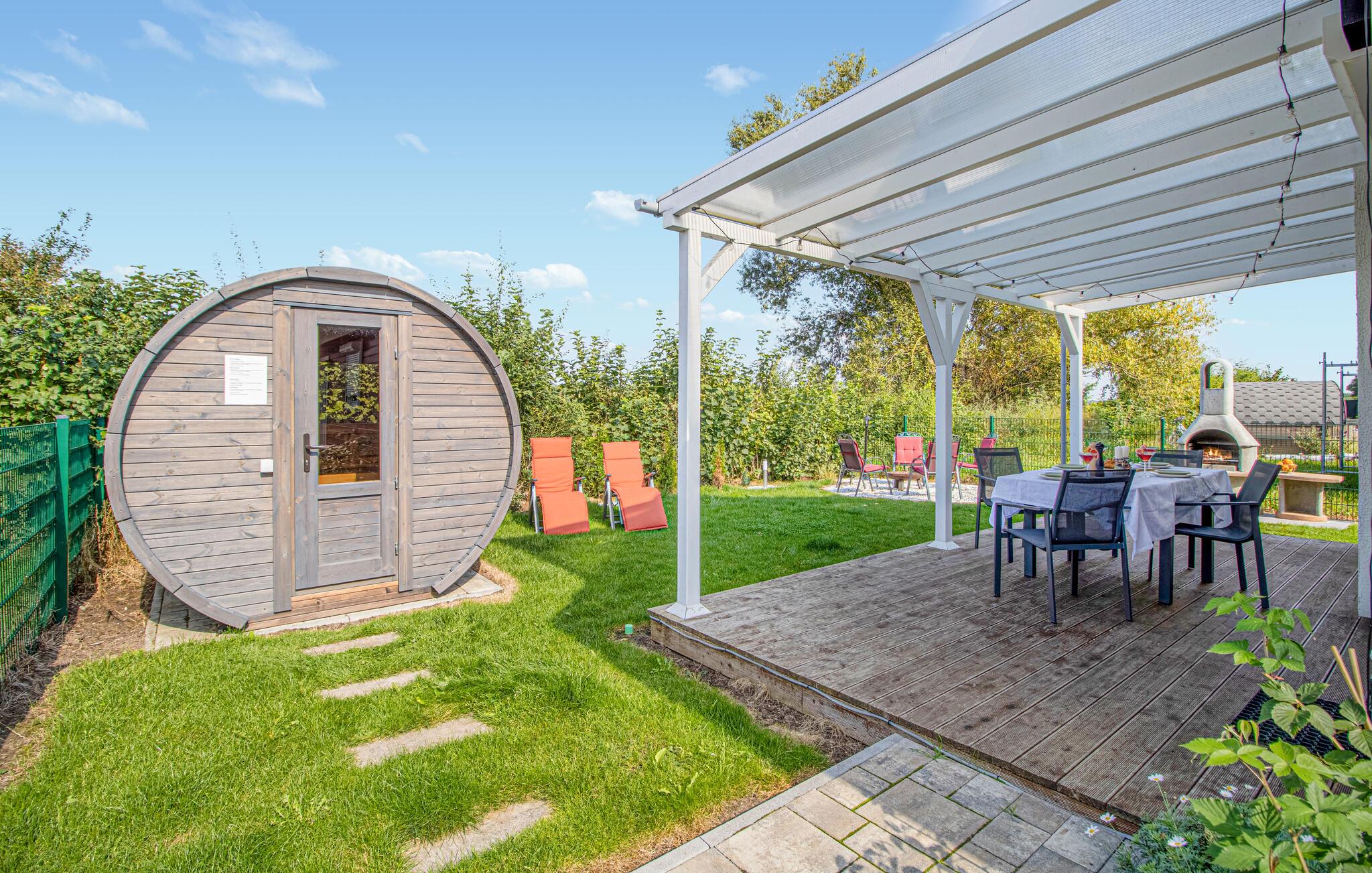 I kan nyde solen og den friske luft i jeres egen have eller på terrassen, hvor I kan sidde under pergolaen. Tilbring hyggelige aftener på terrassen, læn jer godt tilbage under pergolaen eller tænd op i grillen og læg planer for jeres ferieture.