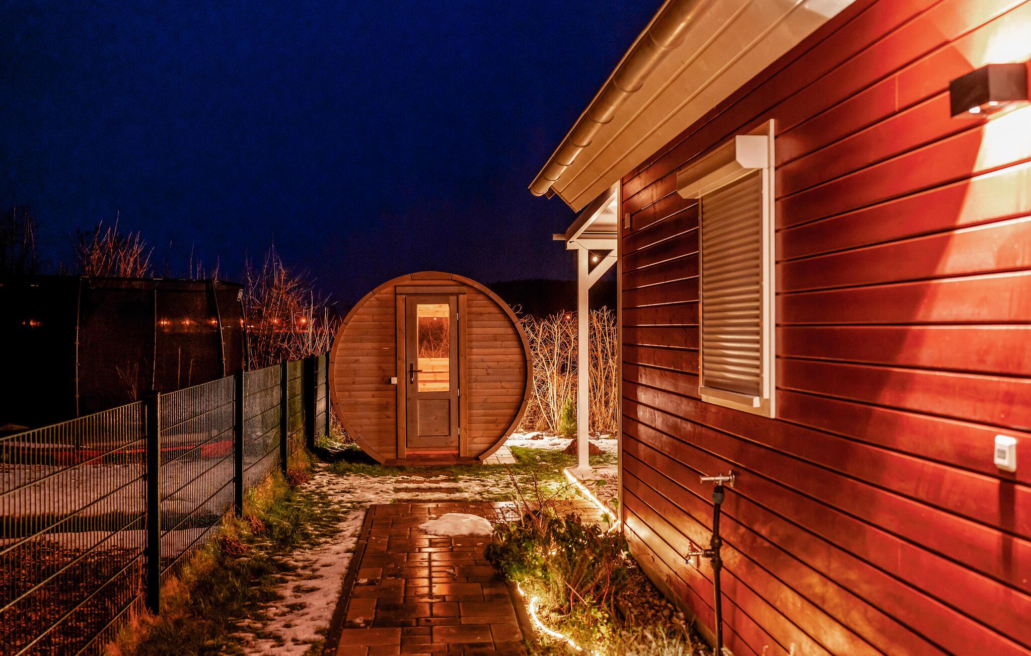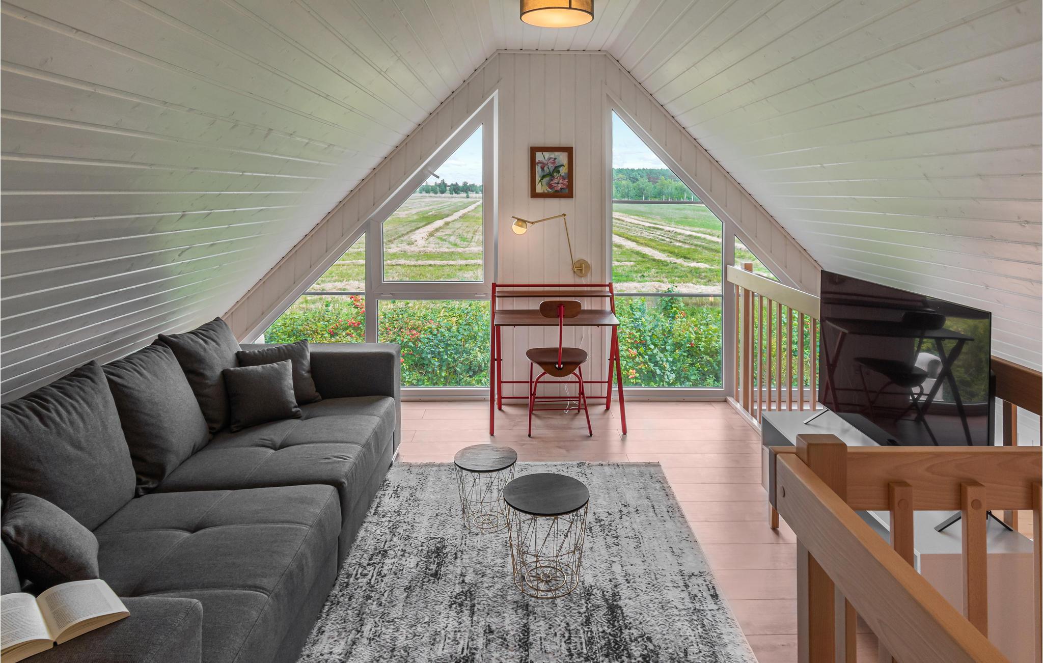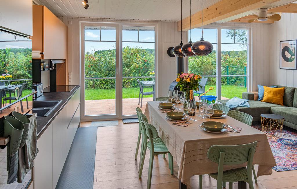 Dette skønne træhus ligger i udkanten af ??feriebyen og har en vidunderlig udsigt over landskabet. Uanset årstid er huset et dejligt sted at slappe af efter en lang, aktiv dag i naturen. Når temperaturen falder, er der ikke noget hyggeligere end at læse en bog, lave mad med familien eller spille brætspil foran den knitrende ild i brændeovnen. Oplev dyrelivet gennem de store vinduer og lad batterierne op i dette beroligende landskab.