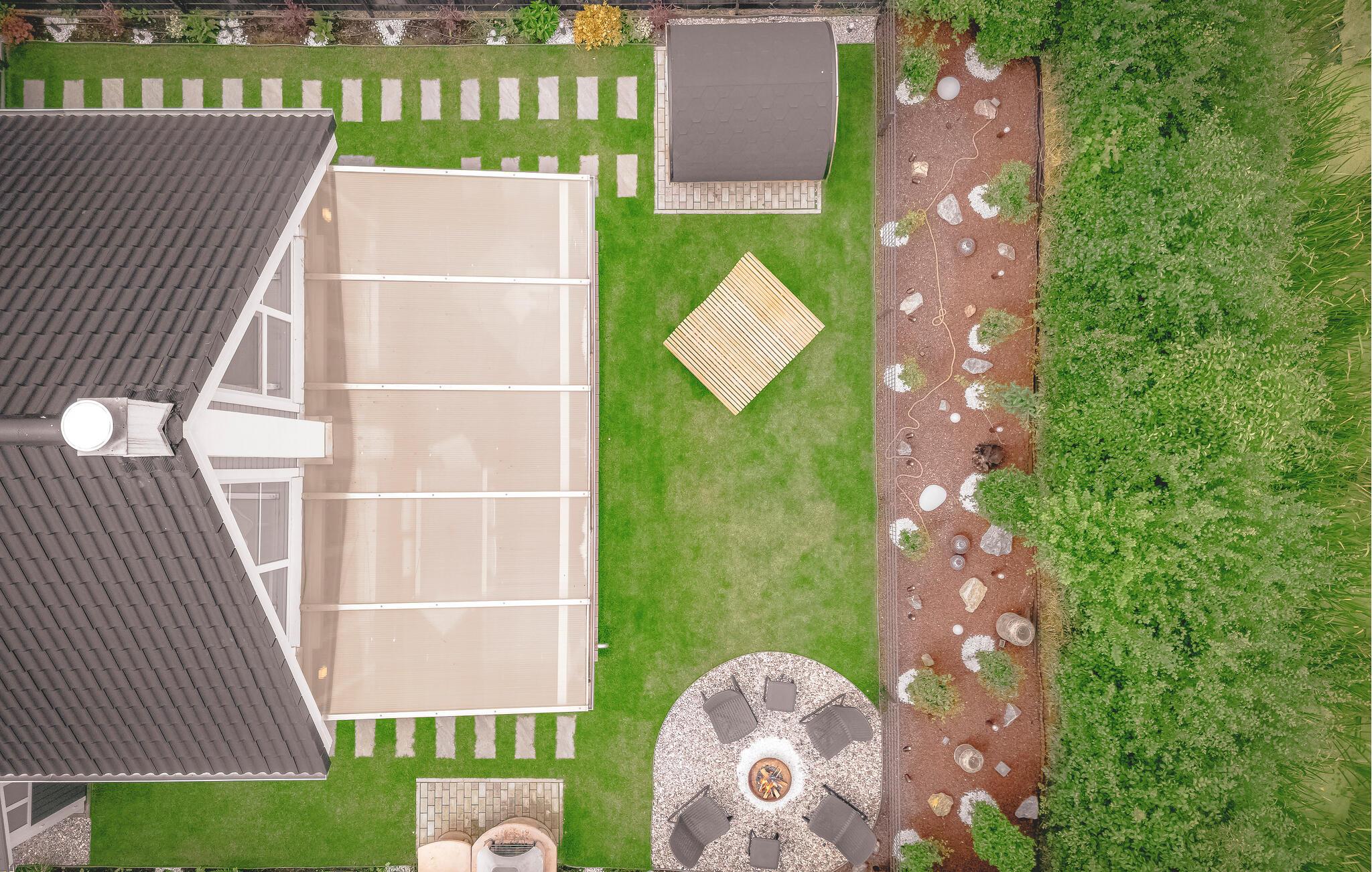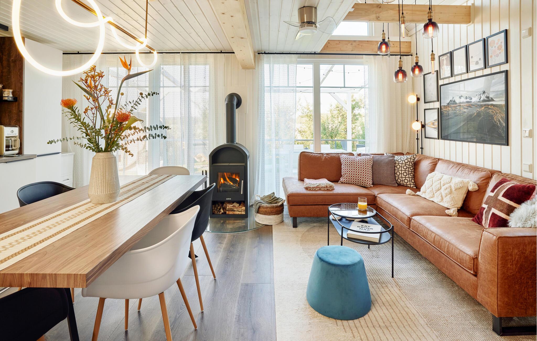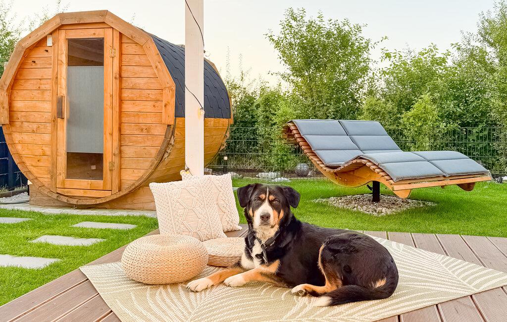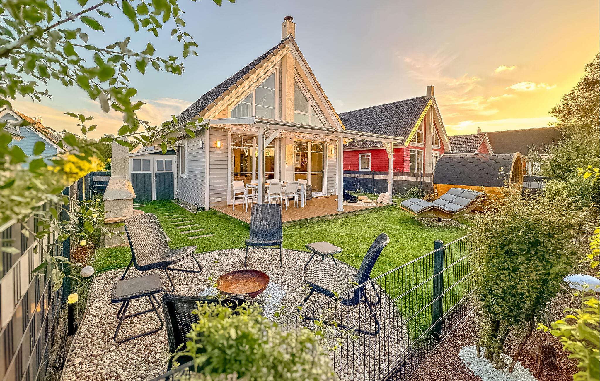 Den dejlige have med en stor overdækket træterrasse er det perfekte sted til de lune sommeraftener, ligesom I kan tænde bål og se, hvordan mørket falder på, mens I nyder varmen sammen. I den elektriske sauna kan I benytte jer af forskellige infusioner og derefter dækker op til en hyggelig grillmiddag i det fri.