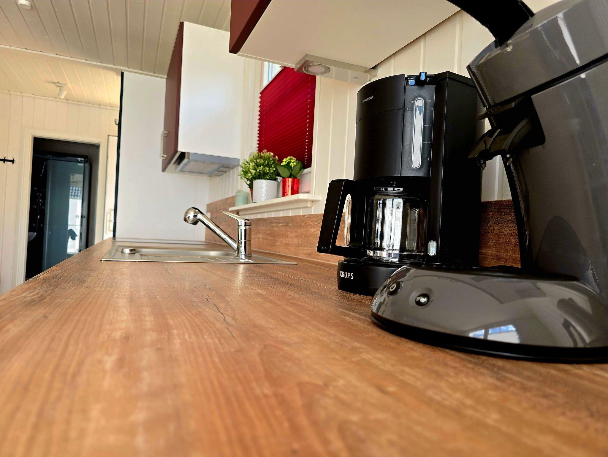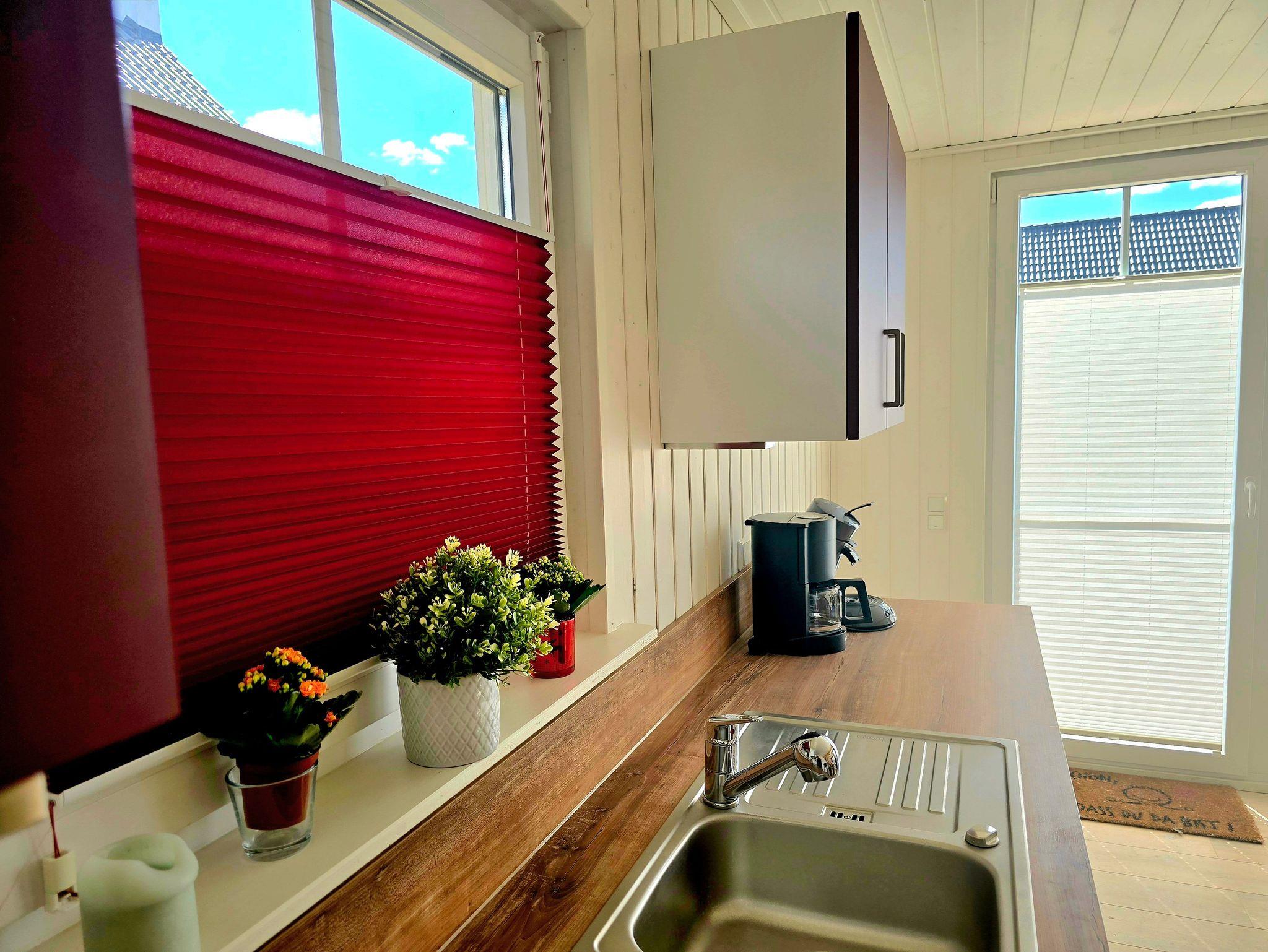 Die mit elektrischen Geräten voll ausgestattete offene Küche im Erdgeschoss sorgt für großzügige Atmosphäre. Das Duschbad mit Tageslicht und Wellnessdusche sorgt für angenehme Entspannung, direkt neben dem Schlafzimmer im Erdgeschoss gelegen. Im Obergeschoss grenzt das zweite Schlafzimmer an die Galerie.