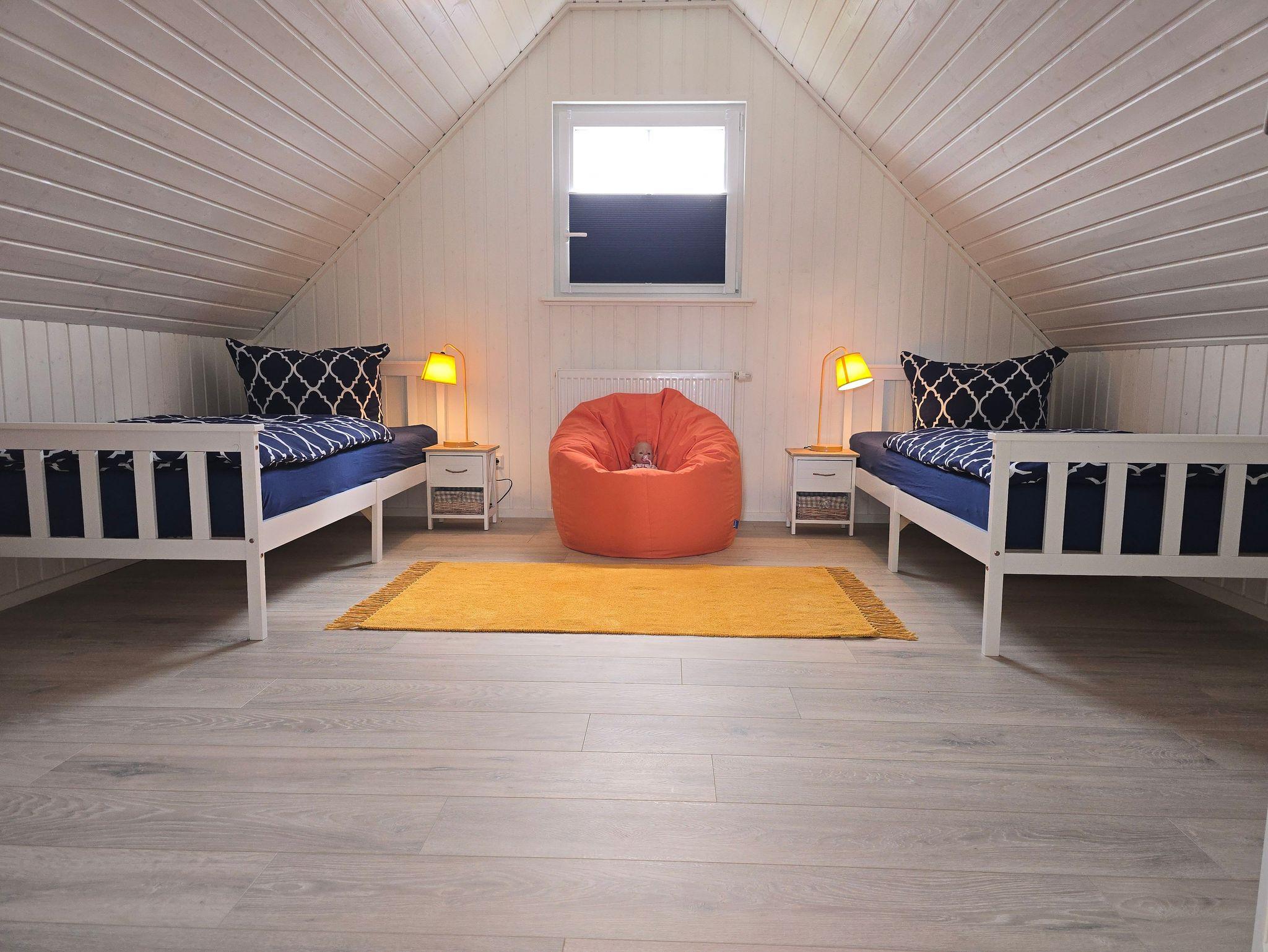 Ein Zuhause fern von zuhause. Das hochwertige Ferienhaus liegt gut eingebettet im Hafendorf. Das Haus ist lichtdurchflutet mit einer offenen Galerie im Obergeschoss über dem Wohnbereich. Der Giebel ist mit Panoramascheiben vollständig verglast. Auf der Terrasse vor diesem Giebel können Sie den Garten genießen. Erleben Sie den Auf- und Untergang der Sonne in beeindruckender Weise. Die Einrichtung des Hauses lässt die Laune höher schlagen. Farben dominieren und geben Eintönigkeit keine Chance. Lassen Sie sich einfangen von dem Charme kräftiger Farben im Kontrast zu hellen Tönen.