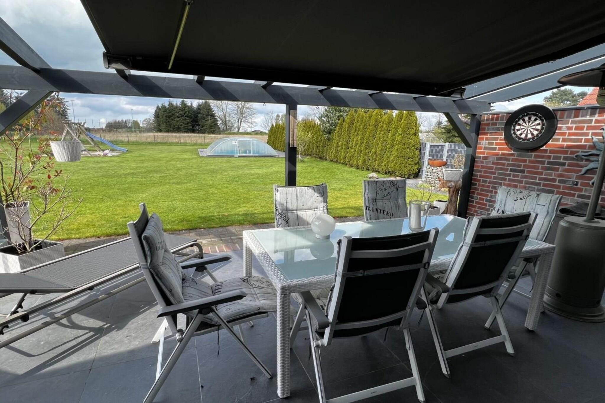 Kommen Sie uns in Friesland besuchen und erleben Sie dieses behagliche Ferienhaus auf einer Größe von 200m². Es stehen Ihnen 2 E-Bikes zu Verfügung. Entspannen Sie sich in einem ca. 8 x 4 m großem Pool, mit Dach.Bei angenehmen 26 Grad beheizt, von April bis November. Pool und Sauna stehen ausschließlich den Mietern zu Verfügung . Entspannen Sie sich im Whirlpool. Die beiden Badezimmer lassen keine Wünsche offen. Es existiert eine Doppelgarage. Saunieren Sie in aller Gemütlichkeit. Gehen Sie Wandern im Urwald. Erkunden Sie im Elektrobike, das platte Land, den Urwald, den Strand. Besonders geeignet für Fam. mit Kindern und Hund. Es steht Ihnen eine Wallbox für Ihr Elektroauto zu Verfügung. Es fallen keine Verbrauchsabhängige Nebenkosten an. Das Grundstück ist komplett eingezäunt.