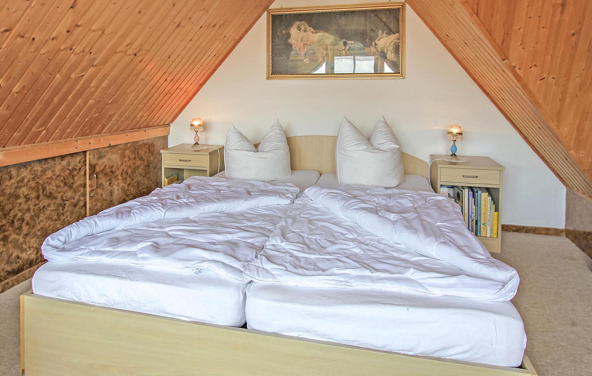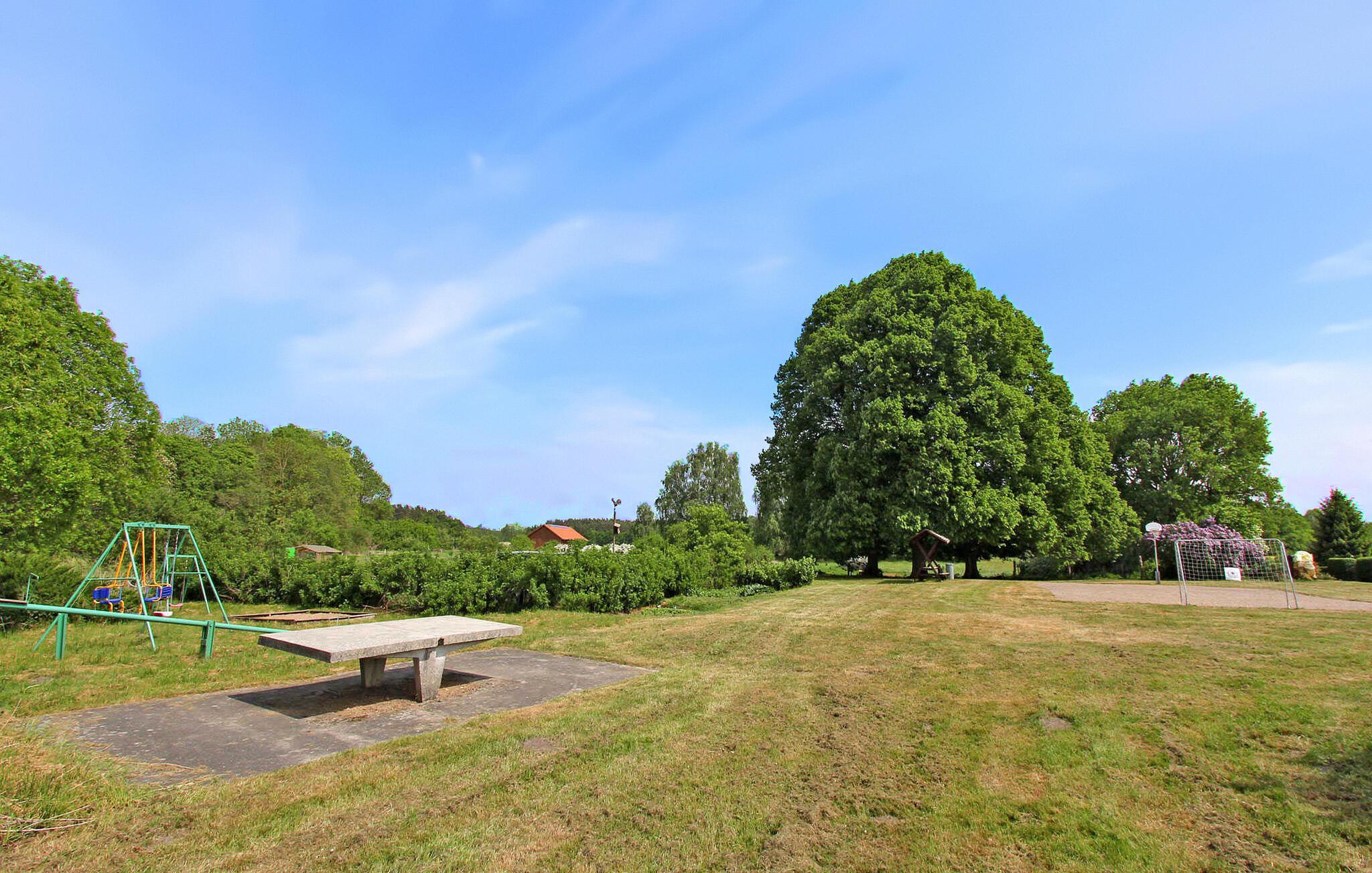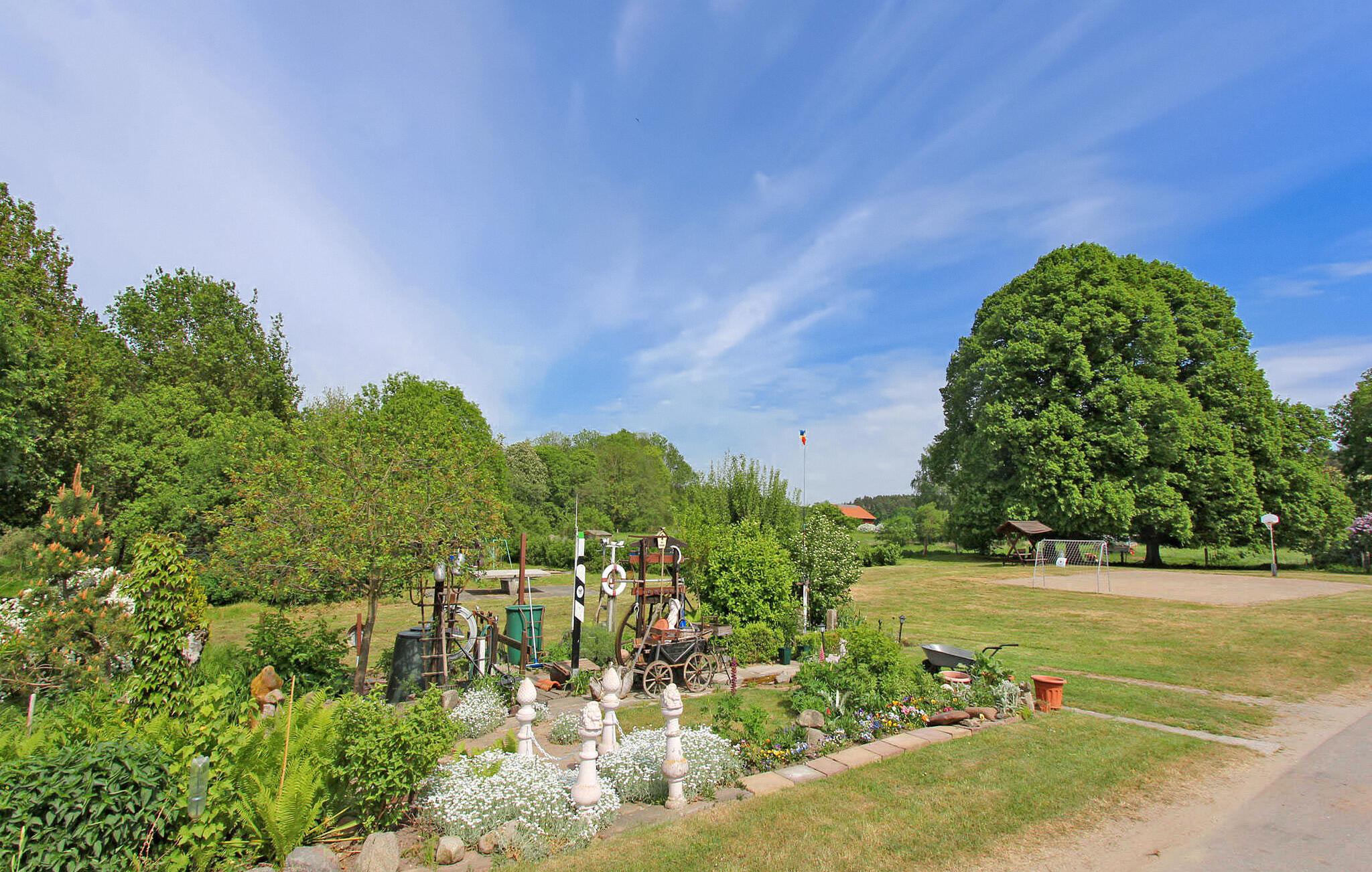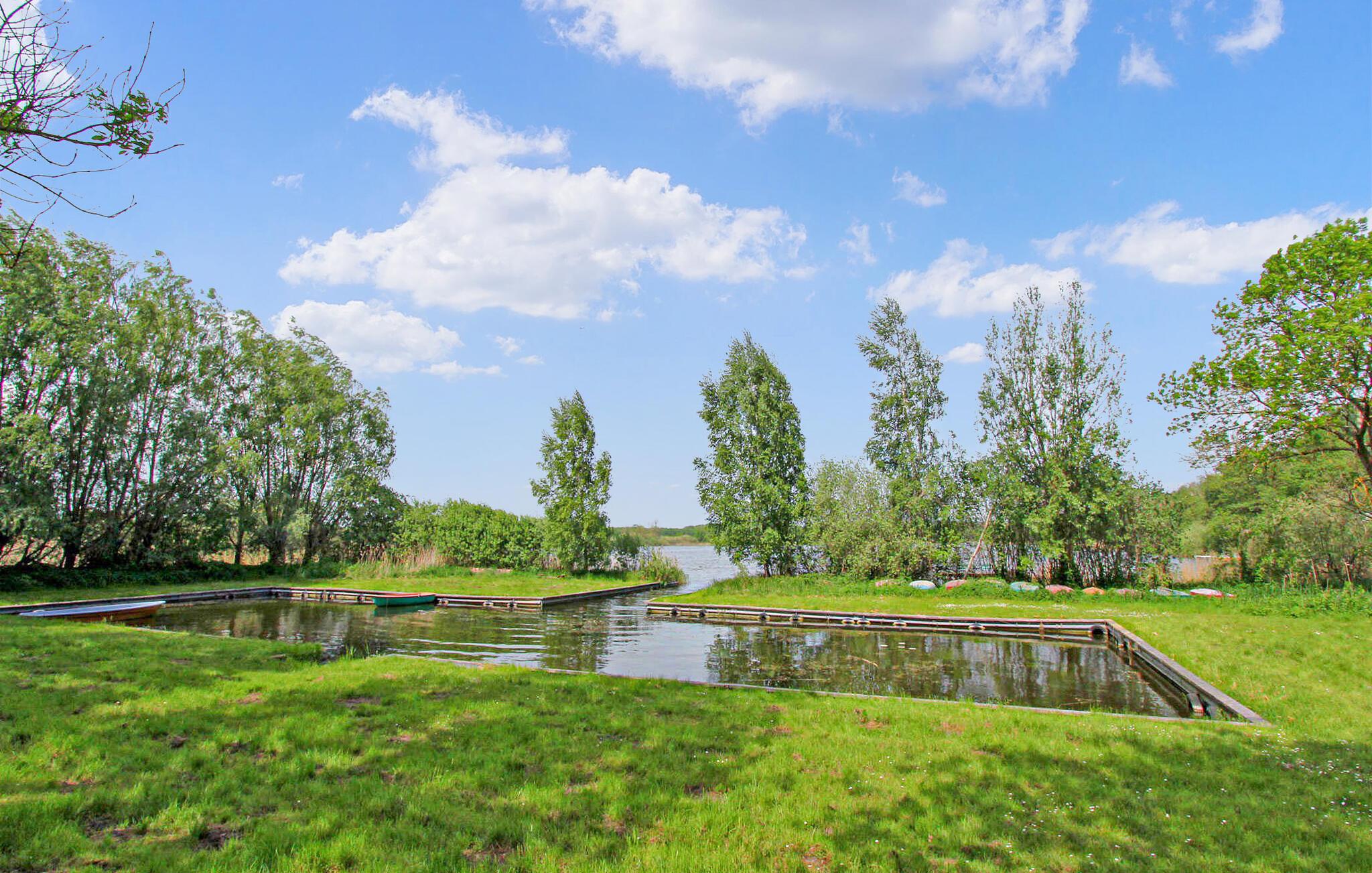 Feriehuset ligger på en 285 kvadratmeter stor fritidsejendom i en lille sommerhusbebyggelse ved Rützenfelder-søen. Der er ca. 100 m til bådemolen og bade- og fiskemolen og ca. 300 m til badepladsen.Sommerhuset strækker sig over to boligplan. I stueetagen er der stue (polstrede møbler, fladskærms-tv, stereoanlæg), køkken (elkomfur med ovn, køleskab med fryser, mikroovn, lille spiseplads, diverse køkkenmaskiner) og badeværelse med bruser /toilet. På øverste etage (adgang via stejle trapper) er der 2 soveværelser (1 x dobbeltseng, TV, 1 x dobbeltseng, møbleret balkon) og en sammenhængende gang med opholdsområde. Huset har desuden centralvarme. Der er 2 møblerede terrasser (1 overdækket), grill, cykel/redskabsskur og parkeringsplads. En robåd og cykler kan også benyttes gratis. Den samlede pris inkluderer vand- og elforbrug samt slutrengøring. Ved rejser i fyringssæsonen opgøres energiforbruget separat. Du skal selv medbringe sengelinned og håndklæder. Rützenfelde er et lille lokalt feriested og en del af Zettemin kommune. Det består kun af et sommerhusområde. Søen af samme navn er omkring 39 hektar stor og er et godt vandområde til svømning og fiskeri. Der er badeplads, bådhavn og bade- og fiskemole. Der er en stor legeplads mellem søen og sommerhusområdet.