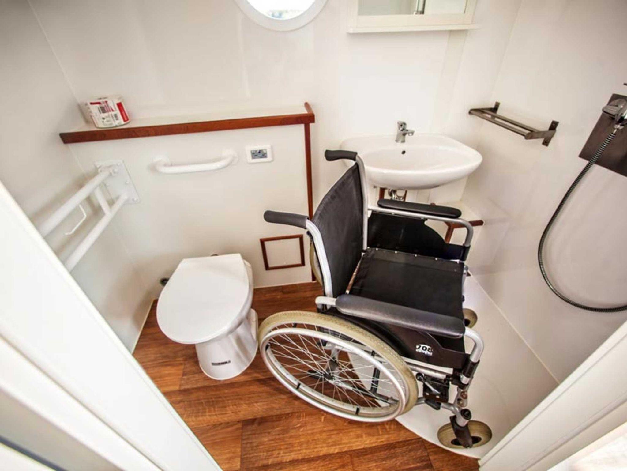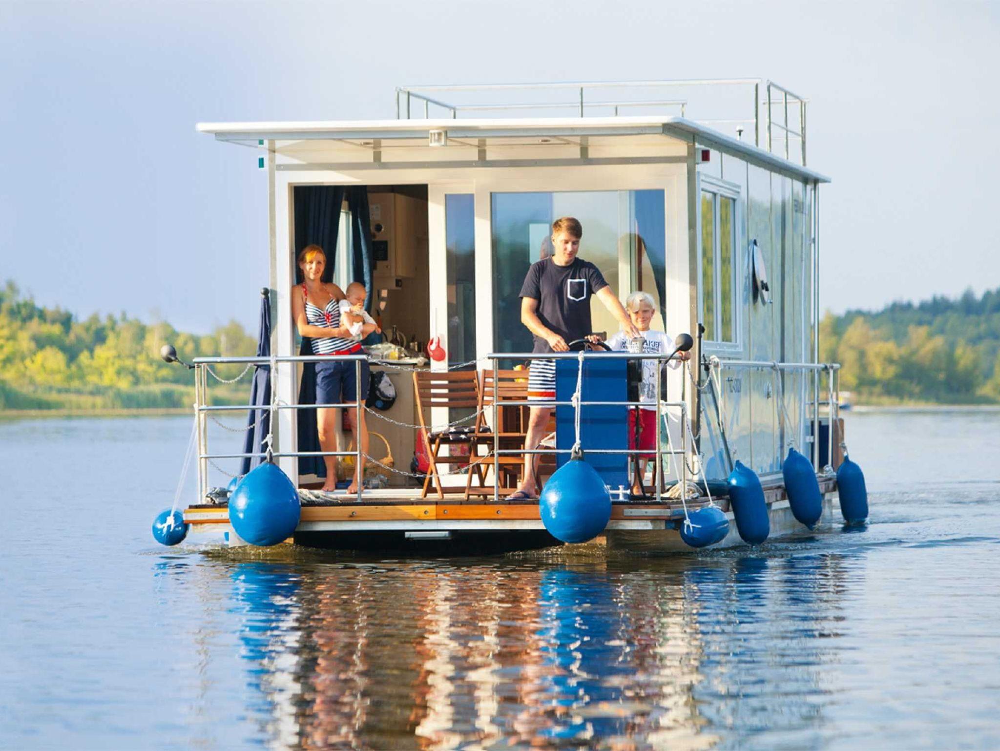 Das große Febomobil ist perfekt für Familien oder Menschen mit eingeschränkter Mobilität. Das Ferienhaus auf dem Wasser bietet Ihnen alle Annehmlichkeiten von großem Schlafzimmer bis zur voll ausgestatteten Küche.