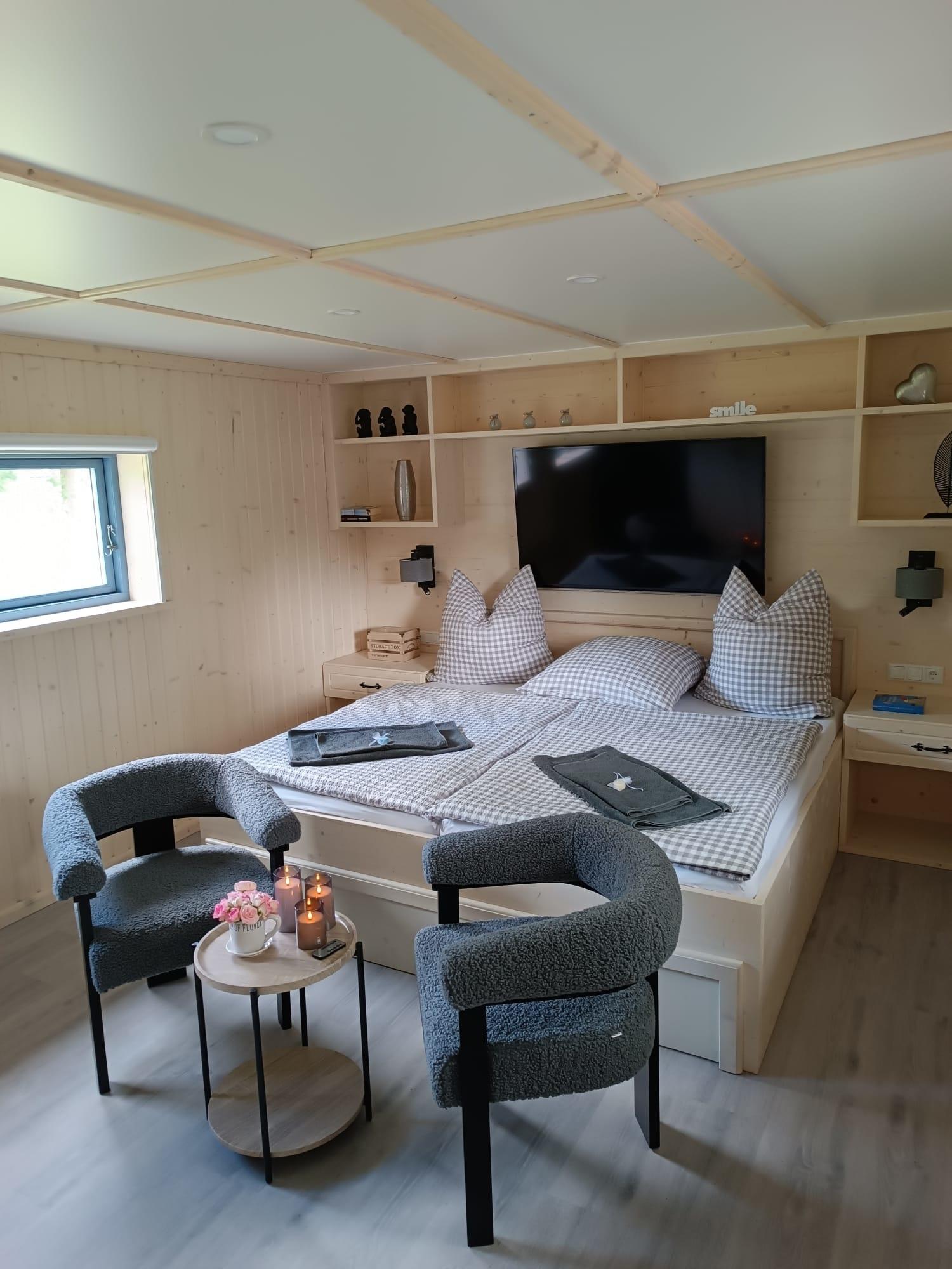 Unser neues Tiny House gegenüber unserer Alpakaweide inmitten unseres schönen Gartens in Alleinlage bietet einen tollen Urlaub. Genießen Sie die Gesellschaft unserer freundlichen Alpakas und die schöne Umgebung. Perfekt für Naturliebhaber, die Entspannung suchen.