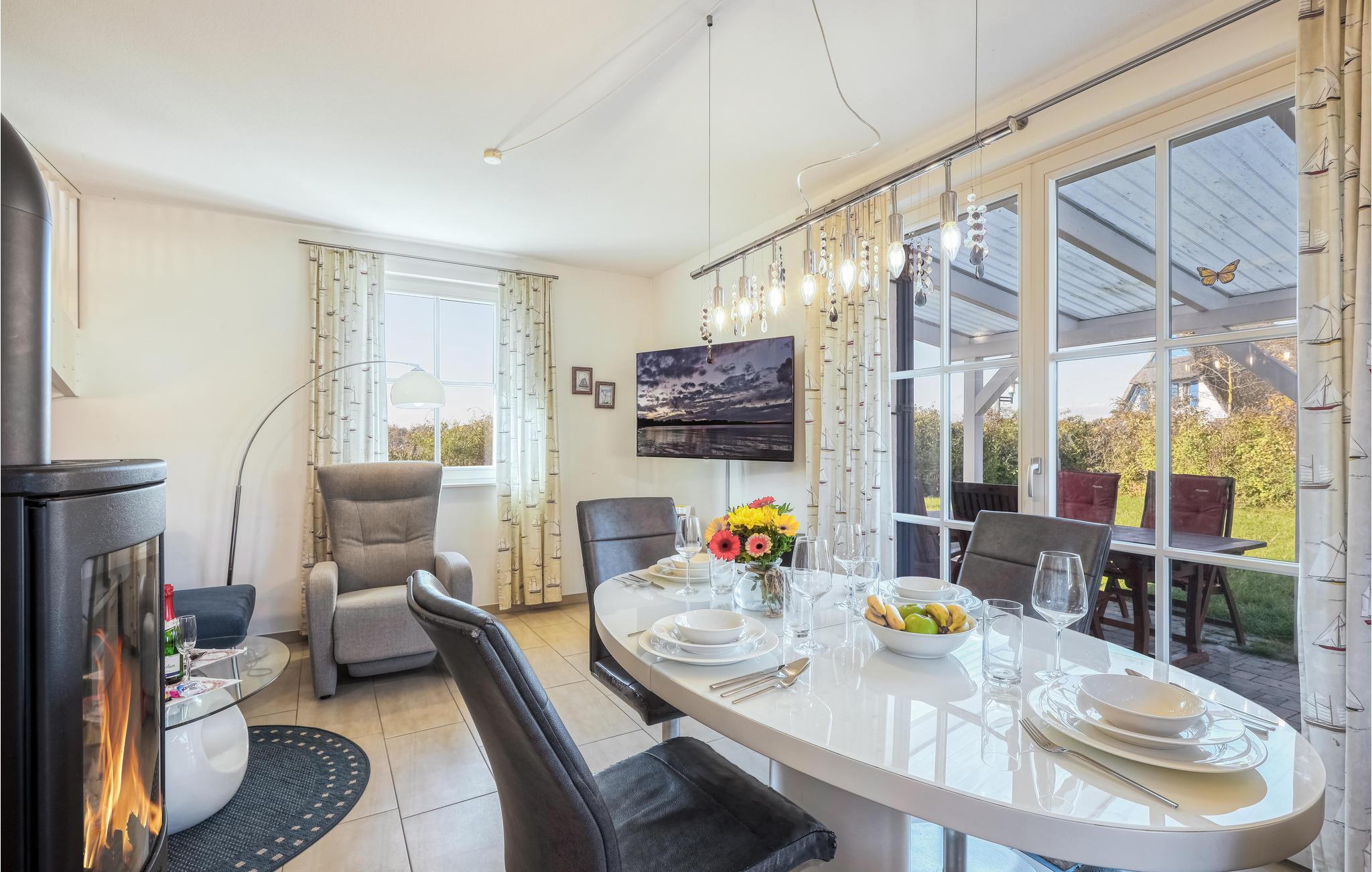 I denne stråtækte halvdel af et dobbelthus er der saunarum med brusebad og stillezone, der indbyder til afslapning. Den smukt indrettede stue der er åben mod køkken rummer også en brændeovn. Fra stuen er der udgang til den overdækkede terrasse der er vindbeskyttet og med en gasgrill. Her er sågar også en af de typiske strandkurve, så I kan nyde dagens sidste solstråler i absolut fred for vinden. Jeres cykler kan stilles i et skur, hvor der også er trækvogn, som I frit kan bruge.