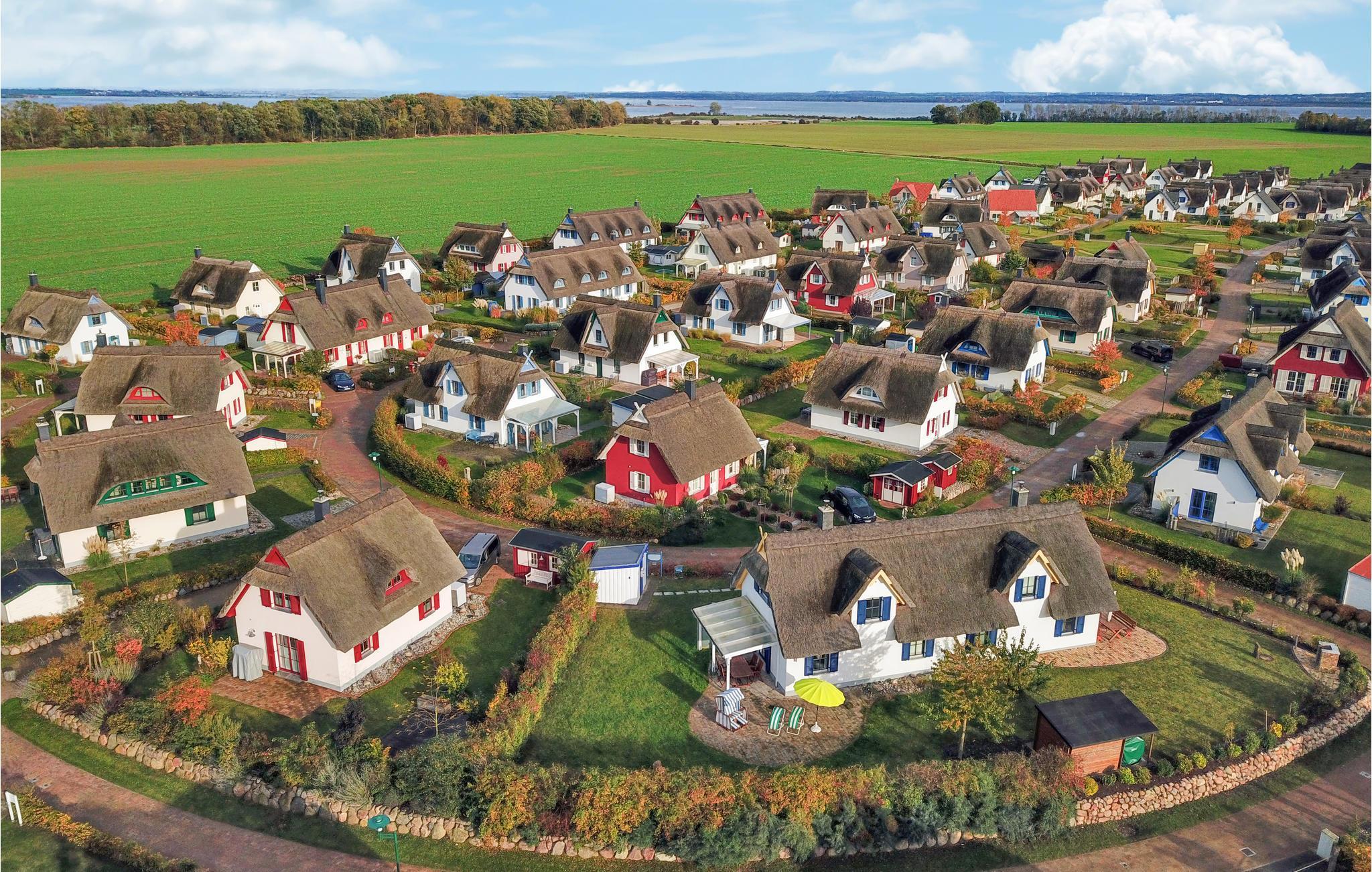 En by i byen, der består af flere smukke feriehuse med stråtag der er eksklusivt indrettet og ligger i smukt anlagte haver.