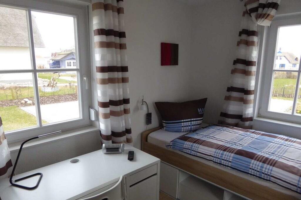 Kære gæster, vores feriehus er på 97 m². Dette stråtagshus i Zierow nær Wismar blev bygget i 2015 og tilbyder moderne bekvemmeligheder, gratis Wi-Fi og direkte havudsigt. Det har 3 soveværelser og 2 badeværelser og tilbyder optimal komfort til 6 personer. Stråtagets hus tilbyder direkte, uhindret udsigt over Østersøen, øen Poel og Wismarbugten over markerne. Den store, smukke have omkring det giver dig mulighed for at slappe af på en liggestol, og børnene har masser af plads til at lege. På to terrasser kan du nyde solen hele dagen lang i en strandstol eller på komfortable havemøbler. Et stort haveskur huser en trækvogn og en elektrisk grill til hyggelige grillaftener. Der er også to rummelige parkeringspladser på grunden.