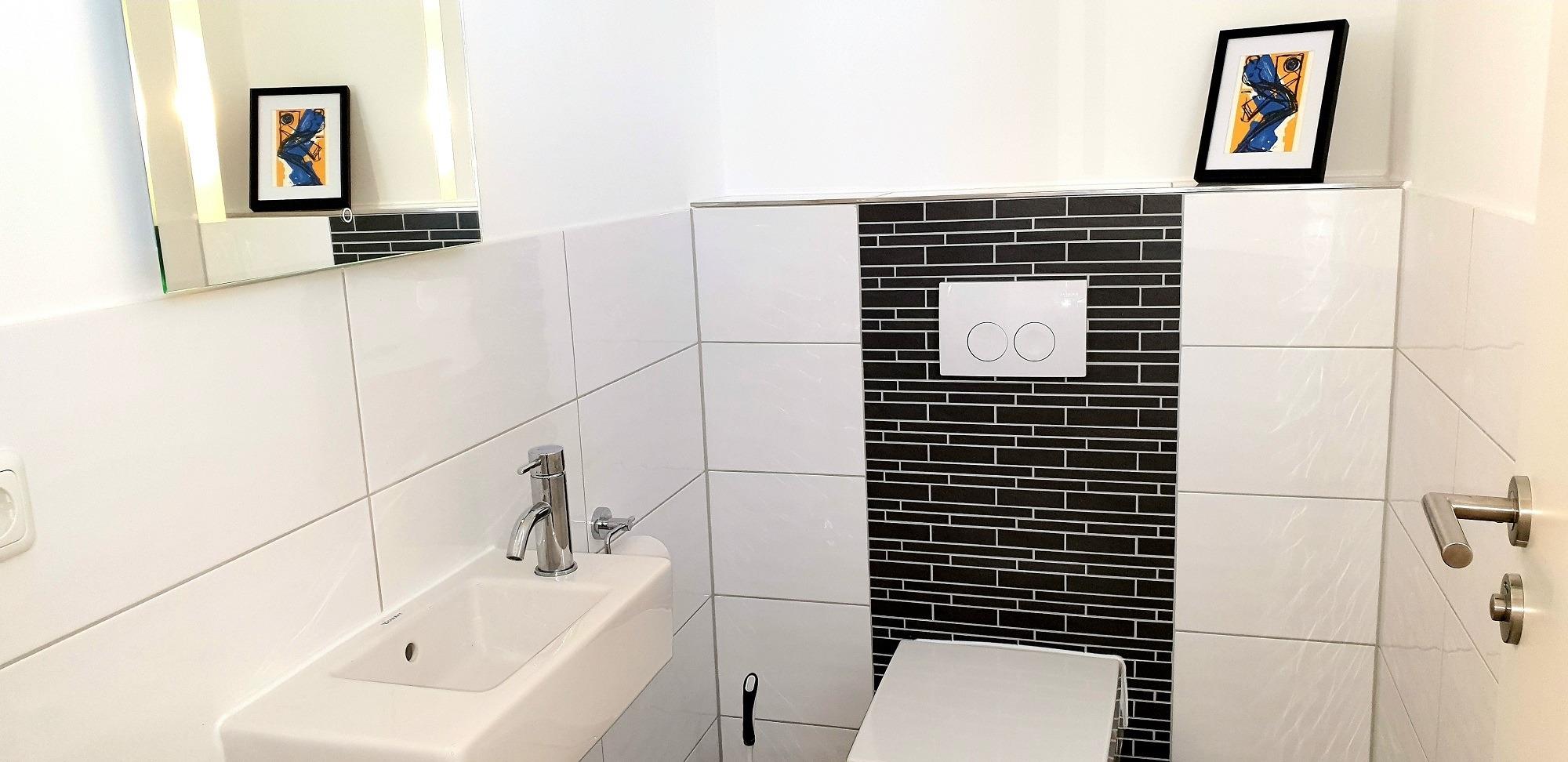 Das großzügige Vollbad zwischen den beiden Schlafzimmern bietet viel Komfort.