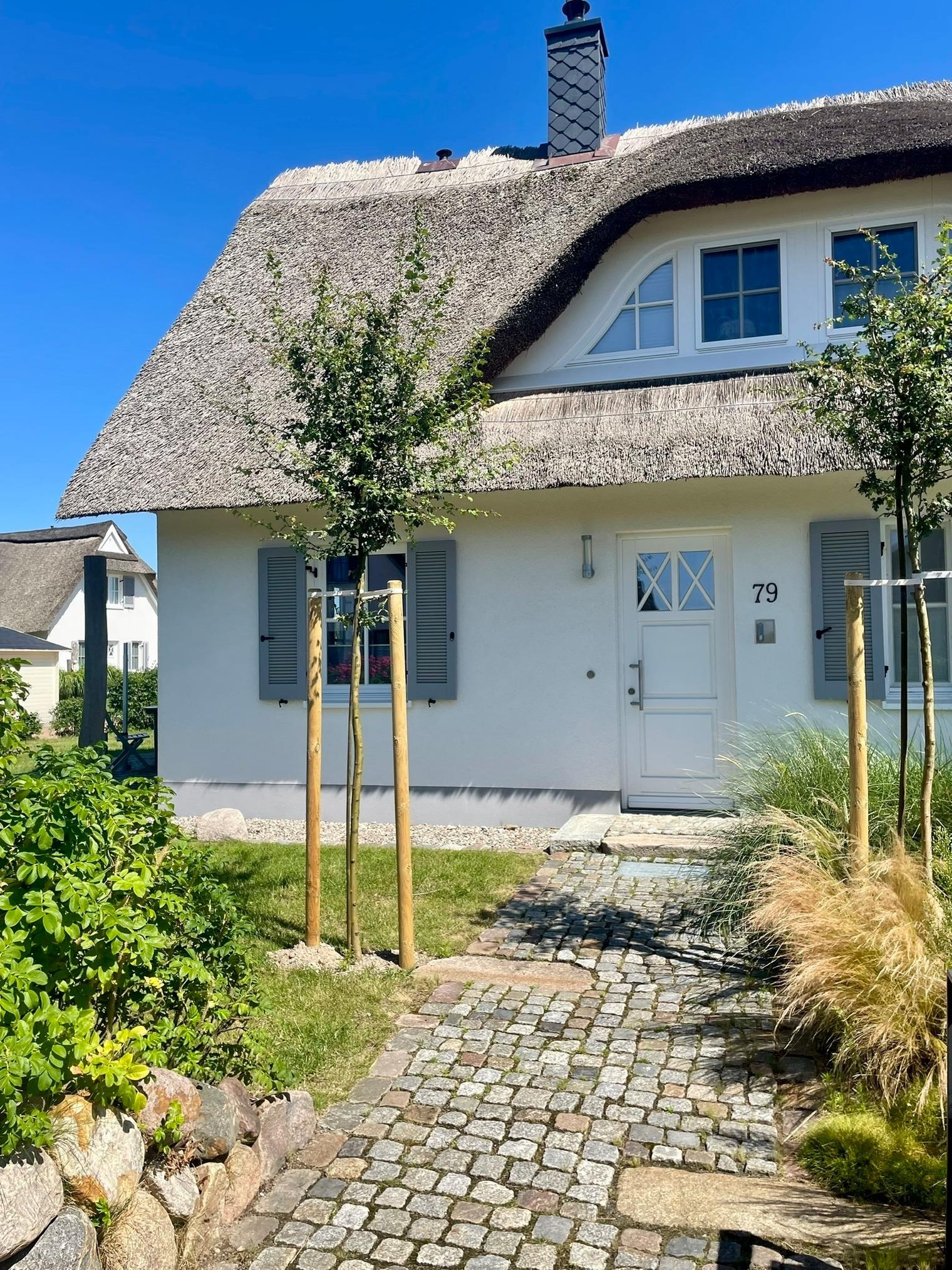 Die 2021 fertiggestellte Reetdach-Doppelhaushälfte wurde von uns liebevoll eingerichtet und ausgestattet. Im Erdgeschoss empfängt Sie die offen gestaltete Wohnküche mit einer voll ausgestatteten Küchenzeile (Backofen, Cerankochfeld, Geschirrspüler, Kaffeemaschine, SodaStream, Toaster, Wasserkocher u.v.m.), einem wunderbaren Essplatz mit Blick in den Garten und eine gemütliche Sofaecke mit Kaminofen. Hier finden Sie alles, um gemeinsam den Tag zu beginnen oder mit einem Kochabend und einem Glas Wein vor dem Kamin ausklingen zu lassen. Eine Auswahl an Gesellschaftsspielen, Spielzeug und (Kinder)Büchern ist ebenfalls vorhanden. Auf derselben Ebene befindet sich auch ein Hauswirtschaftsraum mit Waschmaschine sowie kleinem Gefrierschrank, ein separates WC und ein kleiner, aber feiner Wellnessbereich mit Sauna und begehbarer Rainshower-Dusche.