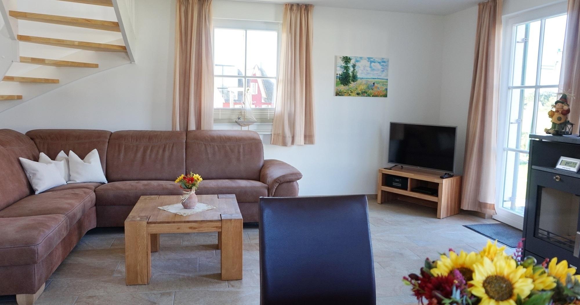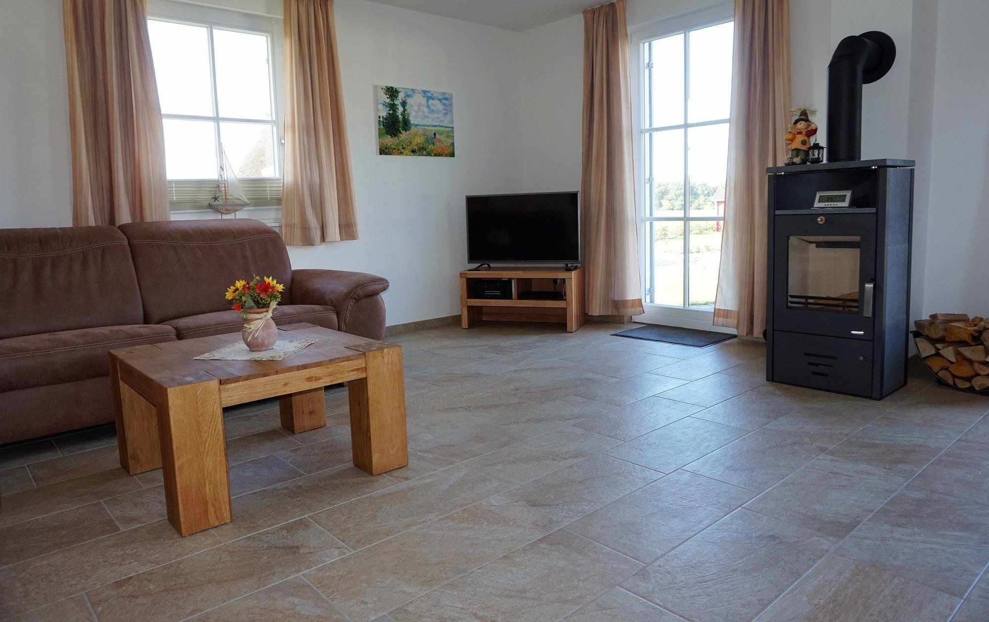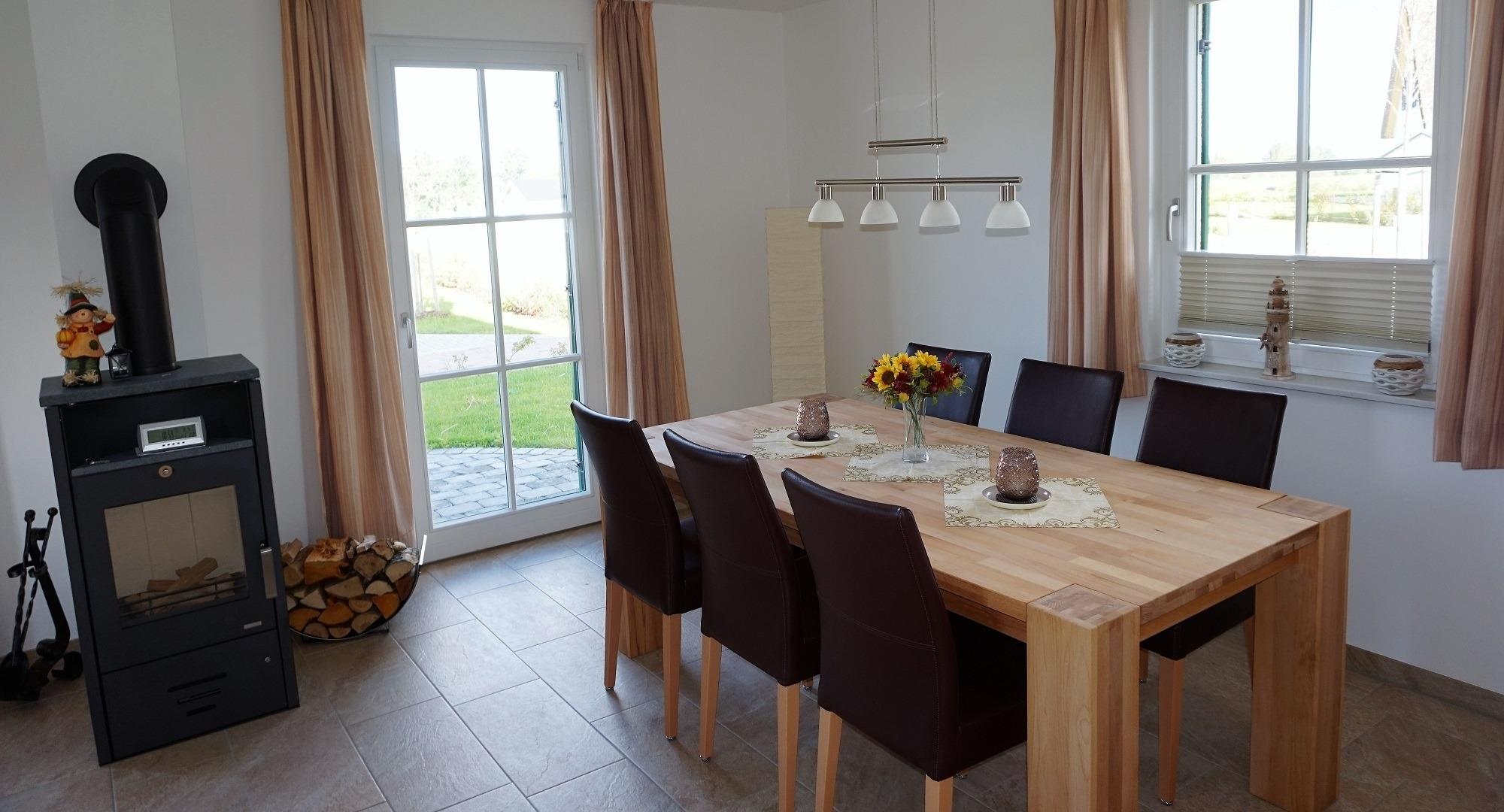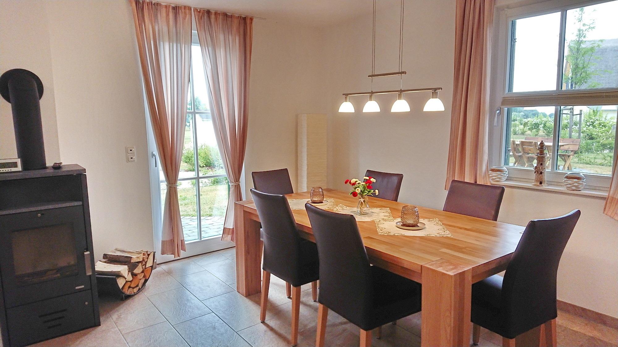 Vom Garten aus haben Sie einen wunderbaren Blick auf die Ostseeküste. Ein Grillplatz mit Sitzgelegenheit und der Strandkorb sind zu dieser Richtung ausgerichtet. Im Ferienhaus besticht die Einrichtung aus Vollholzmöbel. Der Wohnbereich ist hell eingerichtet und bietet bis zu sechs Personen Platz zum Essen und gemütlichen Beisammensein vor dem Kamin. Die Küche ist separat und ist sehr gut mit Mikrowelle/Grill, Ceran-Kochfeld, Backofen, Geschirrspüler u.v.m. ausgestattet. Eine Sitzbank und Tisch bieten dort einen weiteren schönen Essbereich. Im Hauswirtschaftsraum steht eine Wasch-Trocknermaschine, Bügeleisen, Bügelbrett und einige Putzutensilien zur Verfügung. Das Duschbad im Erdgeschoss verfügt über eine Wellnessdusche und einer Sauna sowie WC und Waschbecken.