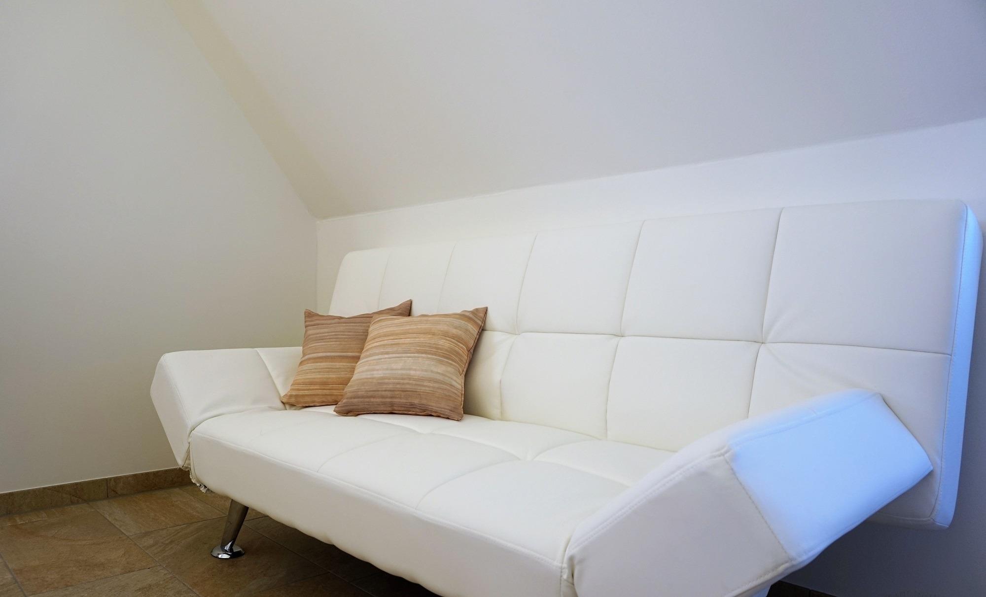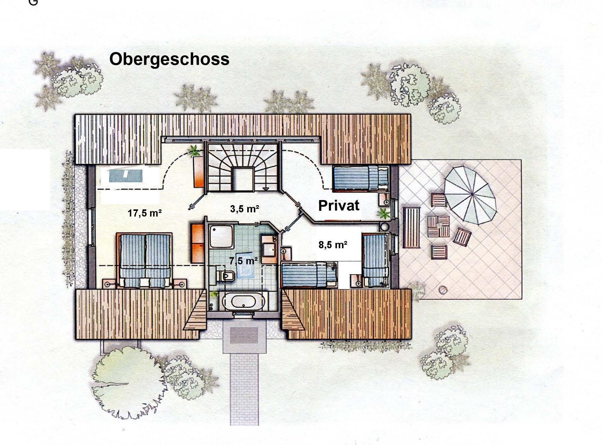 Im Obergeschoss können sich bequem vier Personen in den zwei Schlafzimmern zurück ziehen.[nbsp]Im ersten Schlafzimmer stehen zwei Einzelbetten (a`90x200) bereit. Im zweiten Schlafzimmer steht ein Doppelbett (180x200) sowie ein Kleiderschrank und ein Sofa für entspannte Lesestunden. Hier kann bei Bedarf ein Kinderreisebett aufgestellt werden. Alle Räume lassen sich durch die Außenläden und Vorhänge bzw. Plieses verdunkeln. Ein Lüften ist dank der Fliegenschutzgitter zu jeder Zeit möglich. Eine Fußbodenheizung sorgt für ein angenehmes Raumklima. Haustiere sind nicht gestattet und das Rauchen ist nur im Freien erlaubt. Im Abstellschuppen stehen ein Bollerwagen und Strandliegen und er bietet zusätzlich Platz für mitgebrachte Fahrräder.