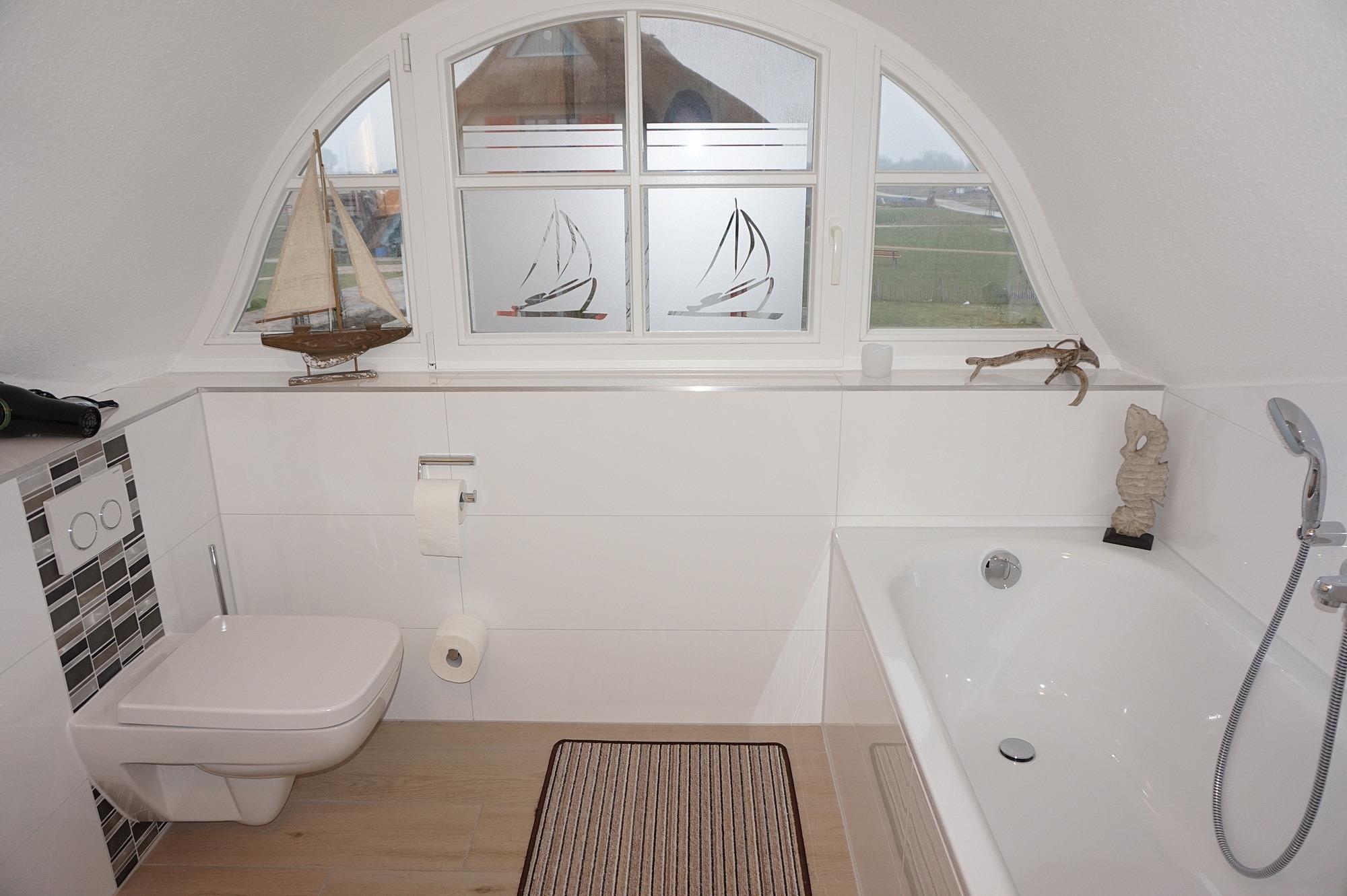 Neu ab 2026 - Im Obergeschoss finden Sie drei großzügige Schlafzimmer und ein Bad vor. Schlafzimmer A ist mit einem Doppelbett (180x200), Schrank, Kommode und einer gemütlichen Sitzecke mit Lesesessel ausgestattet. Im Schlafzimmer B befinden sich ein Einzelbett und Kommode. Ein drittes Schlafzimmer C wird derzeit hergerichtet. Dort ist dann ein französischs Bett mit (140x200) und so können Sie ganz individuell auf Ihre Wünsche ausgerichtet, die Schlafzimmer nutzen. Die Bettwaren sind für Allergiker geeignet. Die Schlafzimmer verfügen über Fenster mit integrierten Insektenschutzrollos. Das moderne Bad unter der charakteristischen Fledermausgaube sorgt für ein behagliches Wohngefühl. Neben hochwertigen Sanitärelementen finden Sie ein Bidet, eine Badewanne und eine bodengleiche Dusche mit Echtglasduschabtrennung vor. Die Südterrasse ist mit einem Tisch mit zwei Stühlen, zwei Bänken und einem Sonnenschirm, sowie einem Strandkorb und Gartenliegen zum Relaxen ausgestattet. Ein kleiner Elektrotischgrill ist vorhanden. Der Garten lädt zum Entspannen und Spielen im Holzboot ein. Zwei Stellplätze befinden sich direkt auf dem Grundstück. Das Grundstück ist umzäunt. Eine E-Ladestation geg. Gebühr steht zur Verfügung.