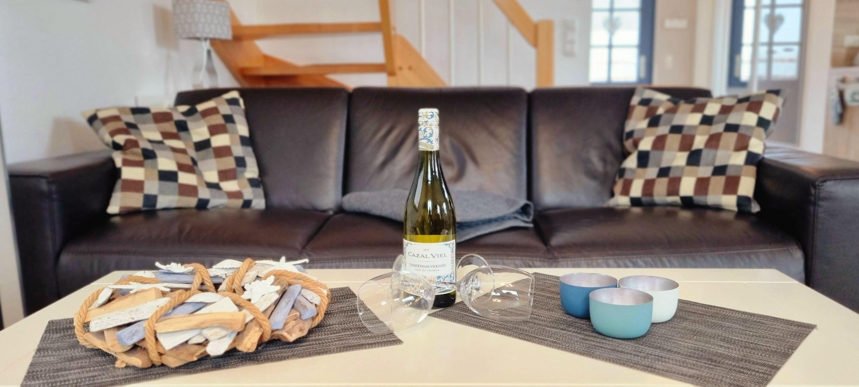 Das in 2014 errichtete Reetdachhaus mit einer Wohnfläche von 97 qm befindet sich in der neuen Ferienhaussiedlung „De Poeler Drift“ in Zierow. Das mit Echtholzmöbeln, Sprossenfenstern und Fensterläden ausgestattete Feriendomizil lädt zu jeder Jahreszeit an die mecklenburgische Ostsee ein. Ob im schönen Sommer, denn der Strand ist nicht weit, zudem gibt es einen umlaufenden Garten, aber auch in der kälteren oder auch schmuddeligen Jahreszeit, denn sowohl eine Sauna als auch ein Kaminofen sind vorhanden. Es erwartet Sie ein komplett gefliestes, mit Fußbodenheizung ausgestattetes Reetdachhaus. Eine hochwertige Innenausstattung lässt keine Wünsche offen. Das Erdgeschoss empfängt Sie mit einem großen Wohn-/Essbereich mit offener Küche und bietet ausreichend Platz für die ganze Familie. Die integrierte Küche ist voll ausgestattet mit einem hochwertigen Backofen mit Induktionskochfeld, einem Kühlschrank mit Gefrierfach, einem Geschirrspüler, Kaffeemaschine, Toaster und Wasserkocher, aber auch ein Eierkocher und Mixer sind vorhanden. Eine Ledercouchgarnitur und Sessel laden zu einem gemütlichen Abend ein. Ein Flach-TV, Blue-Ray-Player und Bluetooth-Stereoanlage bieten Unterhaltung, zudem stehen einige Bücher, Reiseführer und Spiele zur Verfügung. Im Wohnbereich steht der Kaminofen, der wohlige Wärme in der kalten Jahreszeit schenkt. Kaminholz ist mitzubringen. Der Essbereich bietet Platz für 4 Personen, ein Kinderhochstuhl ist zusätzlich vorhanden. Weiterhin befinden sich im EG ein Tageslicht-Gäste-WC, eine Sauna mit Komfortdusche und ein Hauswirtschaftsraum mit Waschmaschine, Wäscheständer, Staubsauger, Bügeleisen, Bügelbrett und Putzutensilien.