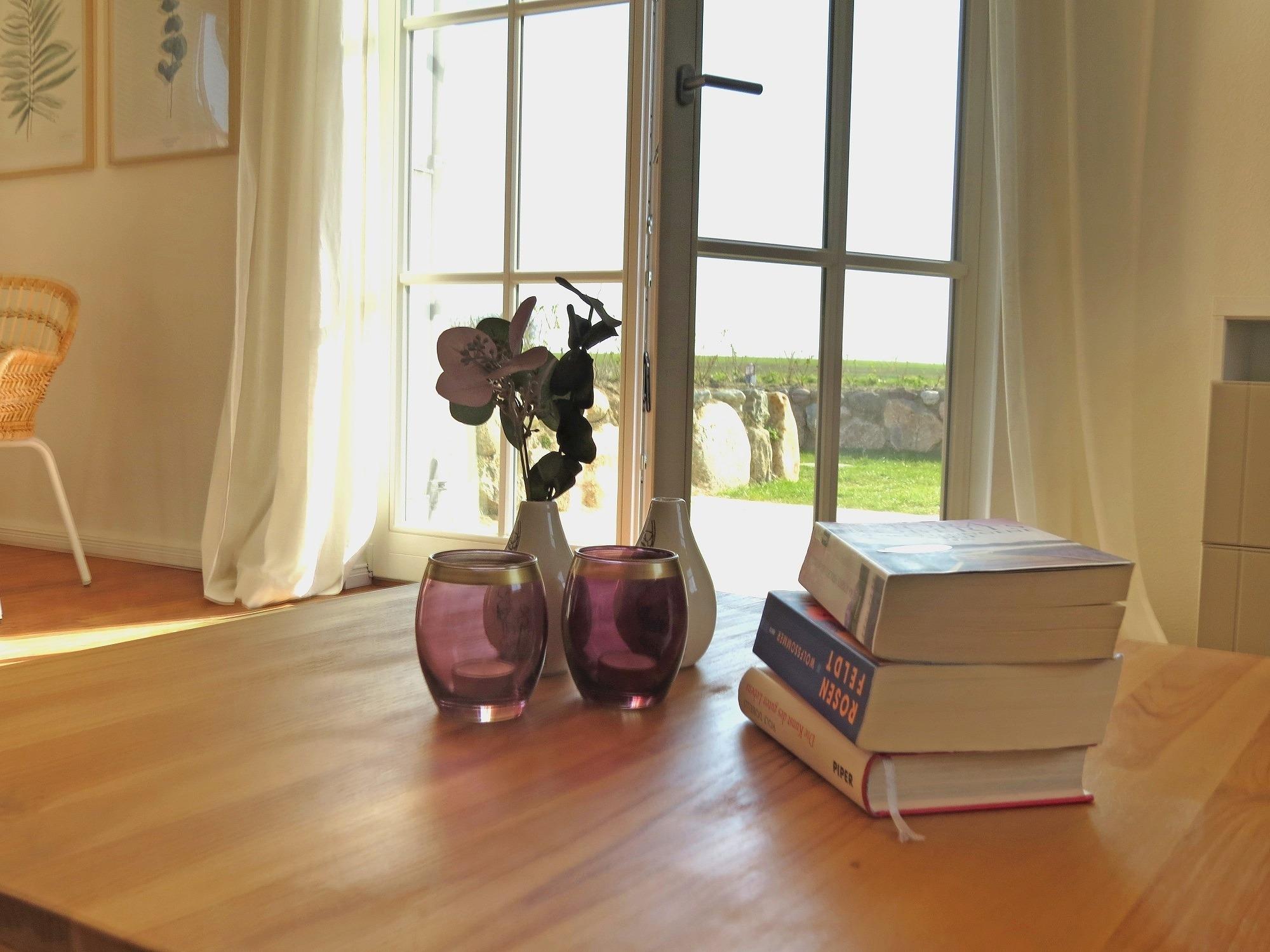 Der große Wohn- Essbereich mit dem gemütlichen Sofa lädt zum kuscheln ein. Vom Essbereich aus haben Sie Zugang zur Terrasse - hier können Sie Ihren Urlaubstag mit einem sonnigen Frühstück starten. Die Terrasse ist umläufig so dass Sonnenanbeter im Strandkorb auf Ihre Kosten kommen und auch abends die Sonne auf der Terrasse genossen werden kann.