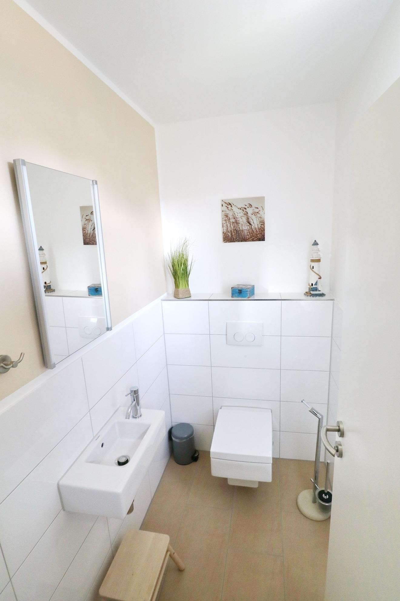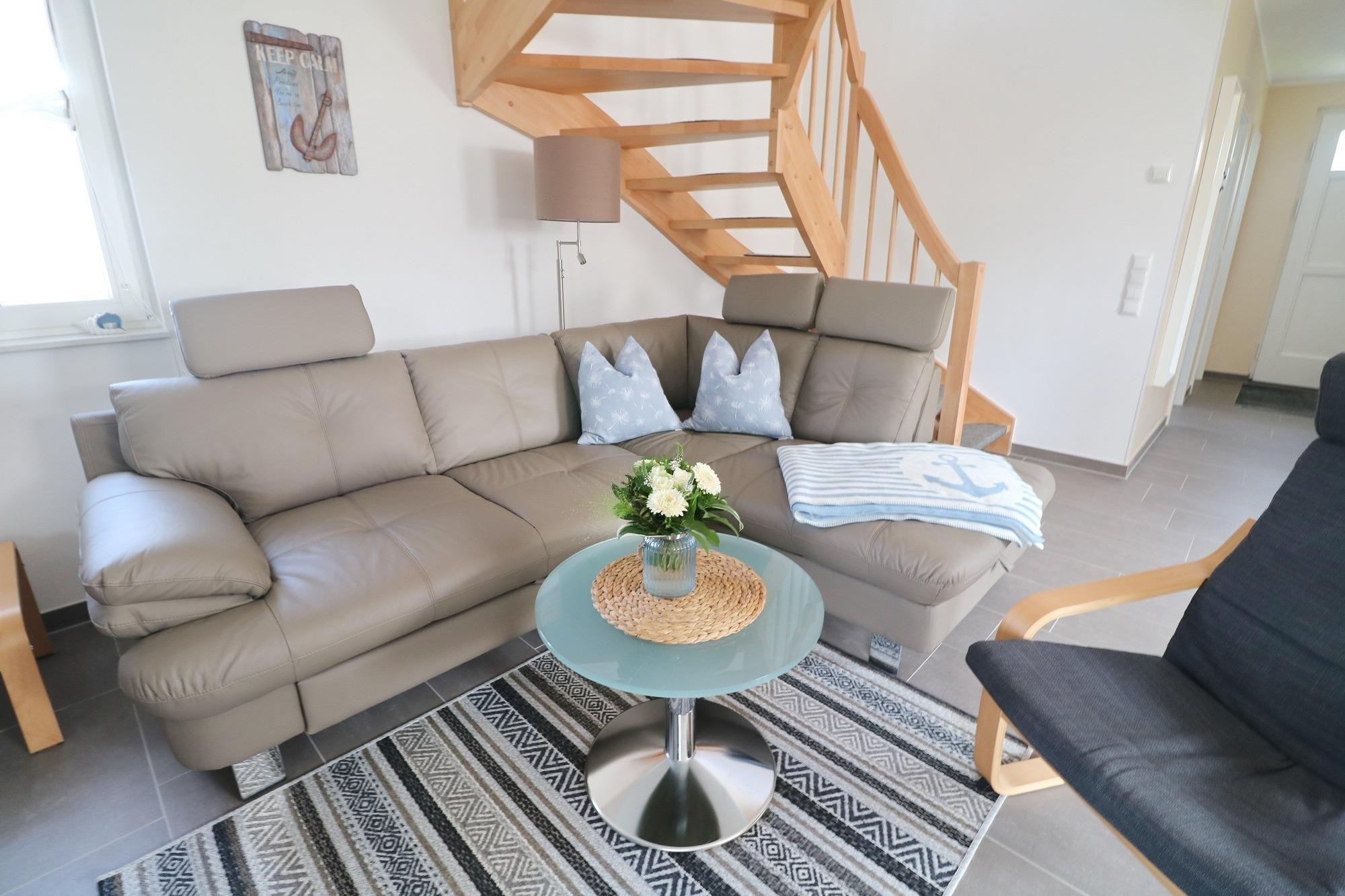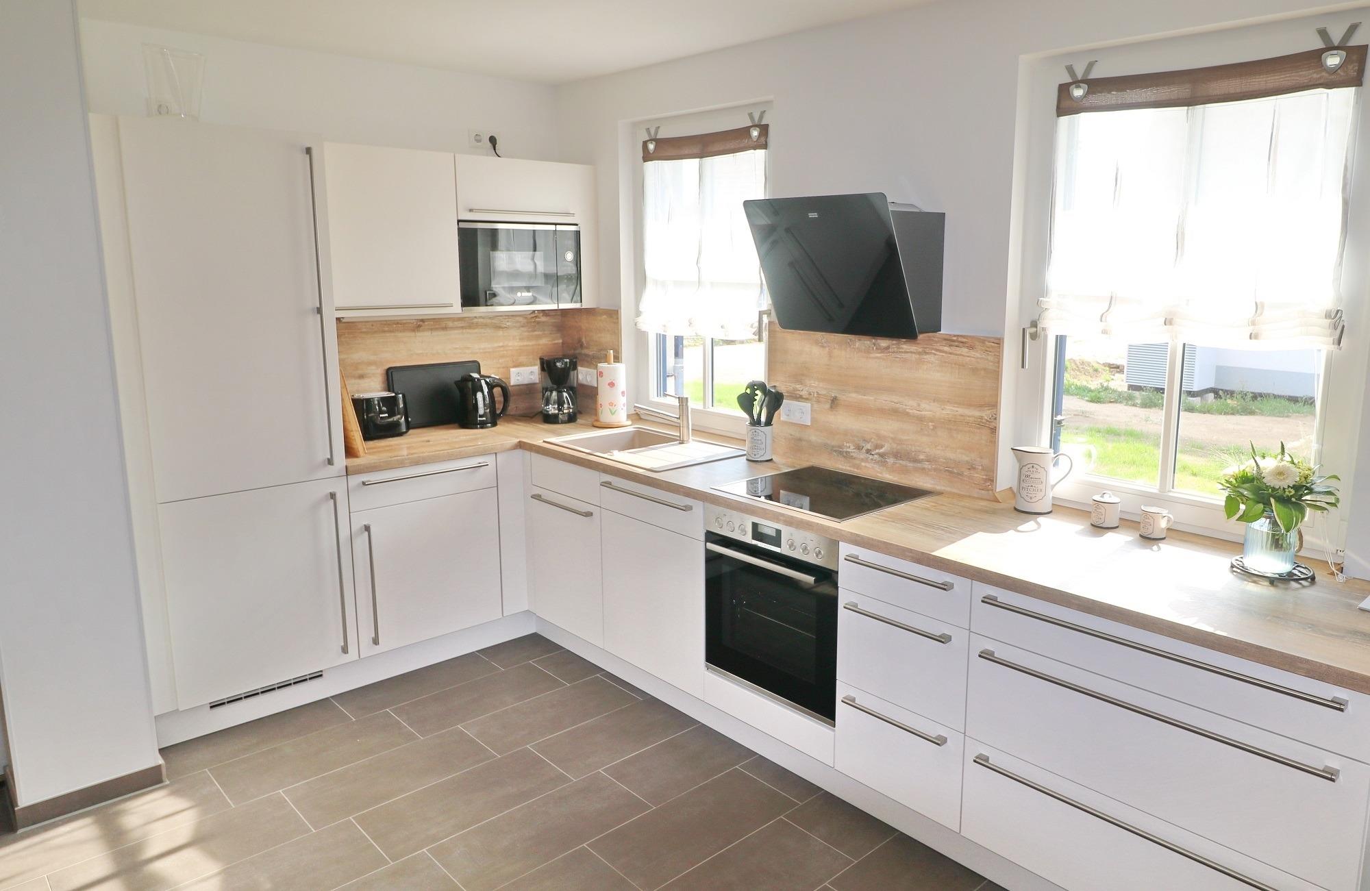 Im großen Wohn- und Essbereich befindet sich die modern ausgestattete integrierte Küche, der Essbereich und die Sofalandschaft direkt am Kamin. Eine Fußbodenheizung ist im gesamten Haus verlegt. An kalten Tagen können Sie nach einem langen Spaziergang oder Radtour in der Sauna mit Wellnessdusche relaxen. Ein Gäste-WC mit Tageslicht befindet sich ebenfalls im Erdgeschoss. Der Hauswirtschaftsraum ist mit einem Waschtrockner ausgestattet.