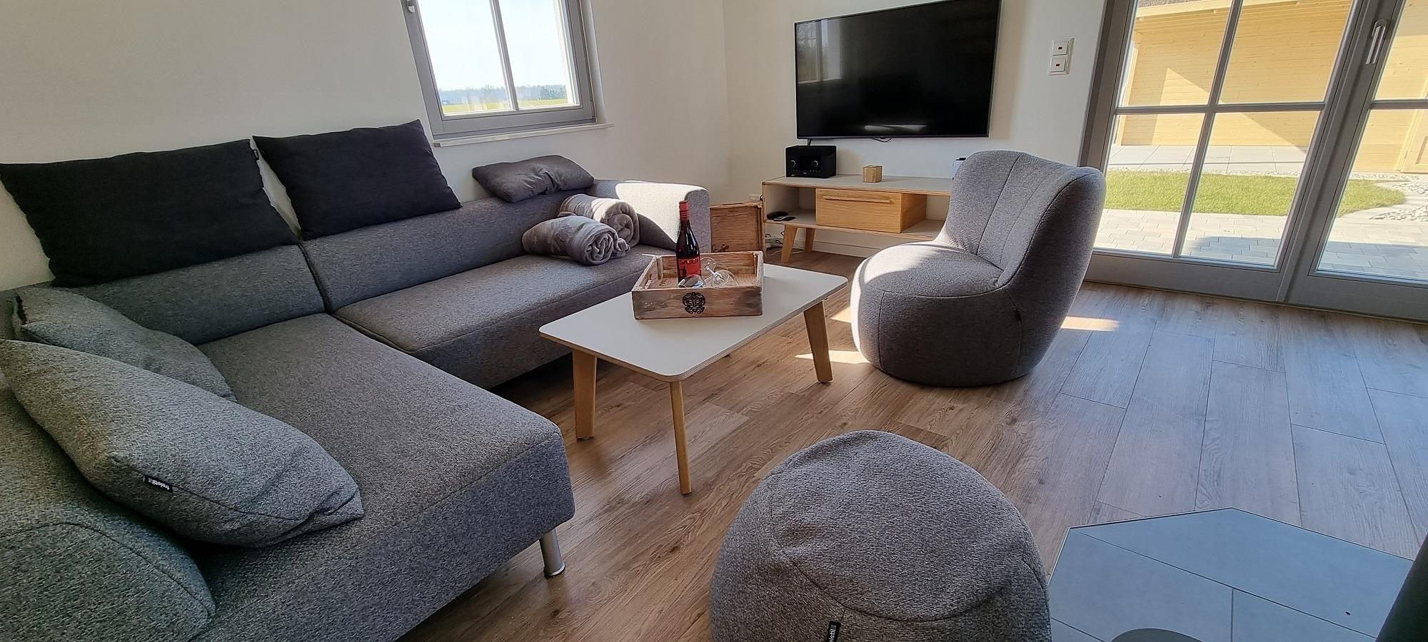 Dieses sehr gut ausgestattete Doppelferienhaus liegt direkt am Feldrand und die Südwestlage mit herrlicher Aussicht bietet den ganzen Tag einen sonnigen Platz auf der großen Terrasse.