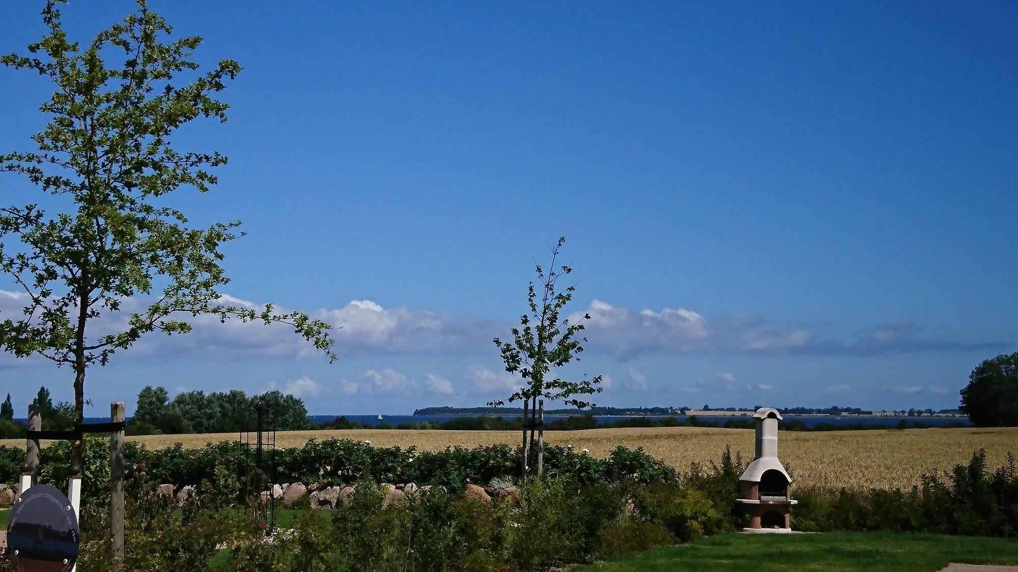 Im Obergeschoss ist das moderne Schlafzimmer mit Doppelbett und Kommode sowie ein zweites TV-Gerät. Vom Flur aus erreichen Sie das Ankleidezimmer mit einer großen Recamiere. Das großzügige Duschbad ist modern ausgestattet und verfügt über Tageslicht. Im Garten können Sie auf der sonnigen überdachten Westterrasse gemütlich Speisen oder Ihren Urlaubstag am Grill und fantastischem Seeblick ausklingen lassen. Ein Strandkorb zum Relaxen steht direkt am Ferienhaus. Auf der Terrasse wurden Holzbuhnen aufgestellt und bieten einen wunderbaren Sicht- und Windschutz. Vor dem Haus können Sie Ihren PKW abstellen.