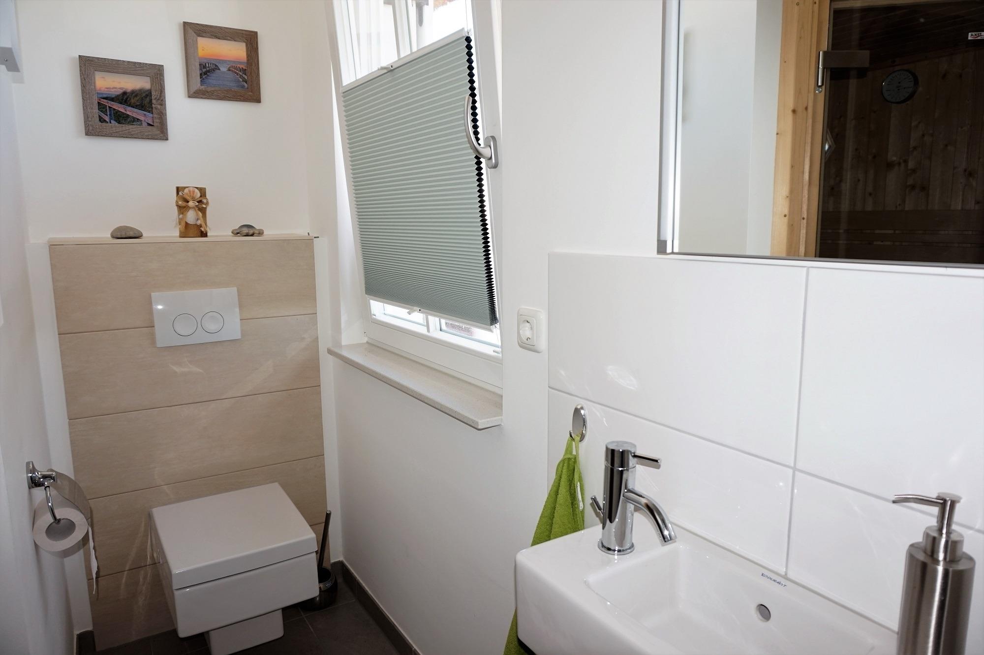 Desweiteren befindet sich im Erdgeschoss die Sauna mit Wellness-Dusche und WC. Im Obergeschoss sind zwei Schlafzimmer eingerichtet. Das Elternschlafzimmer mit Echtholzmöbeln ist mit einem Doppelbett und Kommoden ausgestattet. In den Schlafzimmern sind Fliegenschutzgitter angebracht. Zur Verdunkelung und Sichtschutz dienen die Fensterklappläden und Gardinen. Im 2 Schlafzimmer befindet sich ein weiteres Doppelbett, ein Kleiderschrank, 2. TV sowie Sitzsack und ein Zustellbett für die 5. Person eingerichtet. Das Vollbad im Obergeschoss bietet einen wunderbaren Start in den Tag. Es ist mit einer Badewanne, Echtglasdusche, Waschbecken und WC sowie Spiegelschrank hochwertig ausgestattet. Das Reethaus ist ideal für Ihren Familienurlaub an der Ostseeküste. Am Haus sind zwei Stellplätze. Im Abstellschuppen befinden sich 2 Fahrräder. Diese können auf auf eigene Gefahr genutzt werden. Zum Strand sind es ca. 600 m.